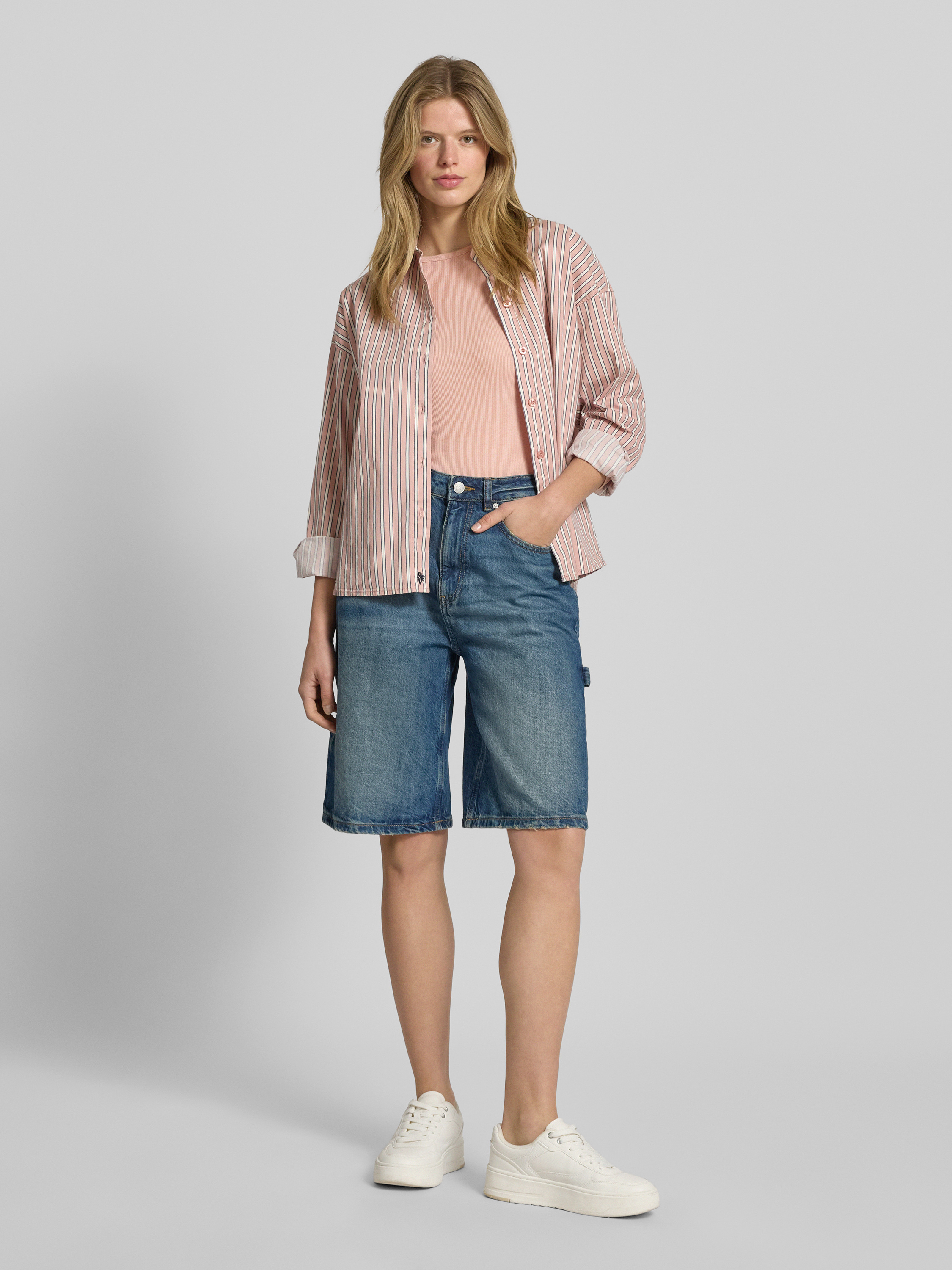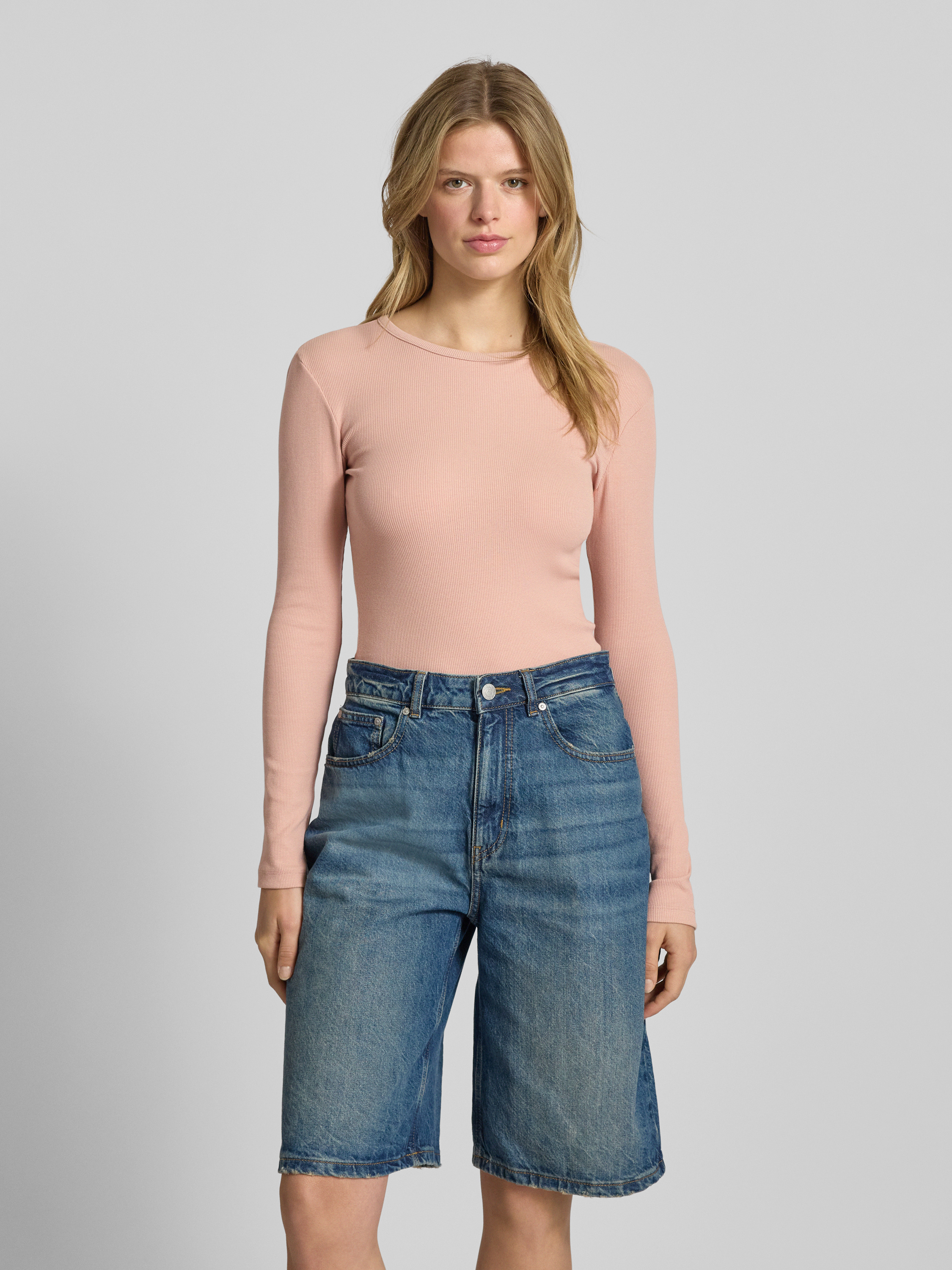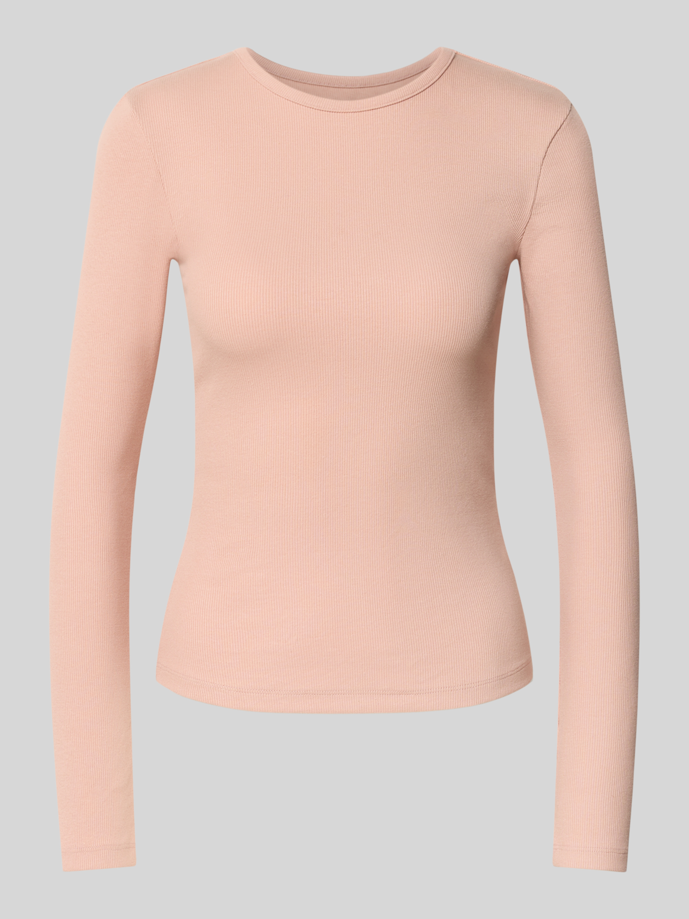 Shirt met lange mouwen in riblook met ronde hals in oudroze