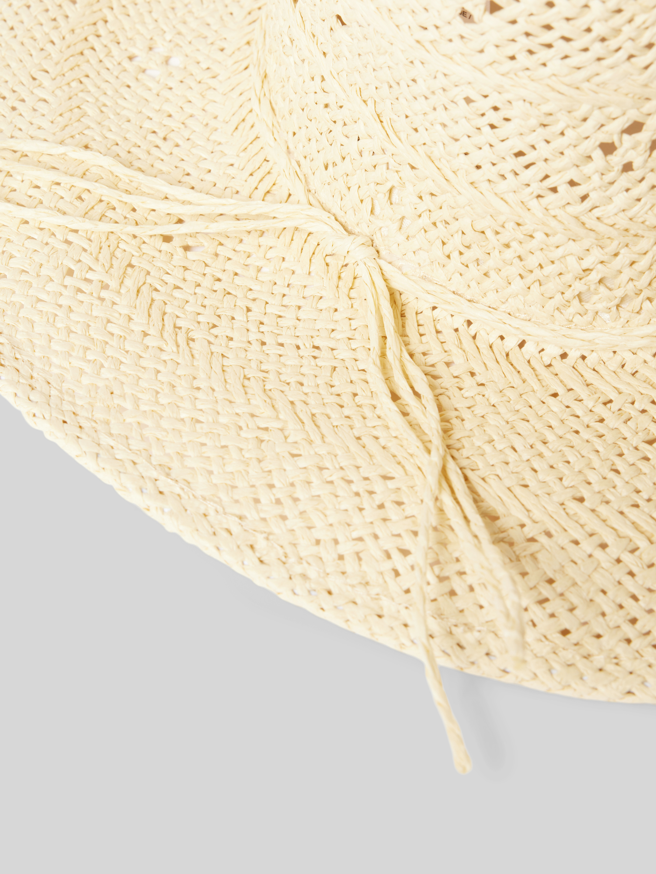 Strohoed met broderie anglaise in zand