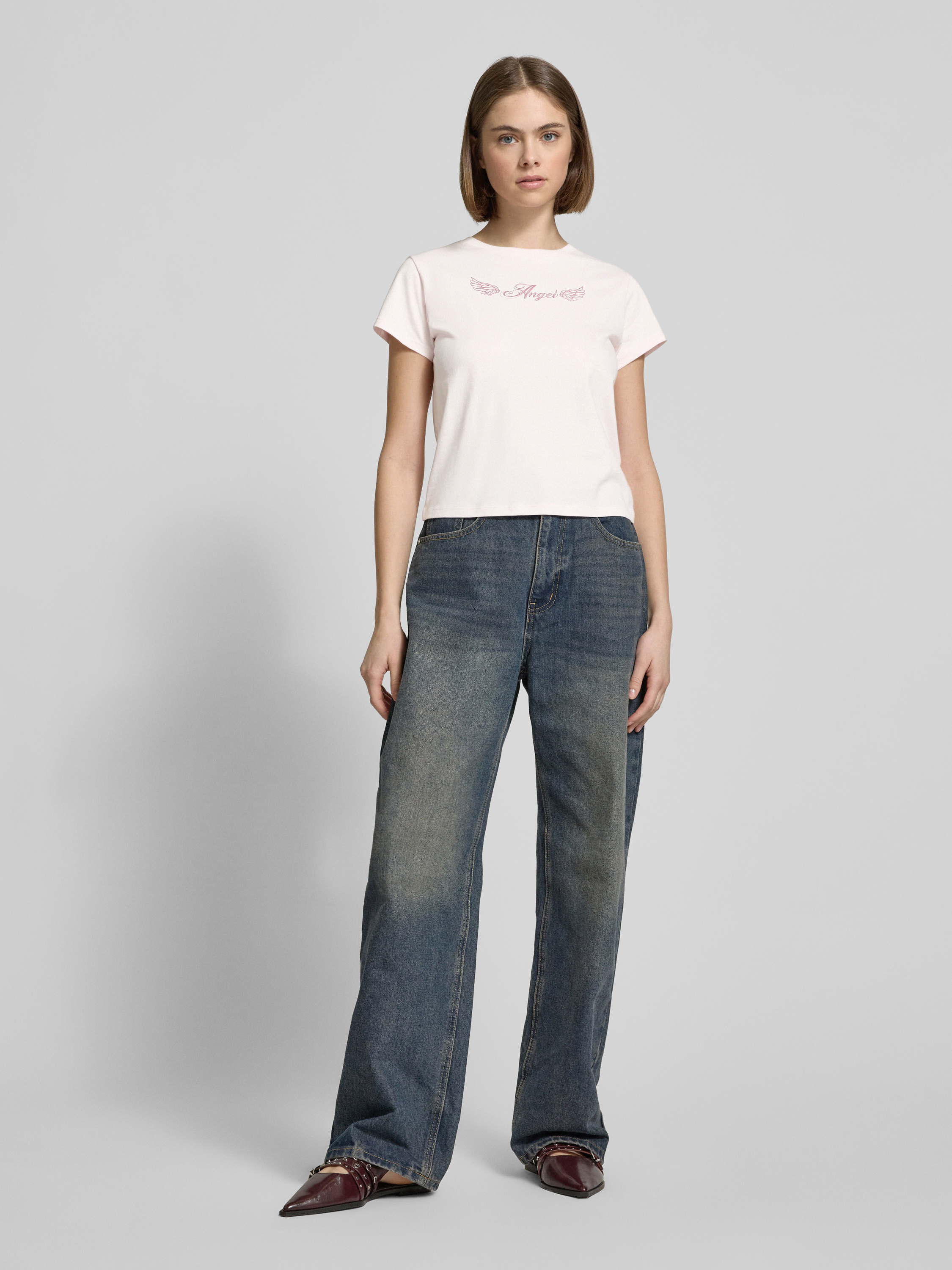T-shirt met motiefprint in rosé