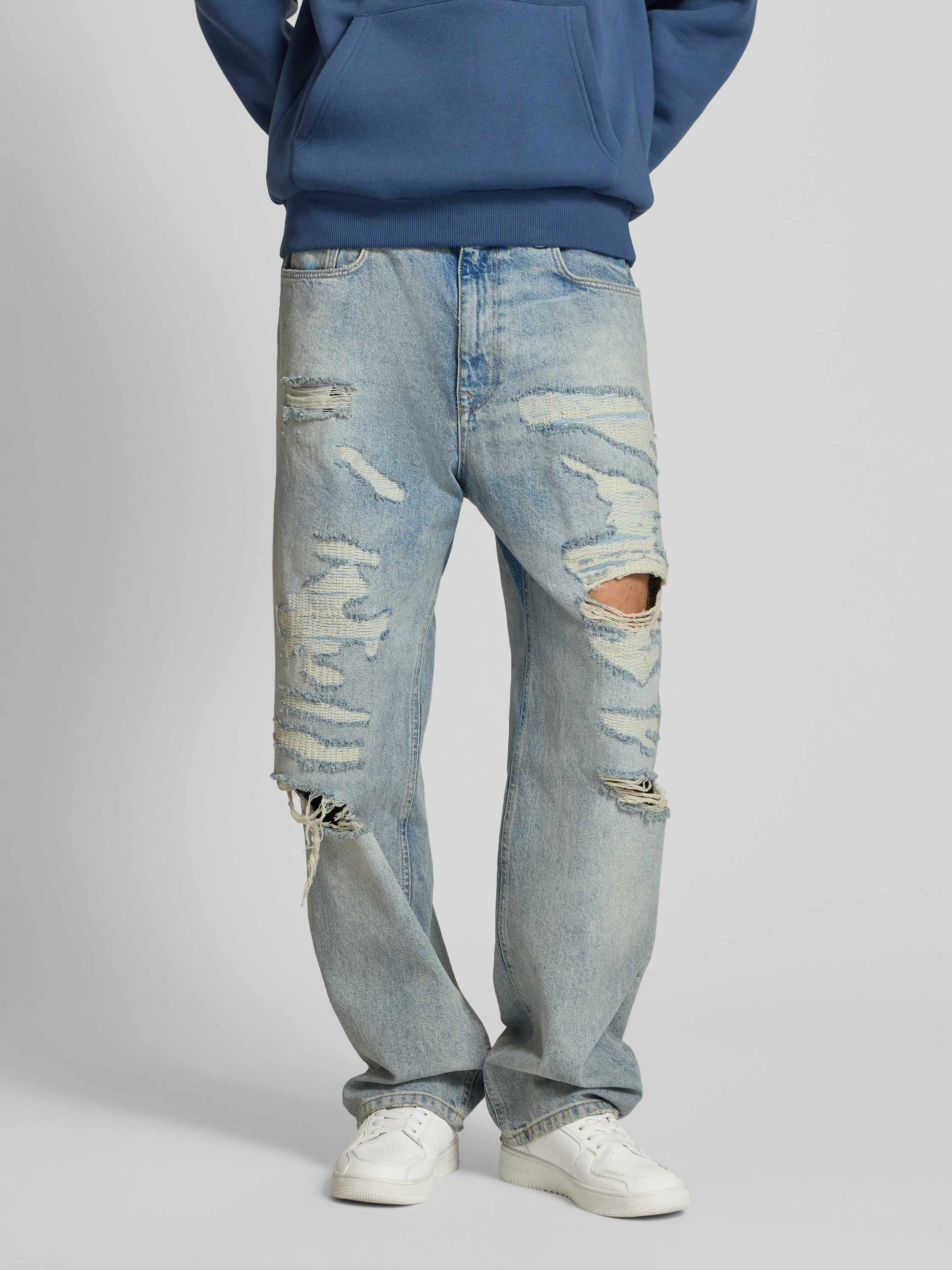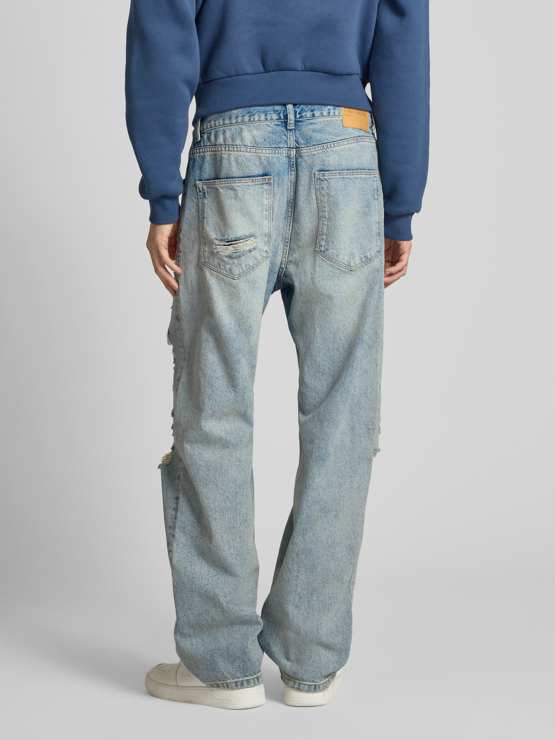 Baggy fit jeans in een destroyed-look in lichtblauw