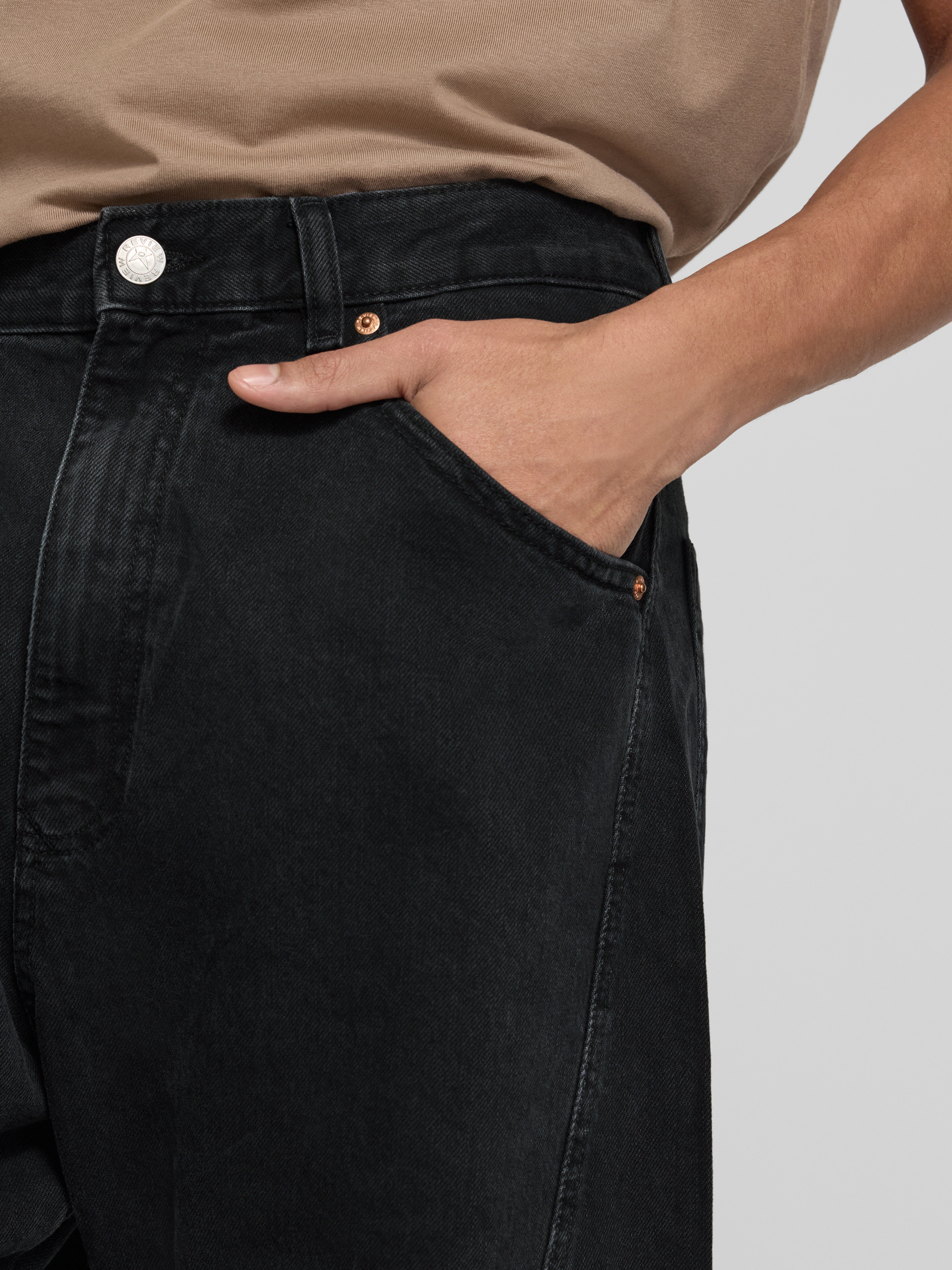 Barrel fit jeans van puur katoen met achterzakken in zwart