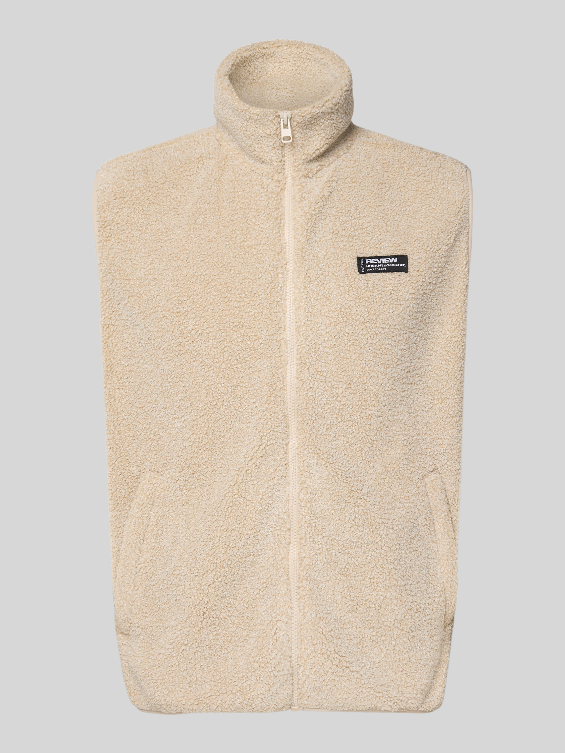 Fleecegilet met opstaande kraag en steekzakken in beige