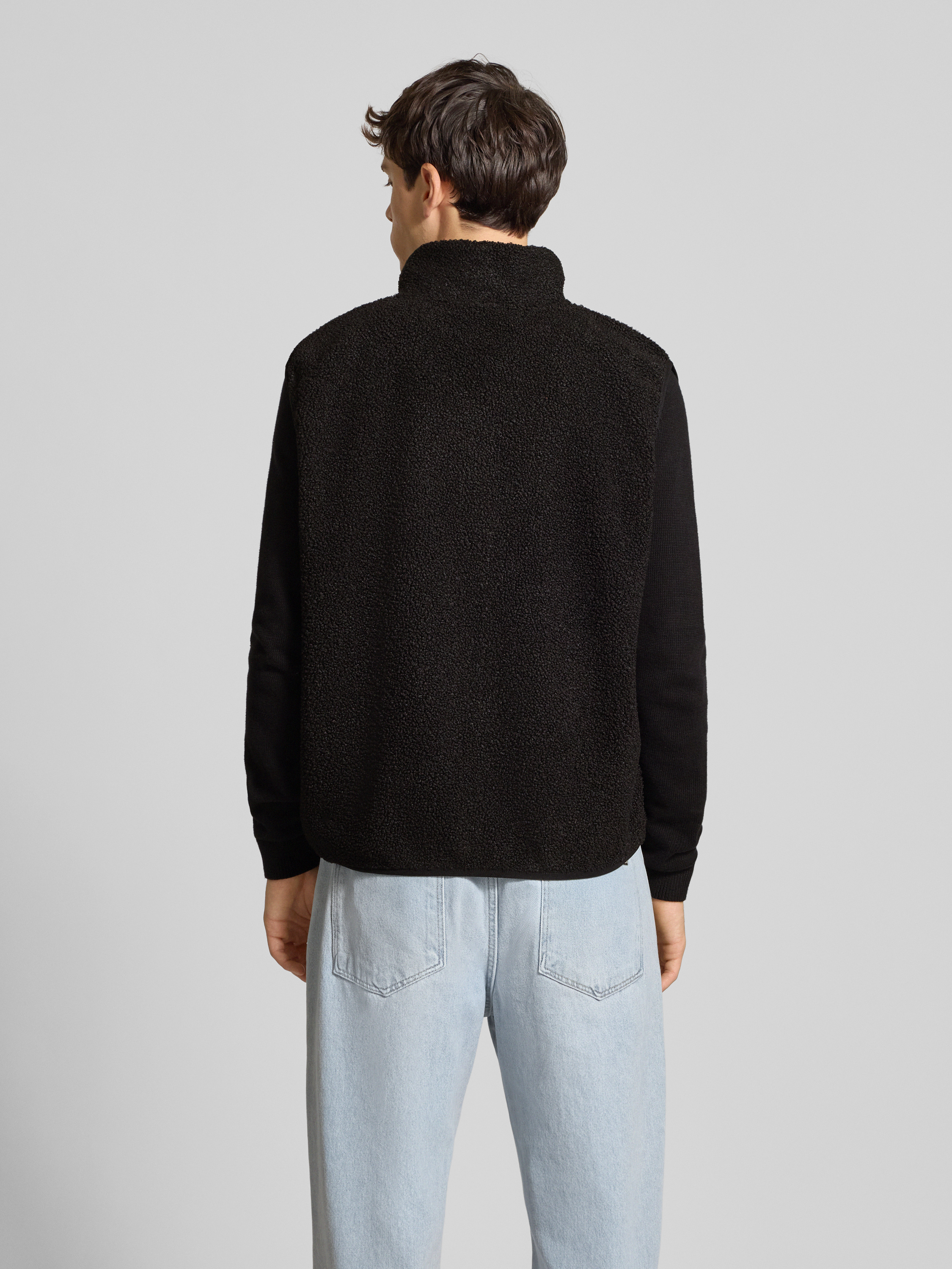 Fleecegilet met opstaande kraag en steekzakken in zwart