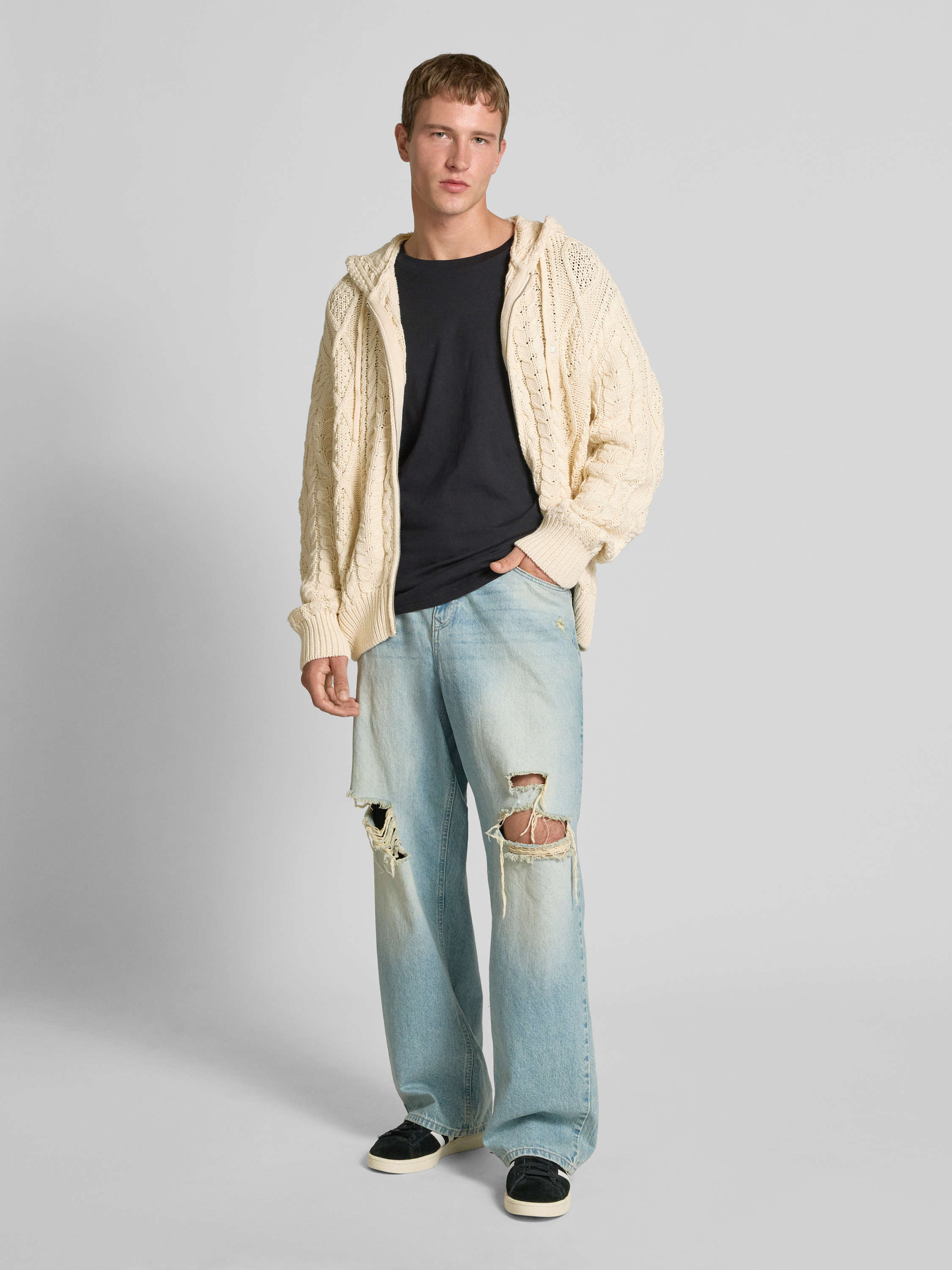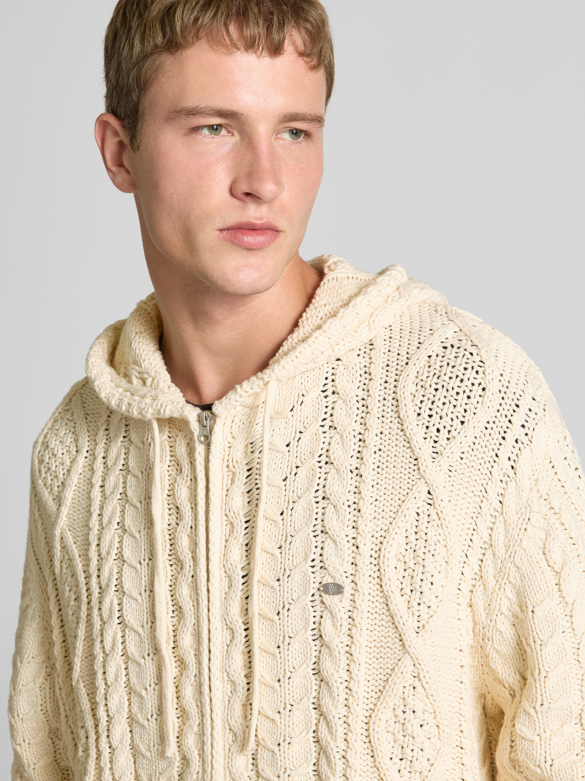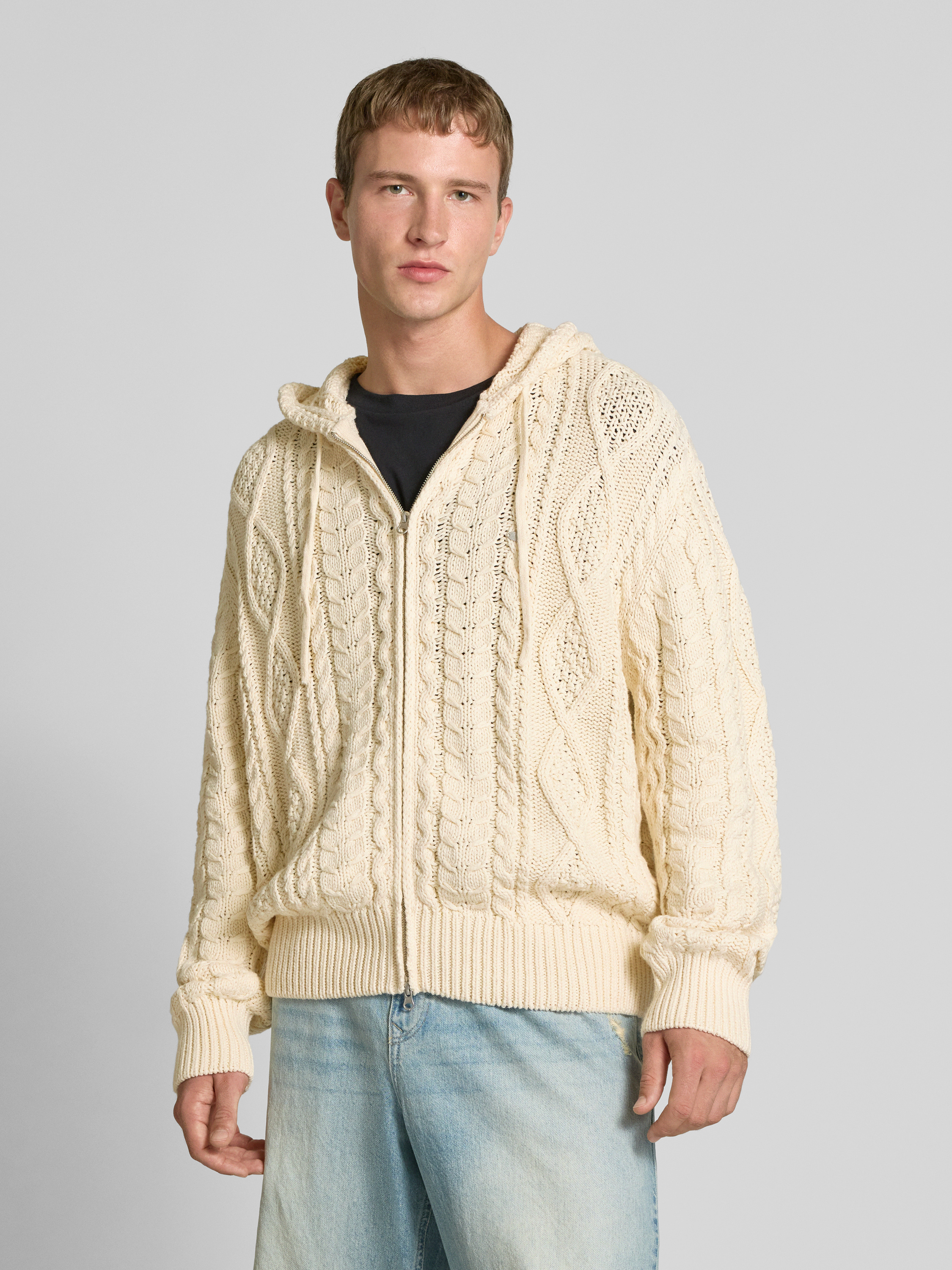 Gebreid jack met kabelpatroon in ecru