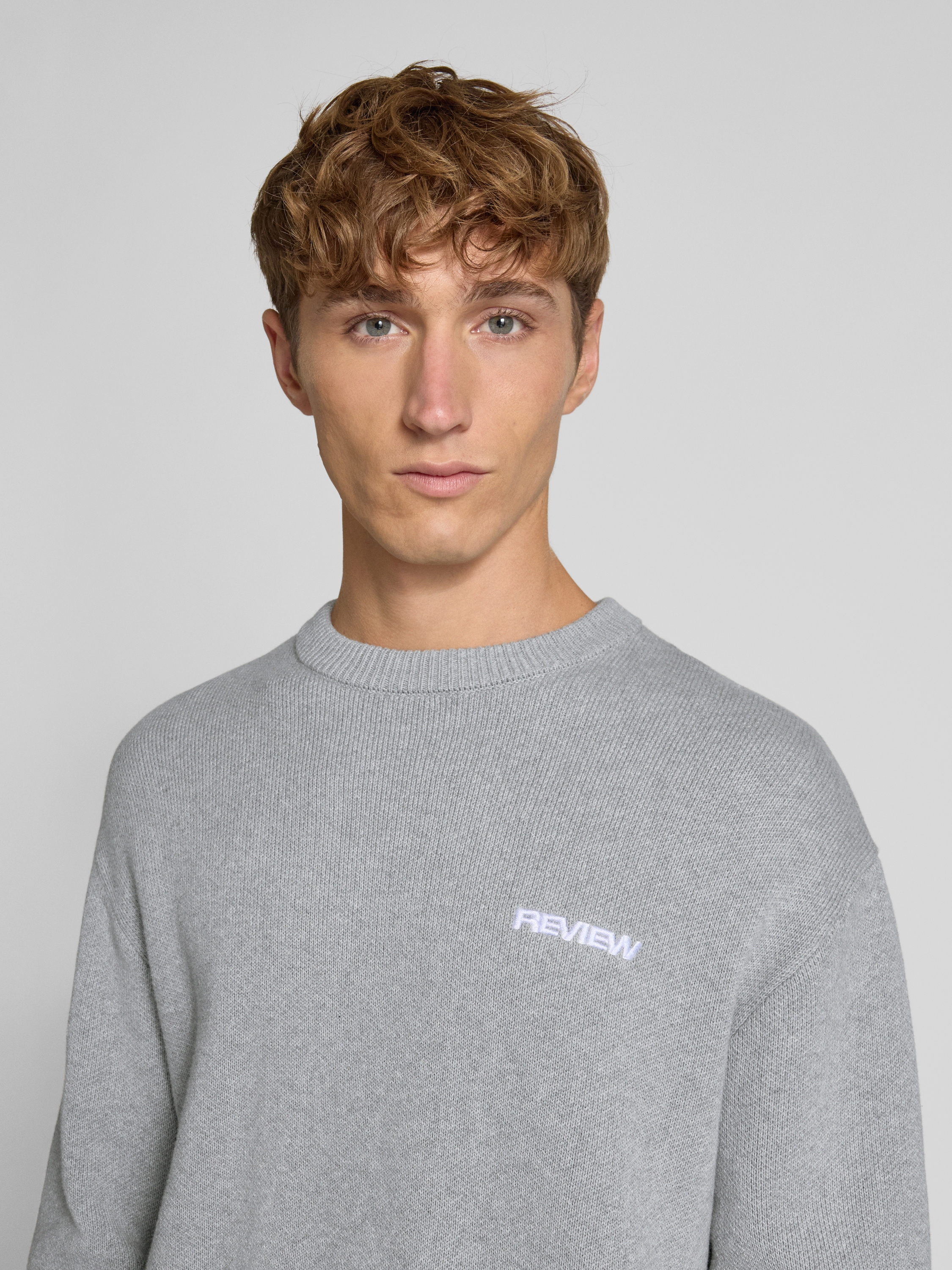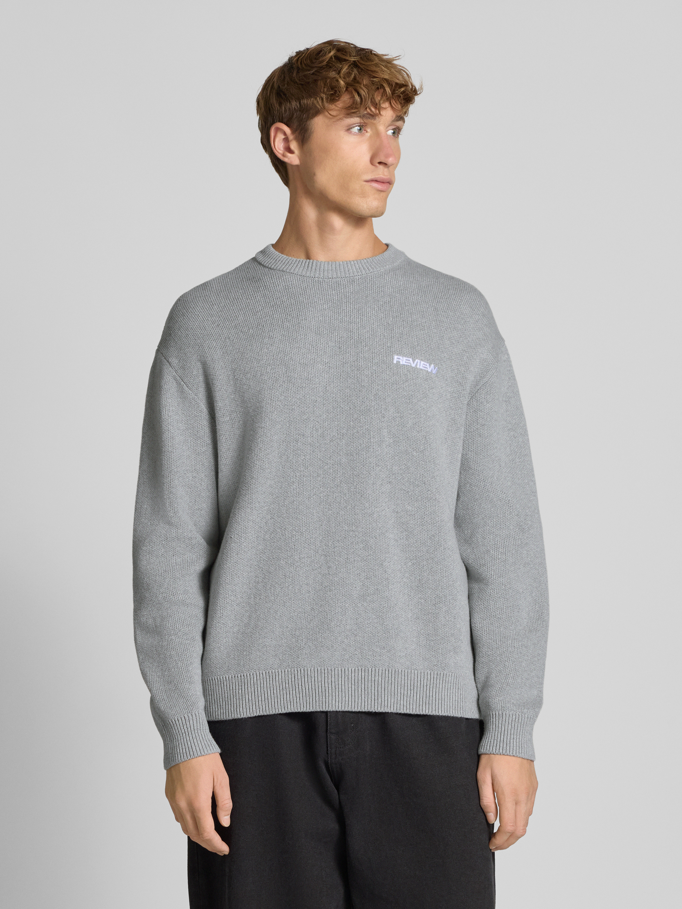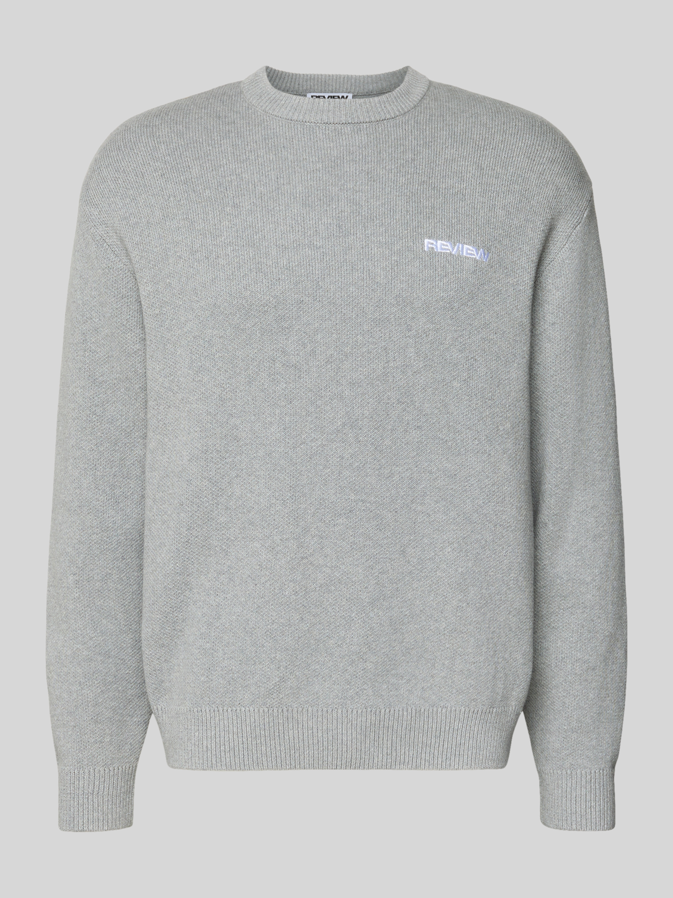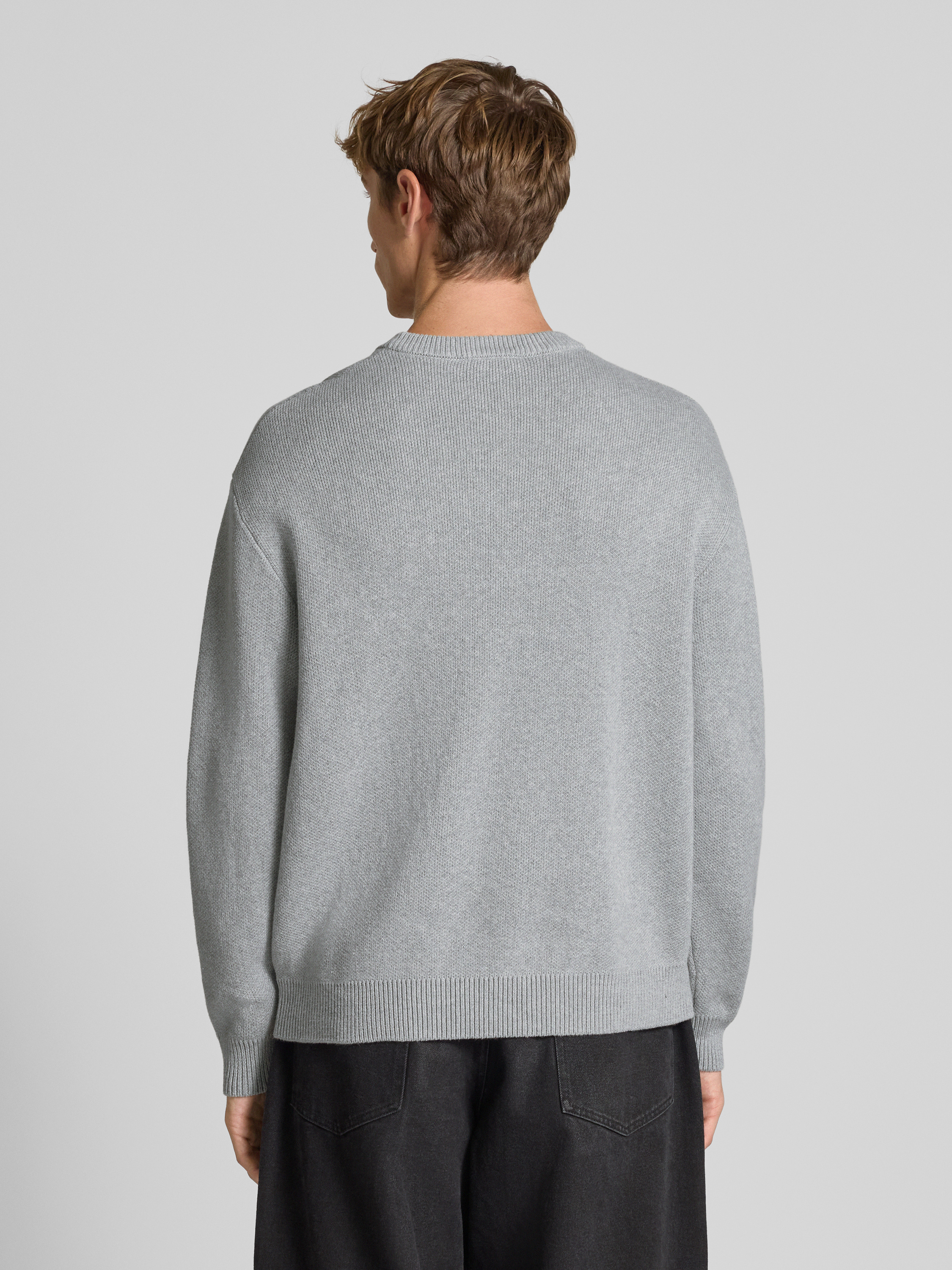 Gebreide pullover met labelstitching in lichtgrijs gemêleerd