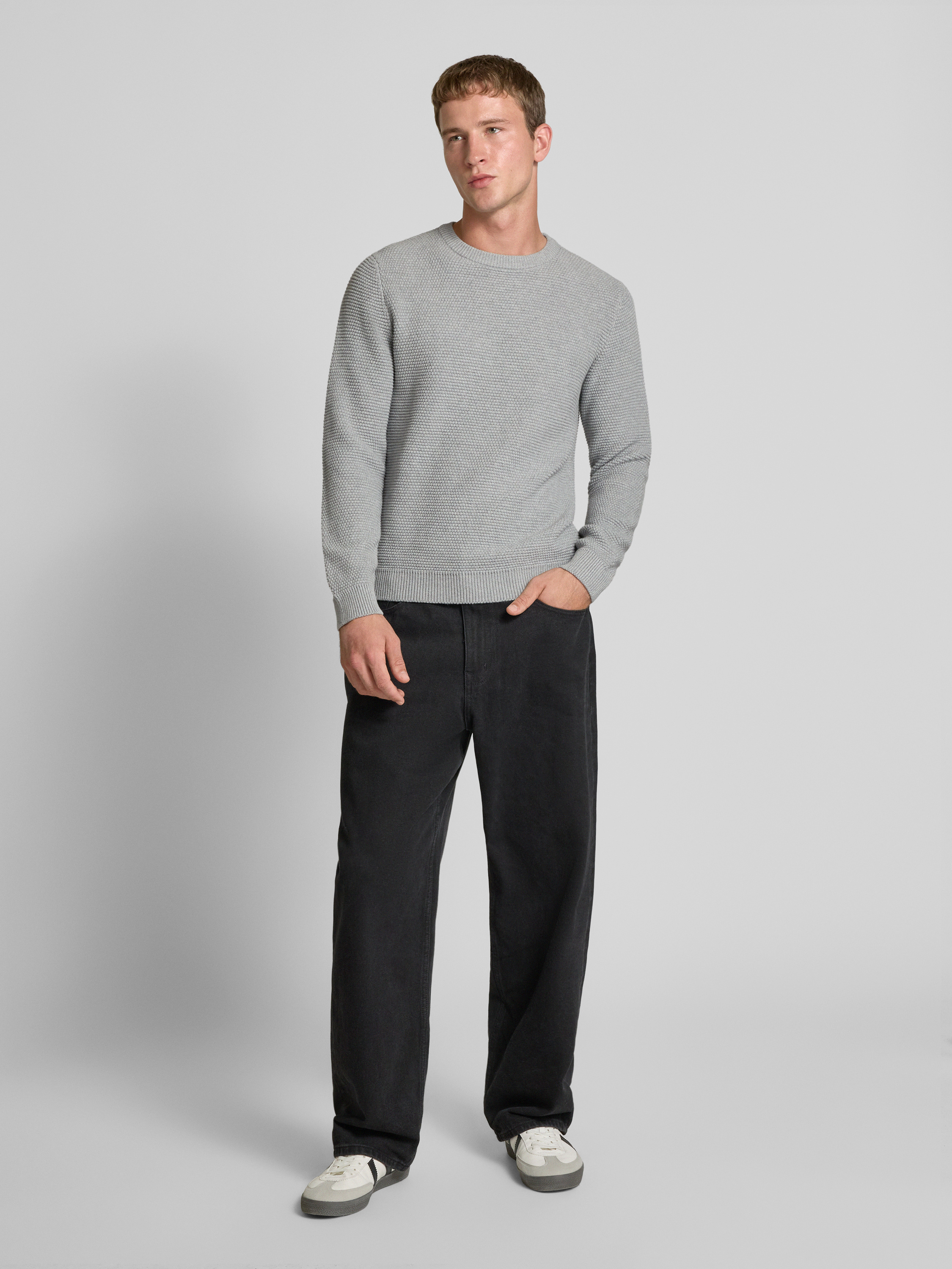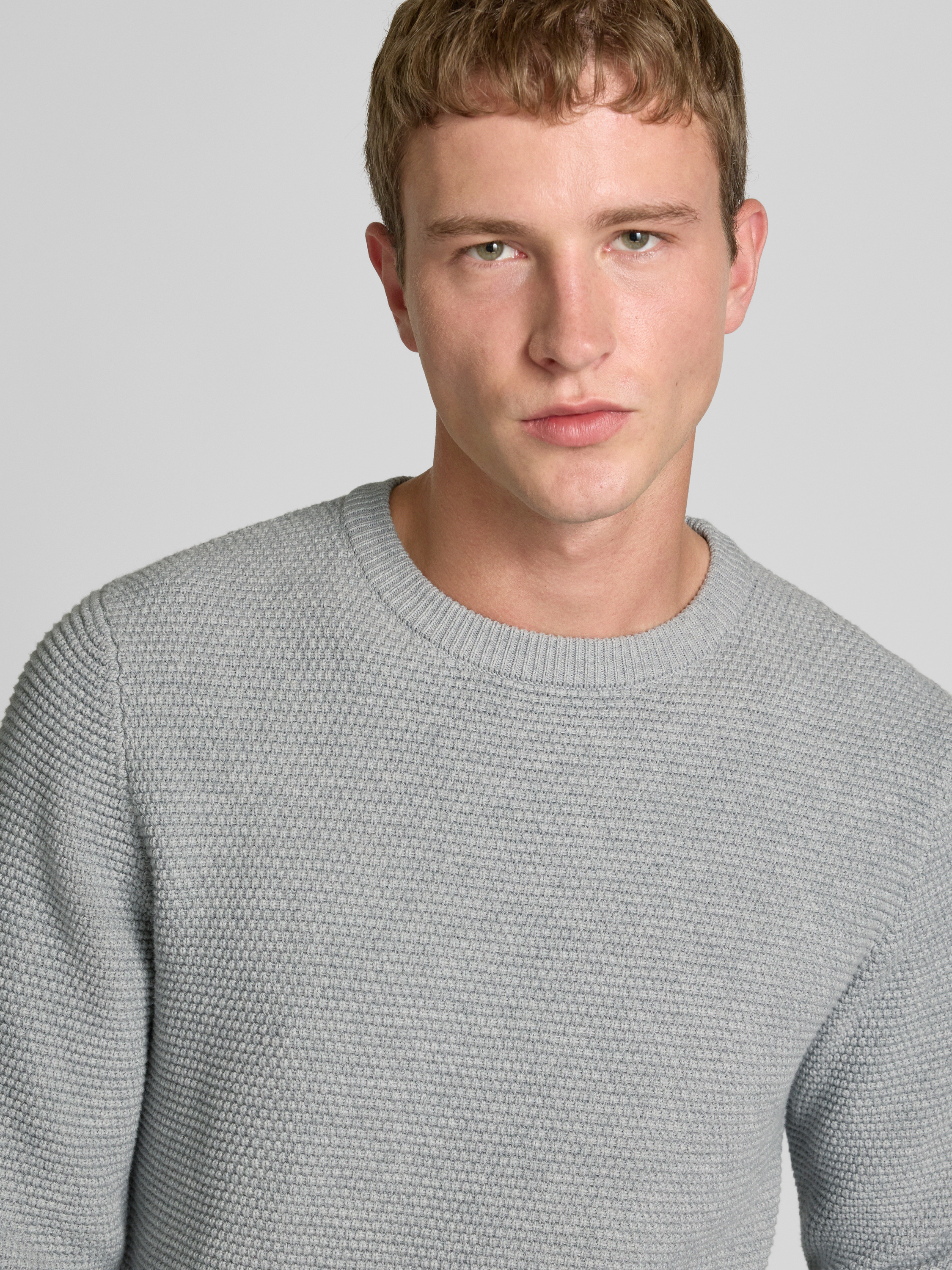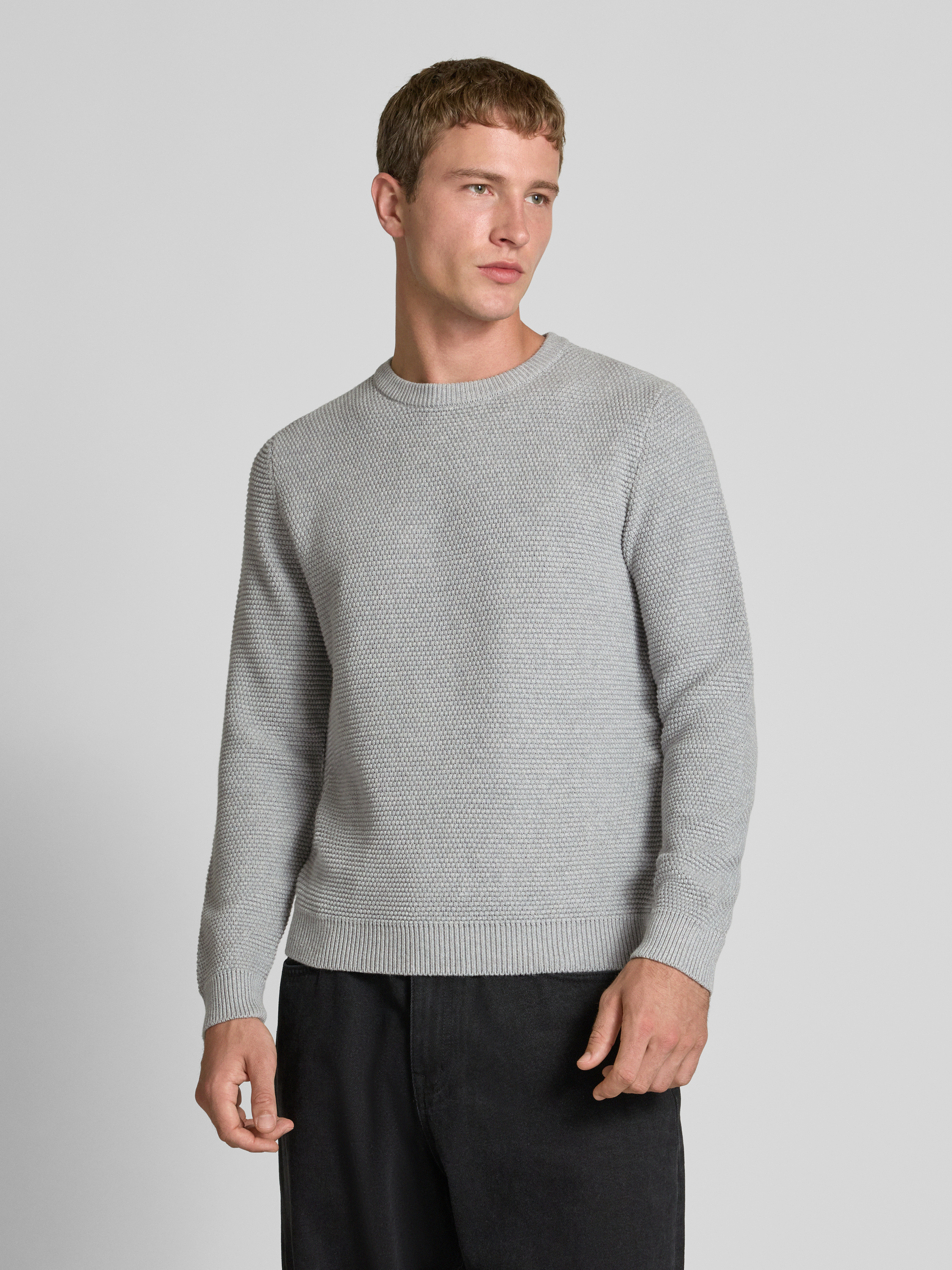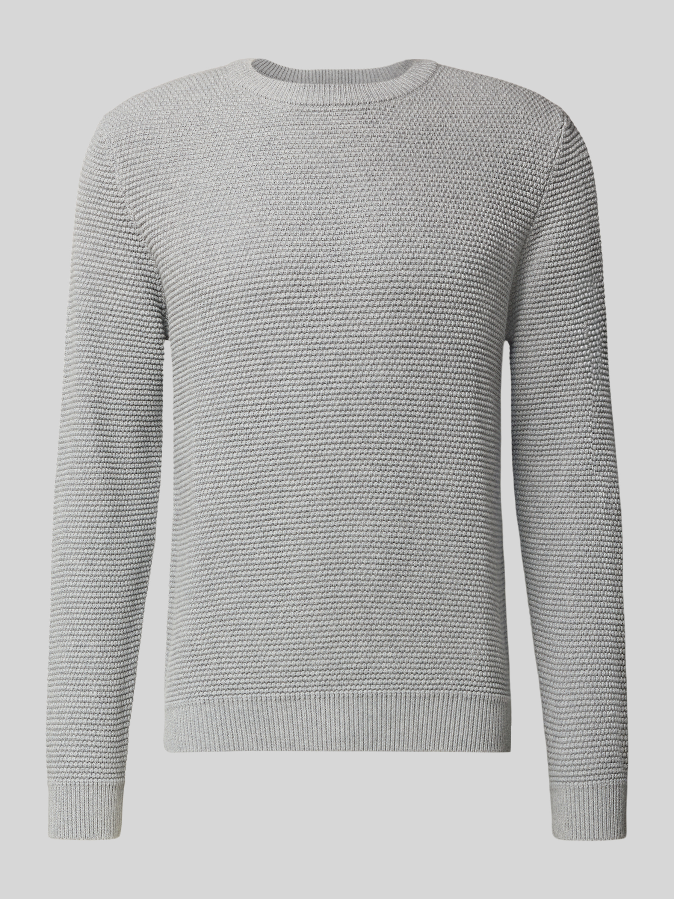 Gebreide pullover met structuurmotief in lichtgrijs gemêleerd