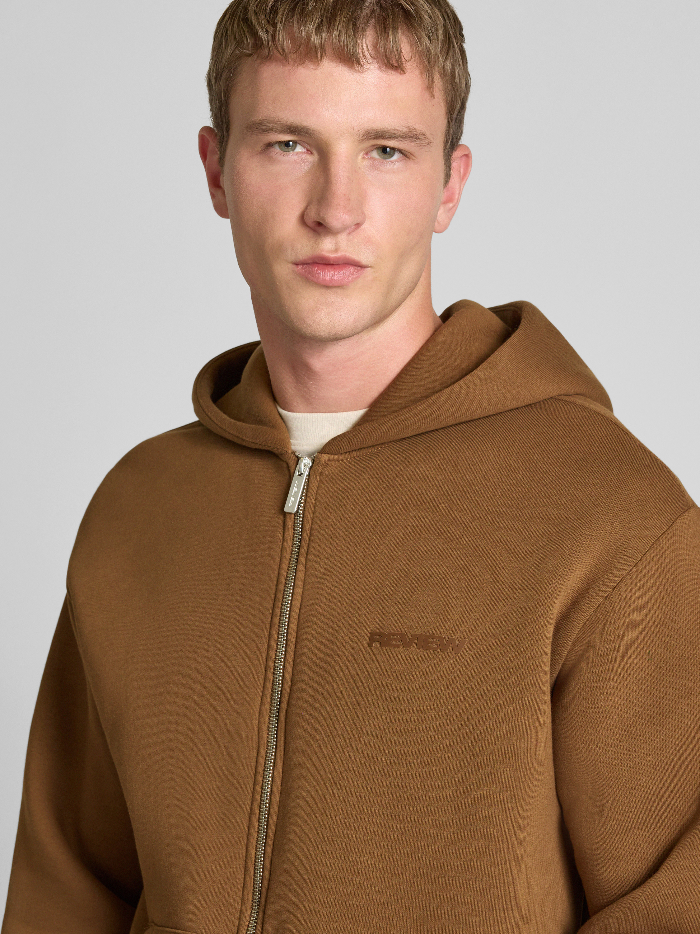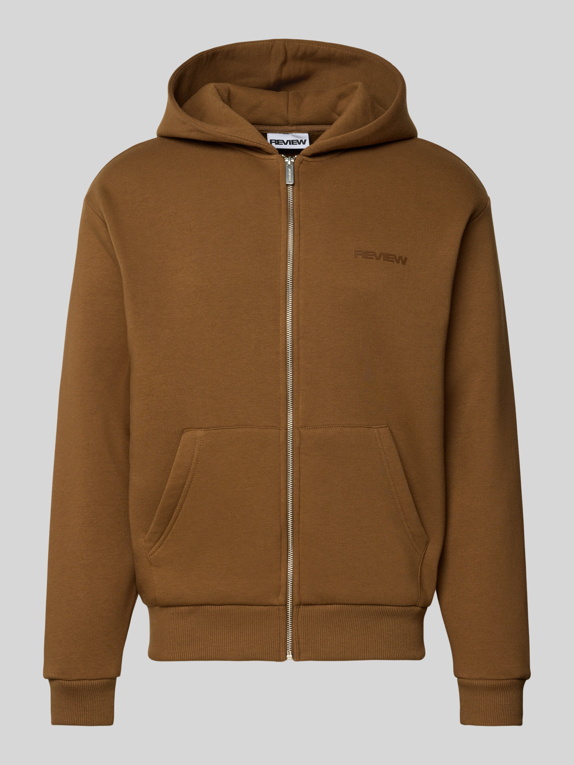 Regular fit sweatjack met logo-applicatie in middenbruin