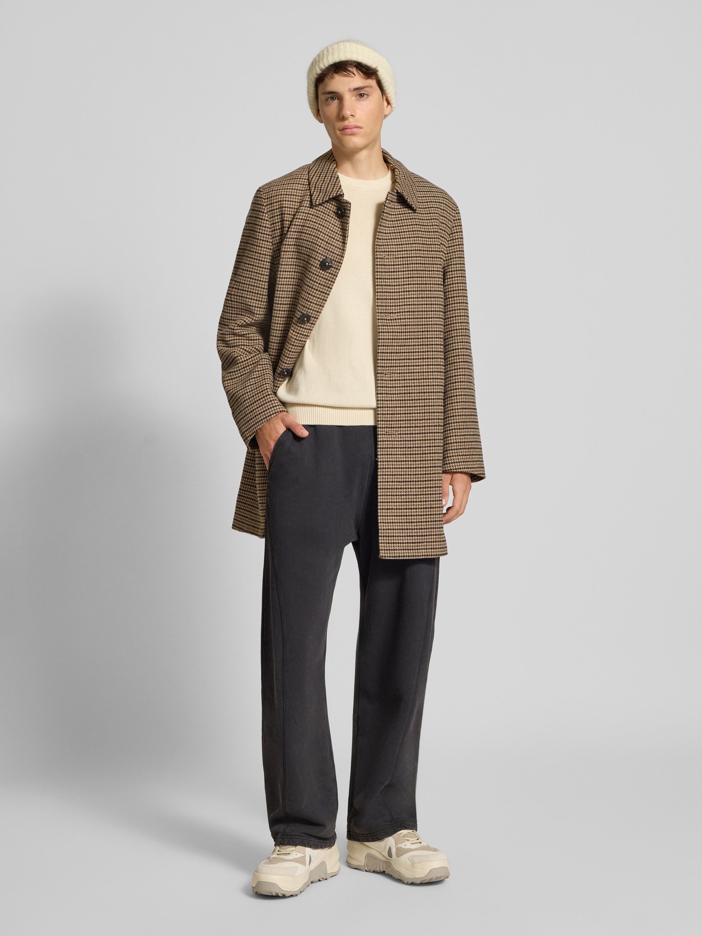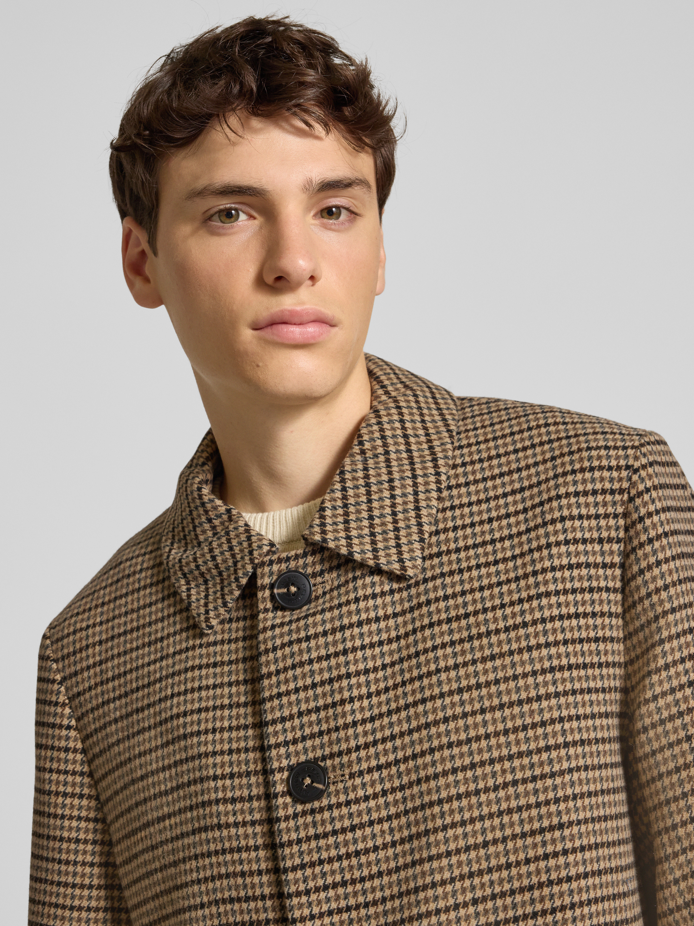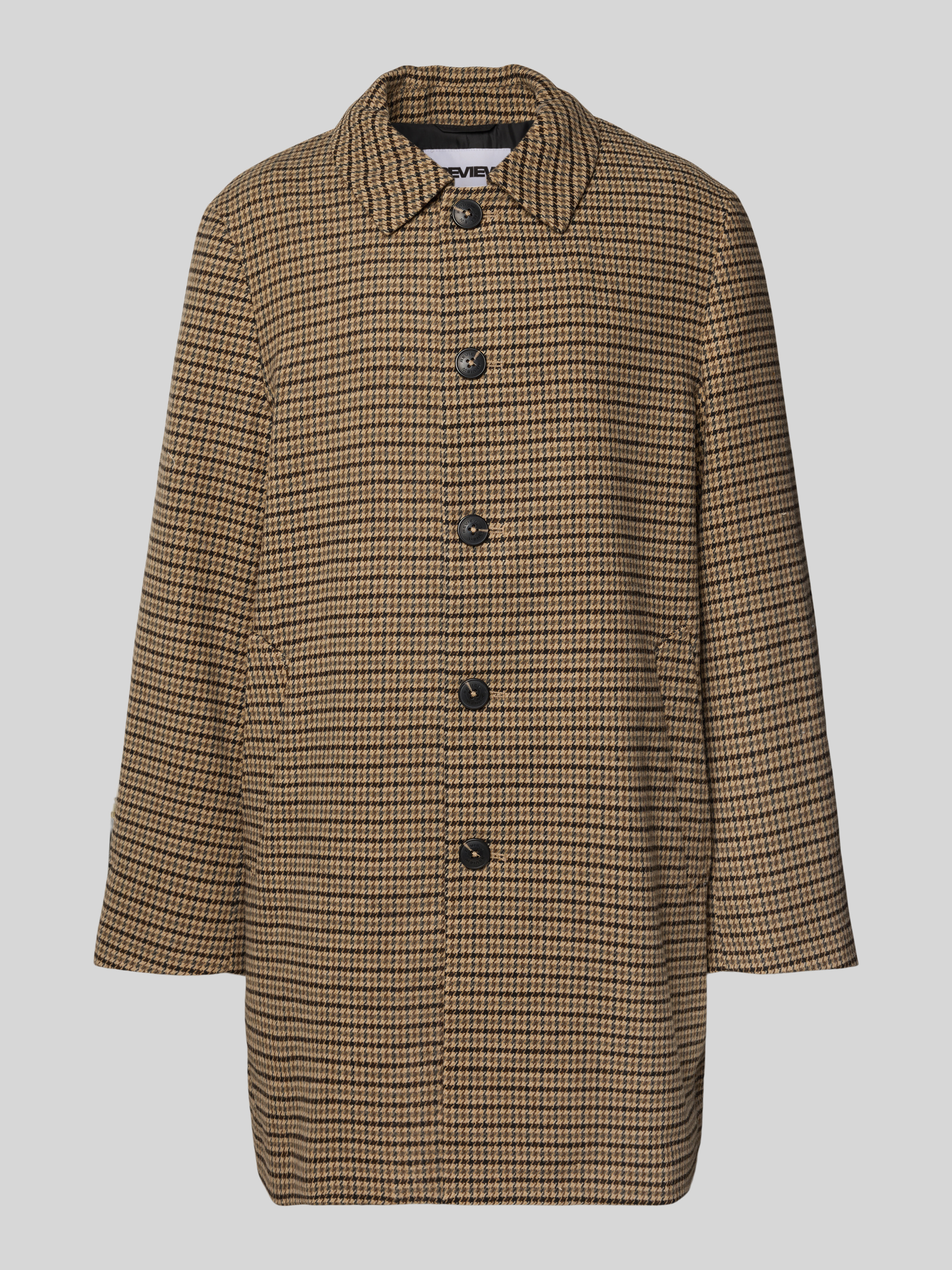Relaxed fit lange jas met platte kraag in lichtbruin