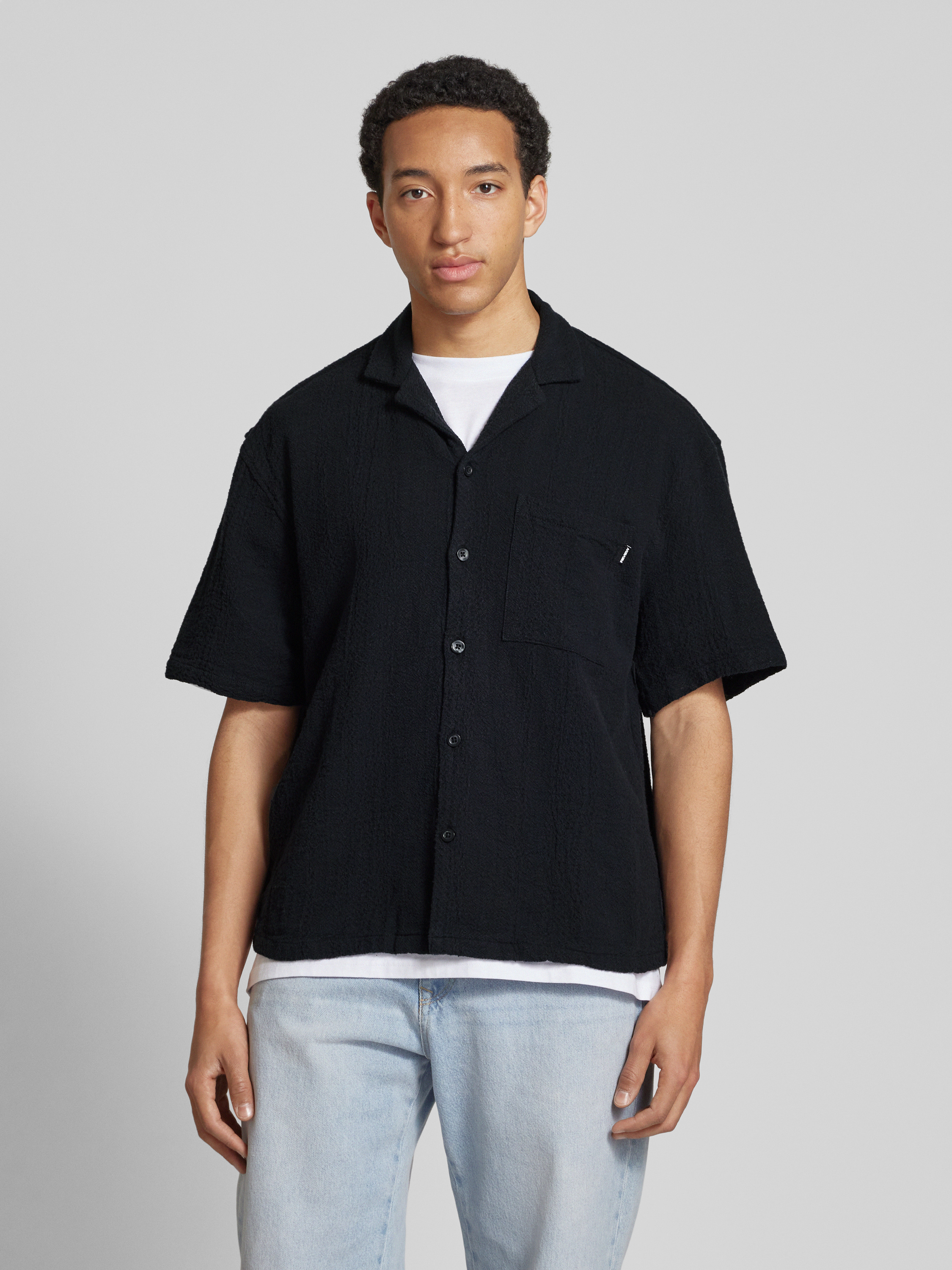 Relaxed fit vrijetijdsoverhemd met 1/2-mouwen in zwart