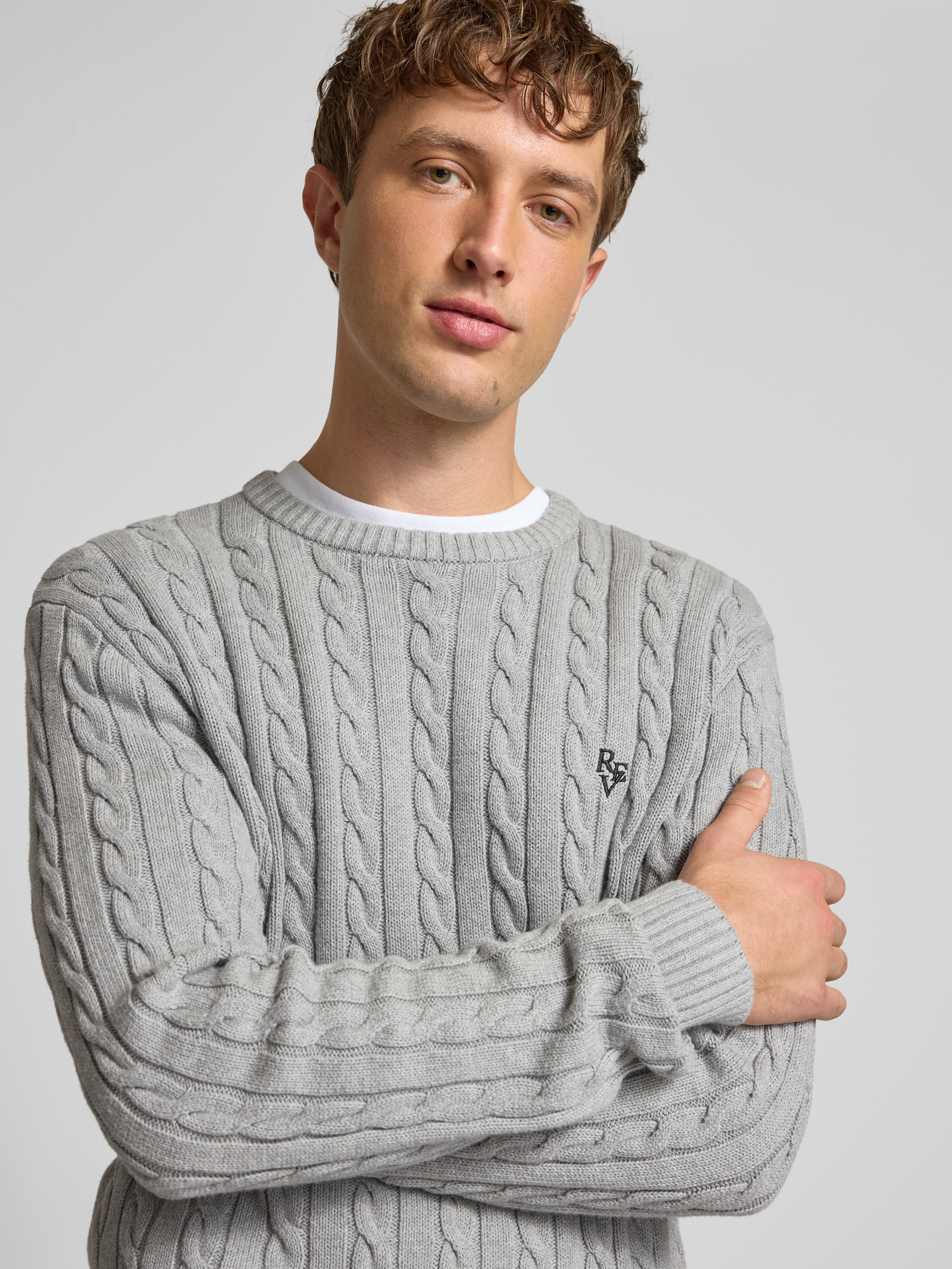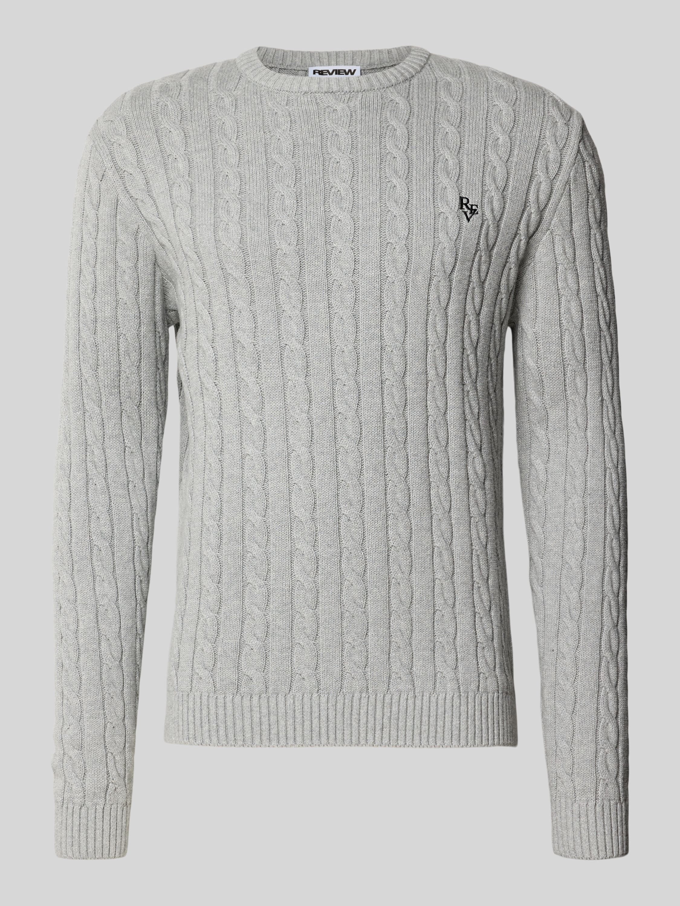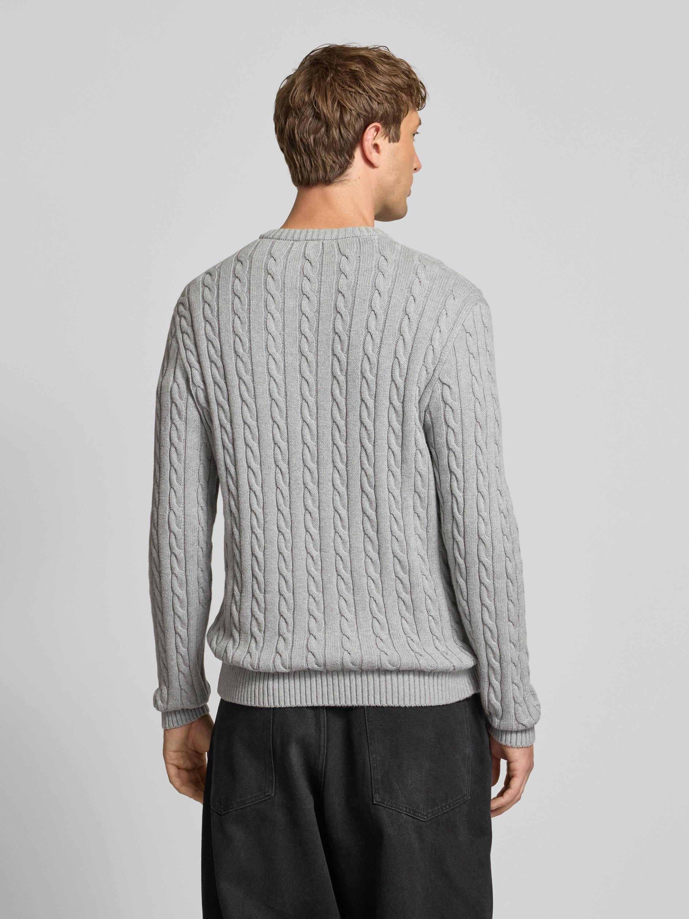 Slim fit gebreide pullover met kabelpatroon in lichtgrijs gemêleerd