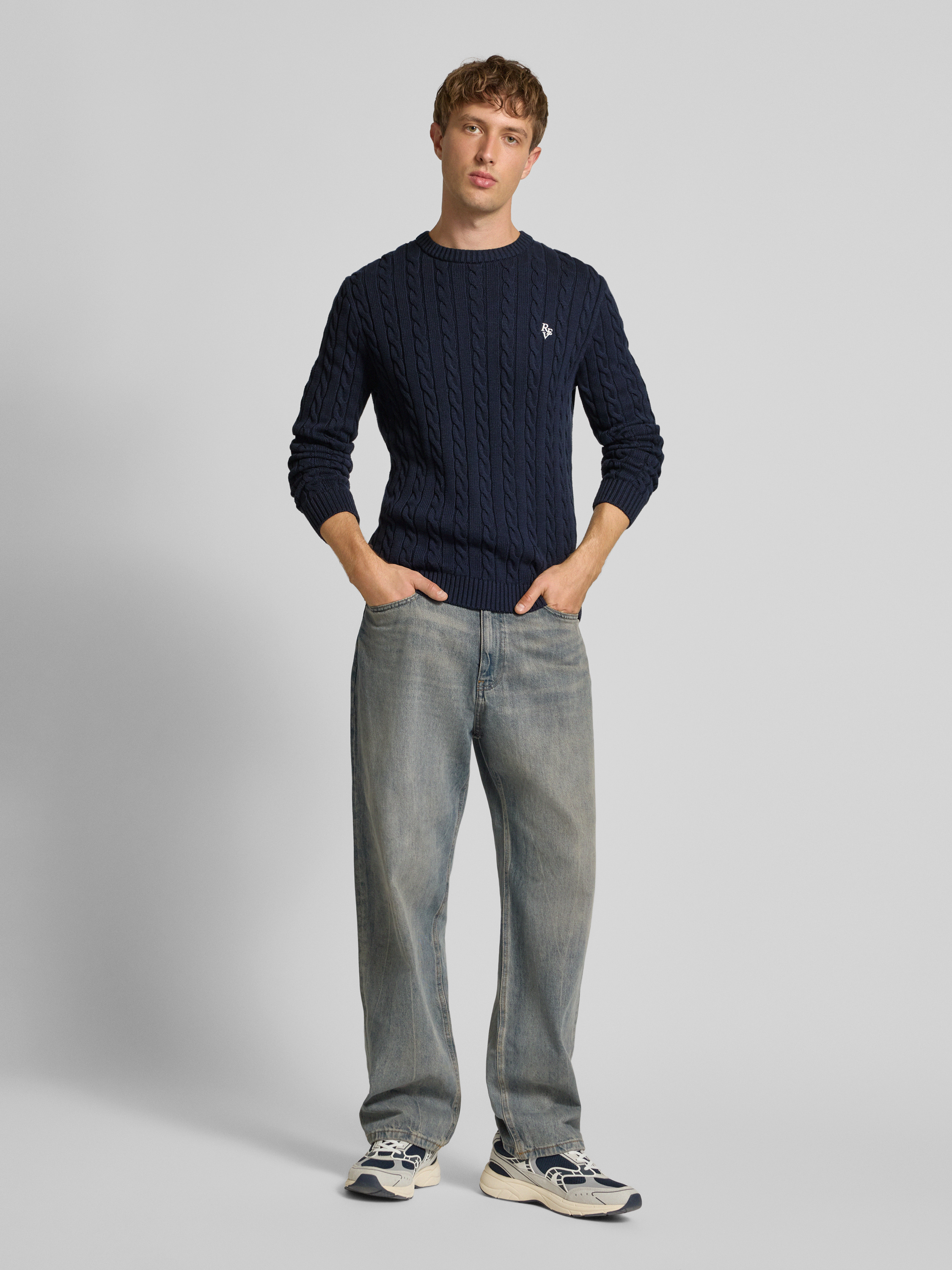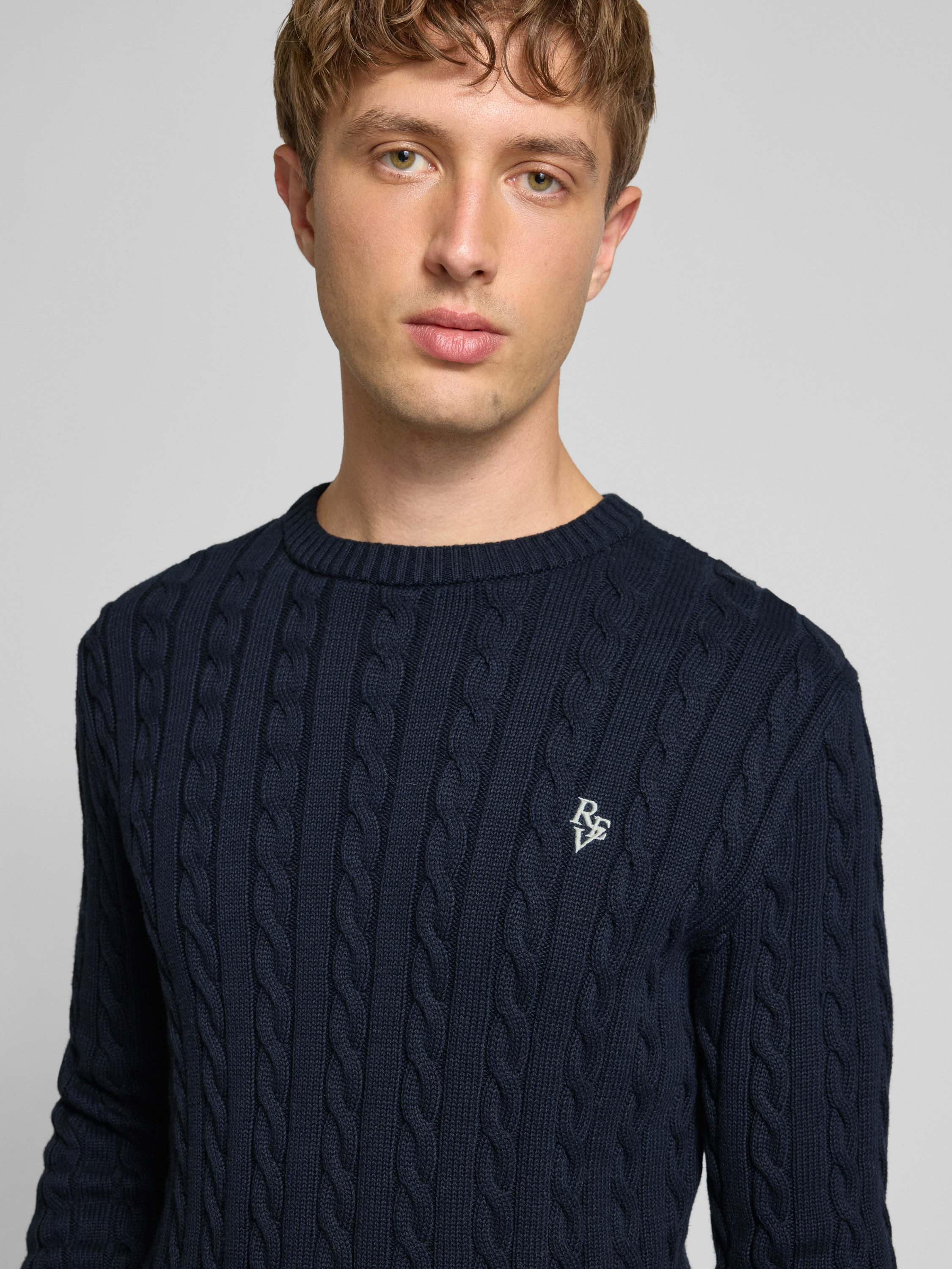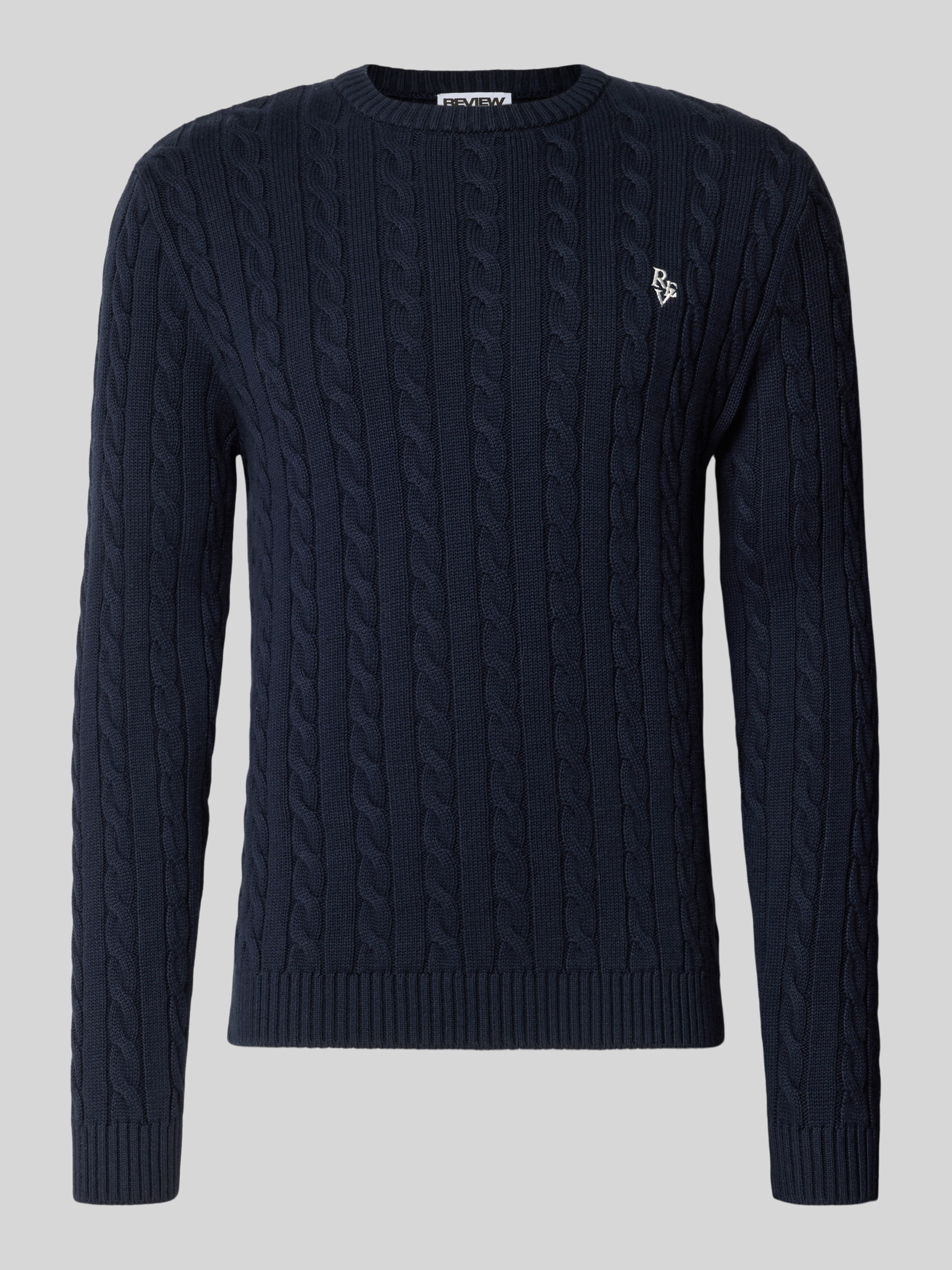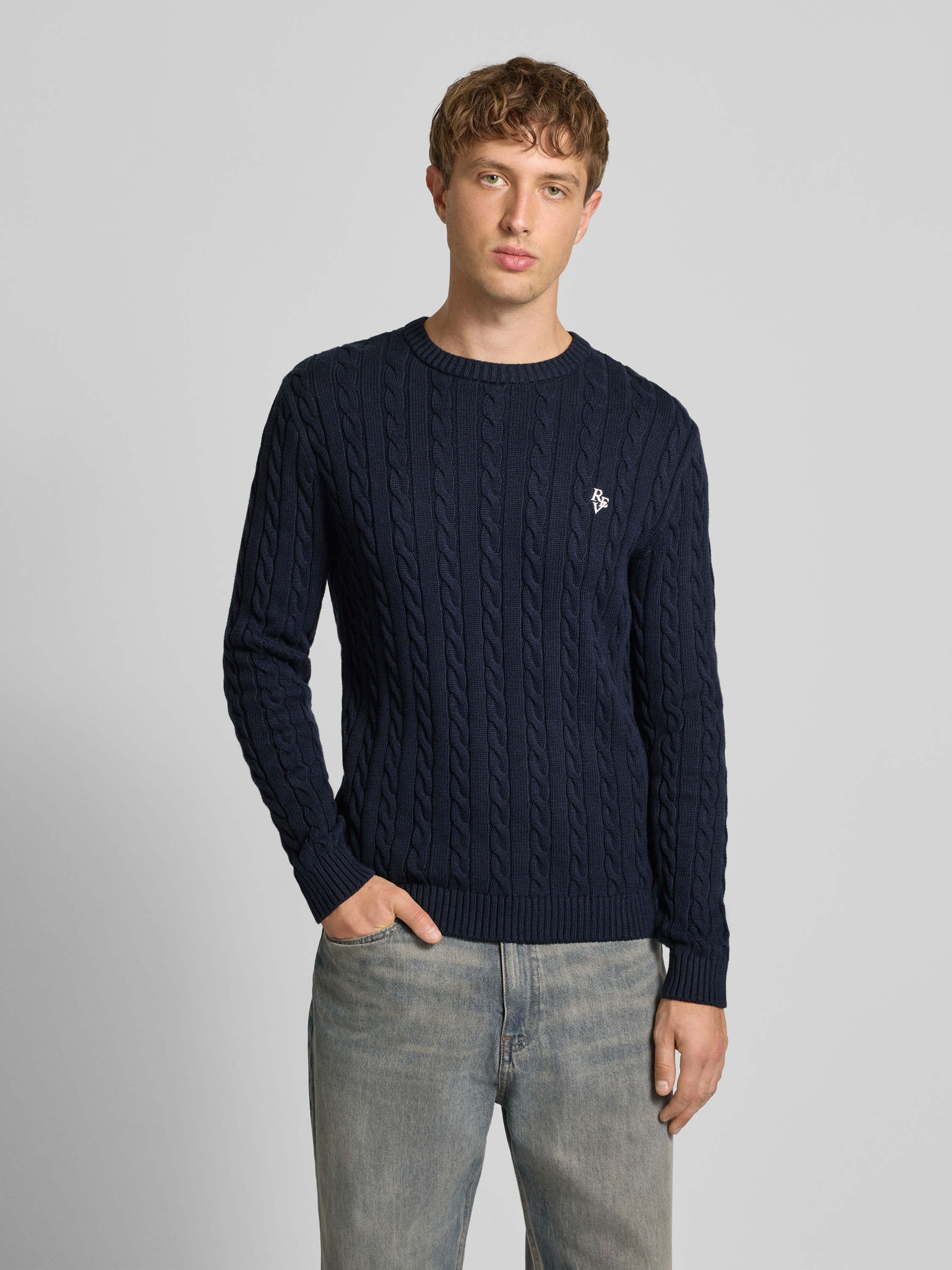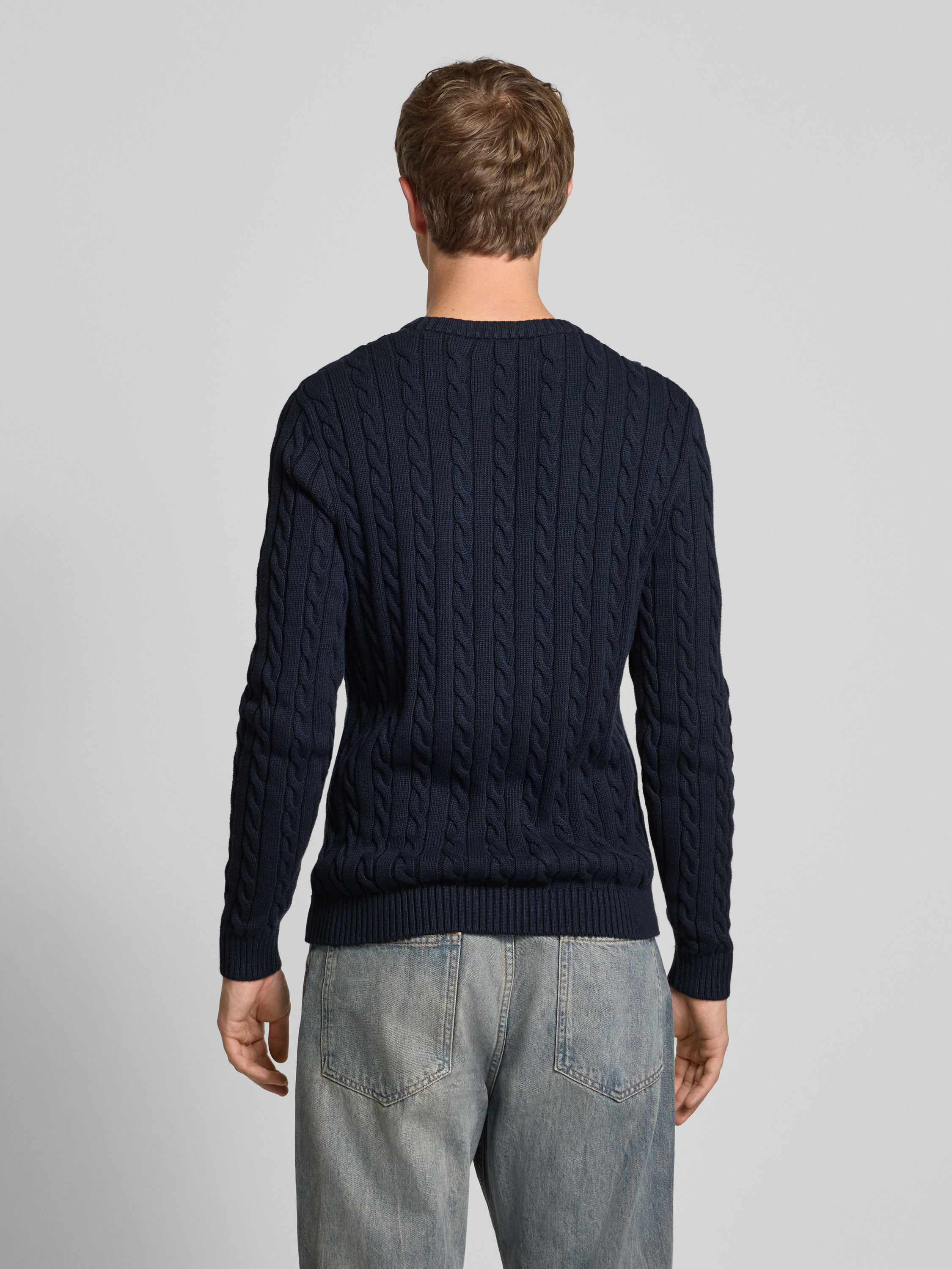 Slim fit gebreide pullover met kabelpatroon in marineblauw