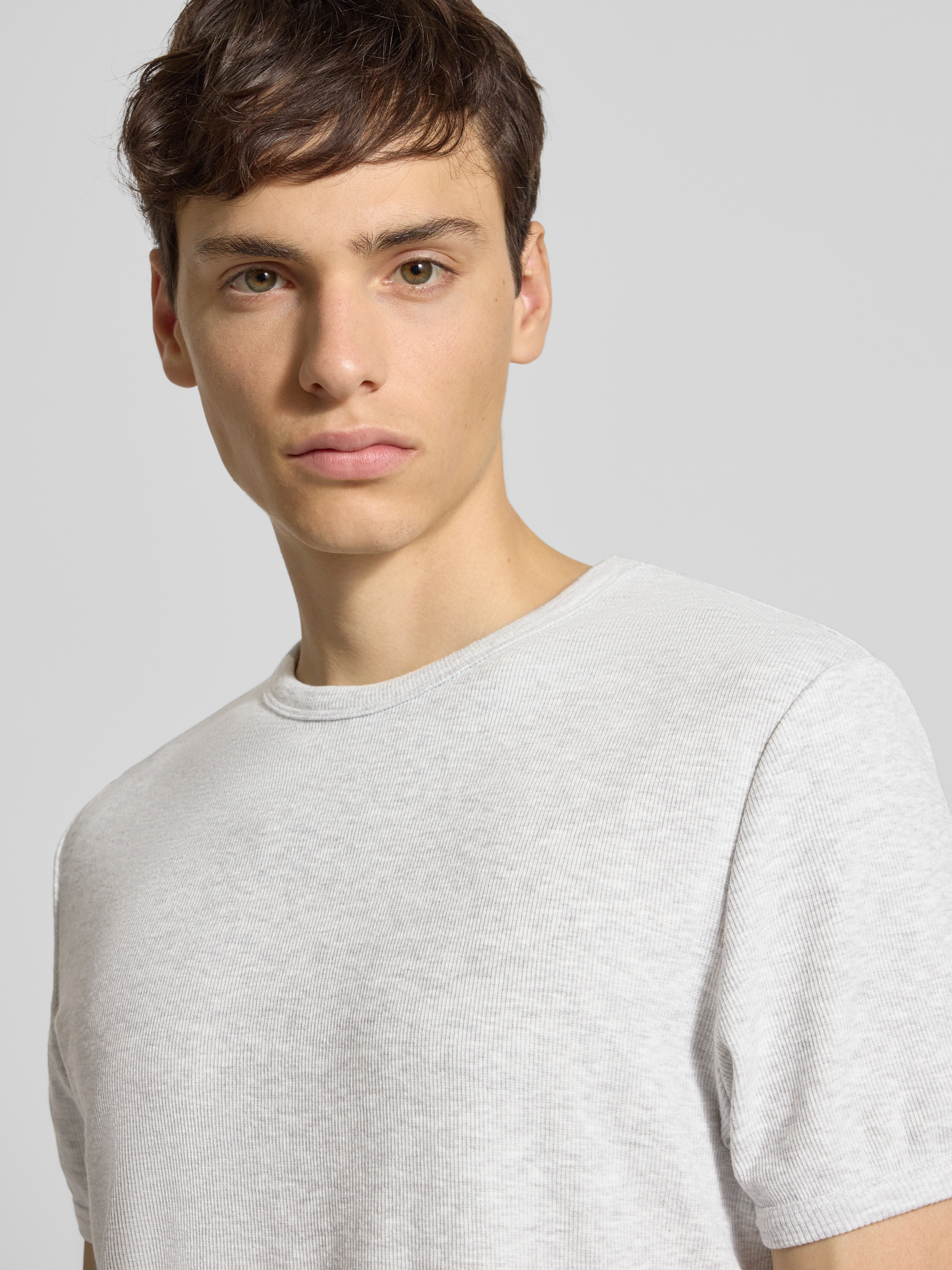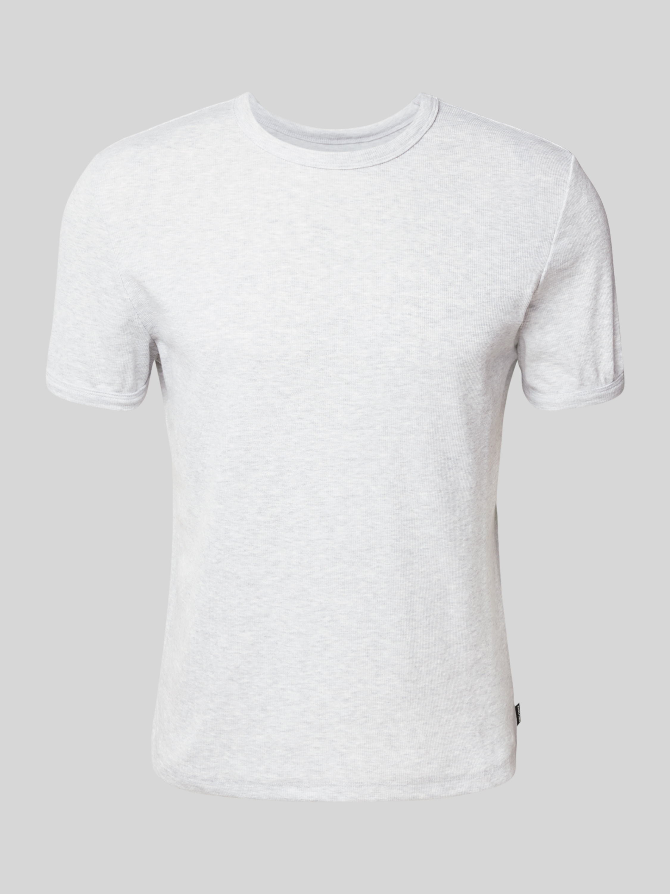 T-shirt met geribde ronde hals in lichtgrijs gemêleerd