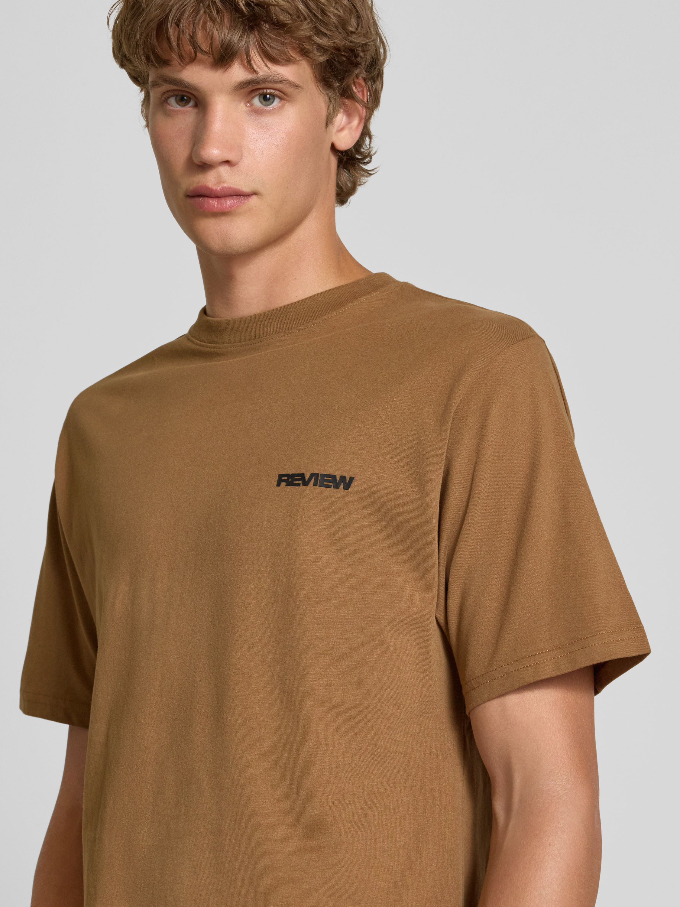 REVIEWT-shirt met logo en ronde hals in middenbruin