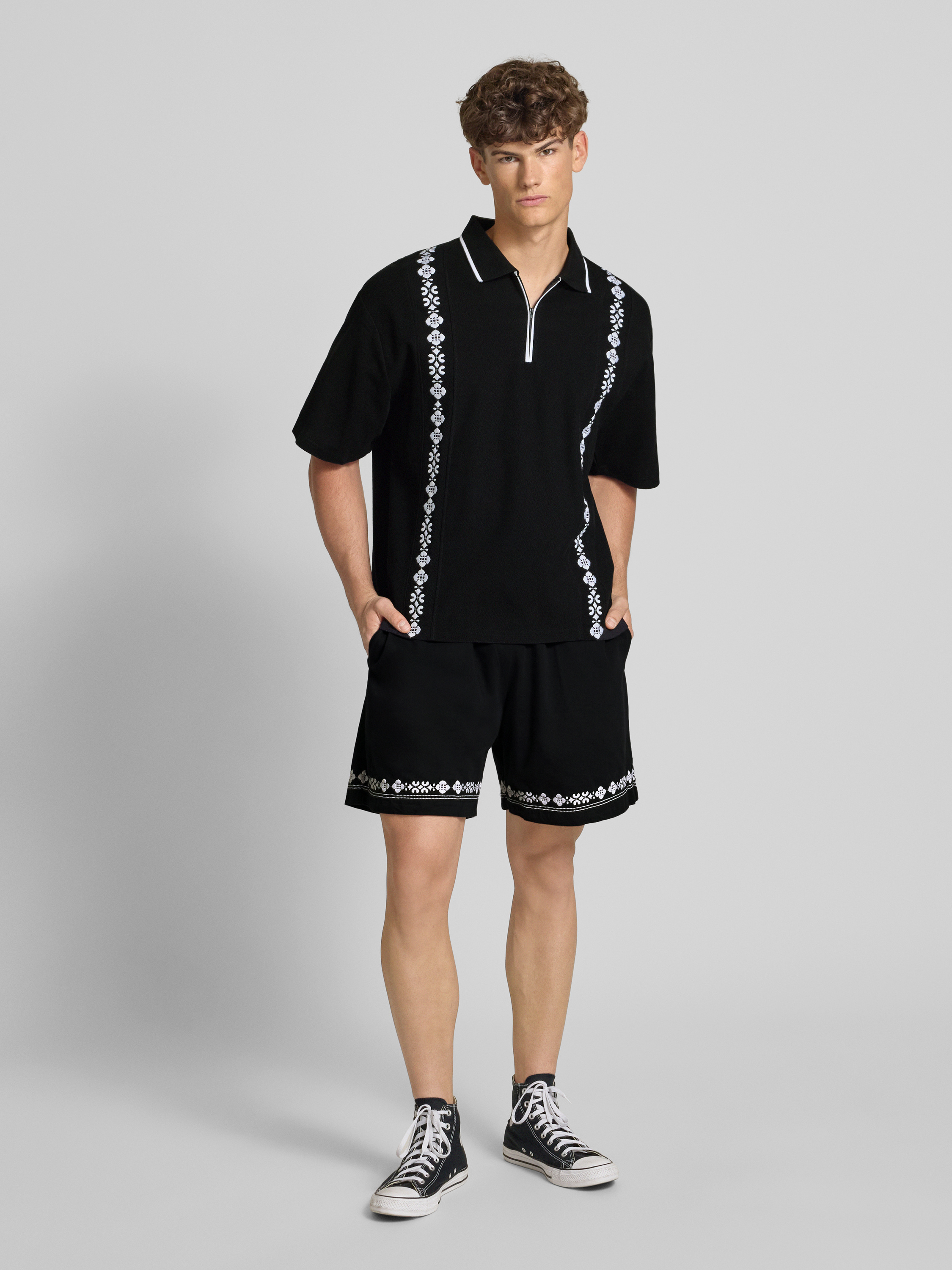 Poloshirt met korte ritssluiting in zwart