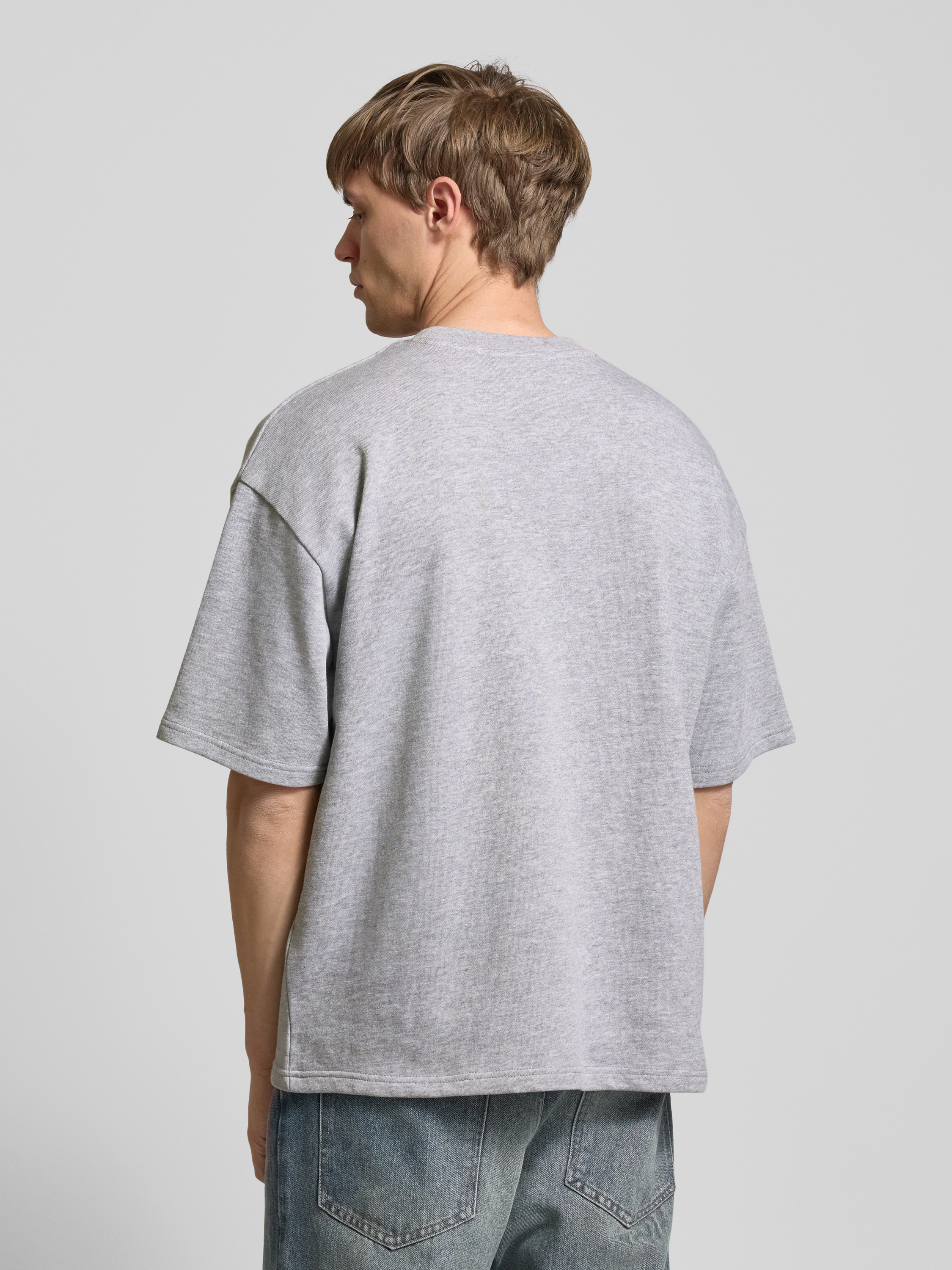 T-shirt met labelstitching in lichtgrijs gemêleerd