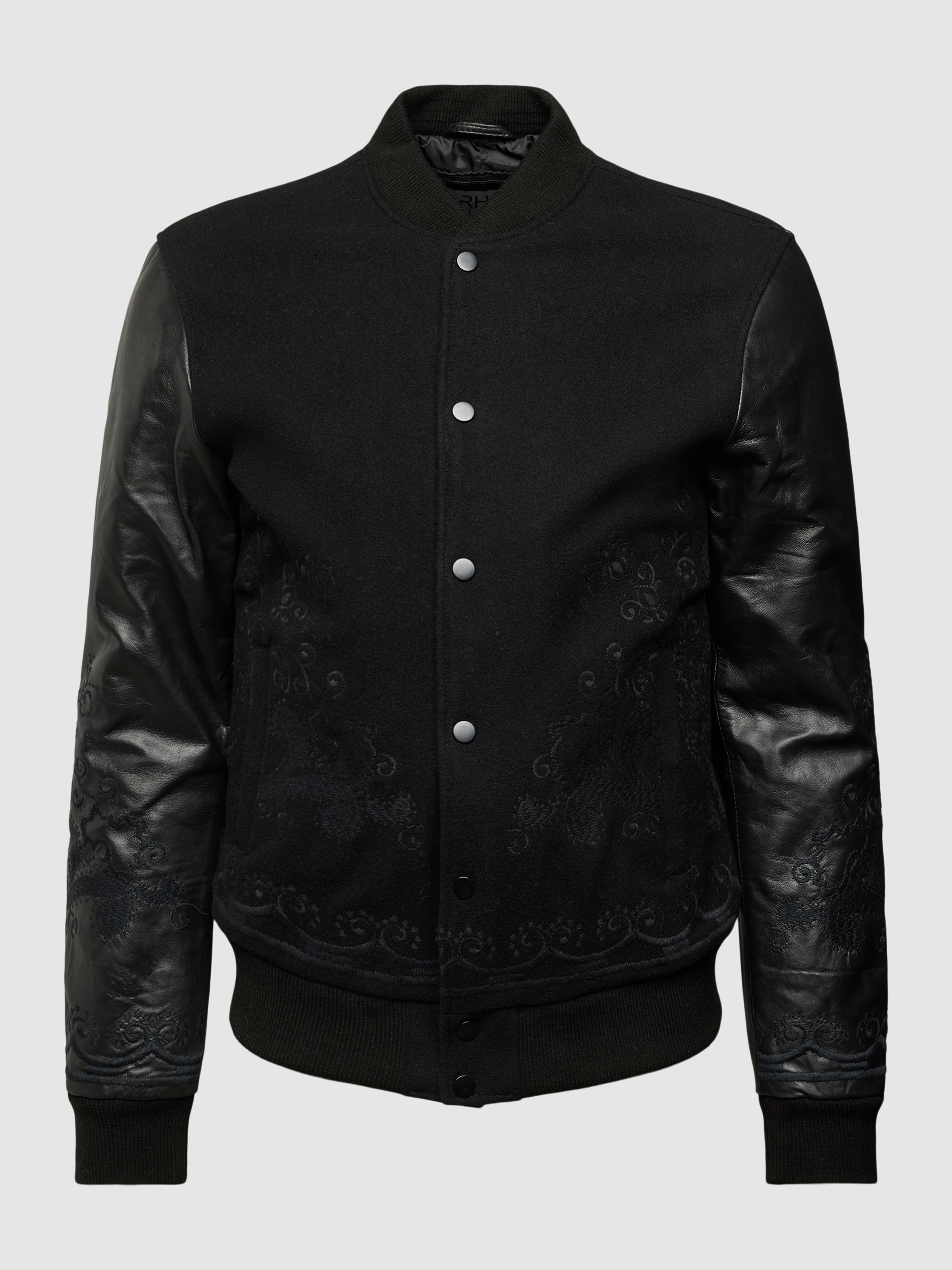 Bomberjack met bloemenstitchings, model 'LEA' in zwart