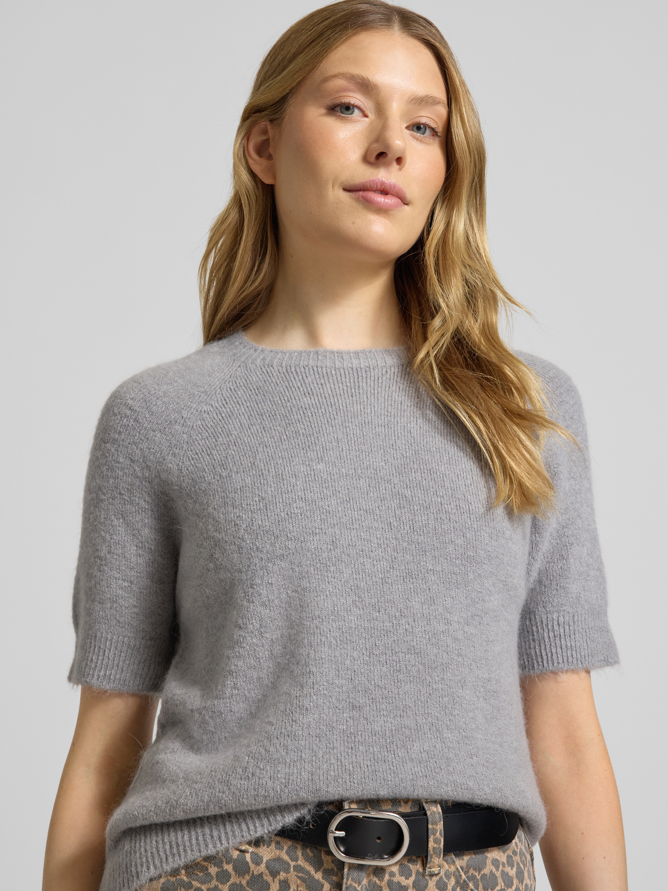 Rich & RoyalGebreid shirt met ronde hals en 1/2-mouwen in middengrijs