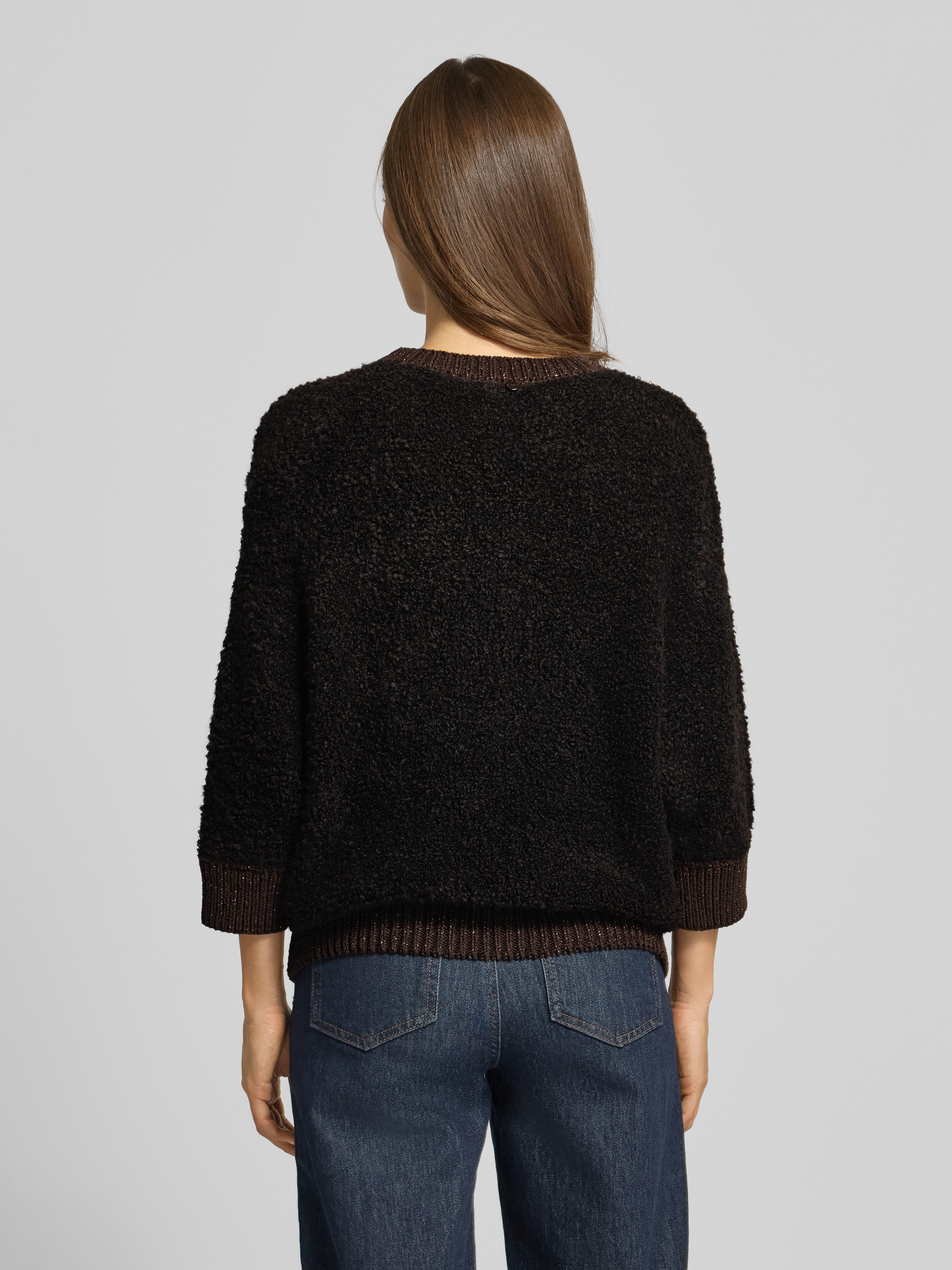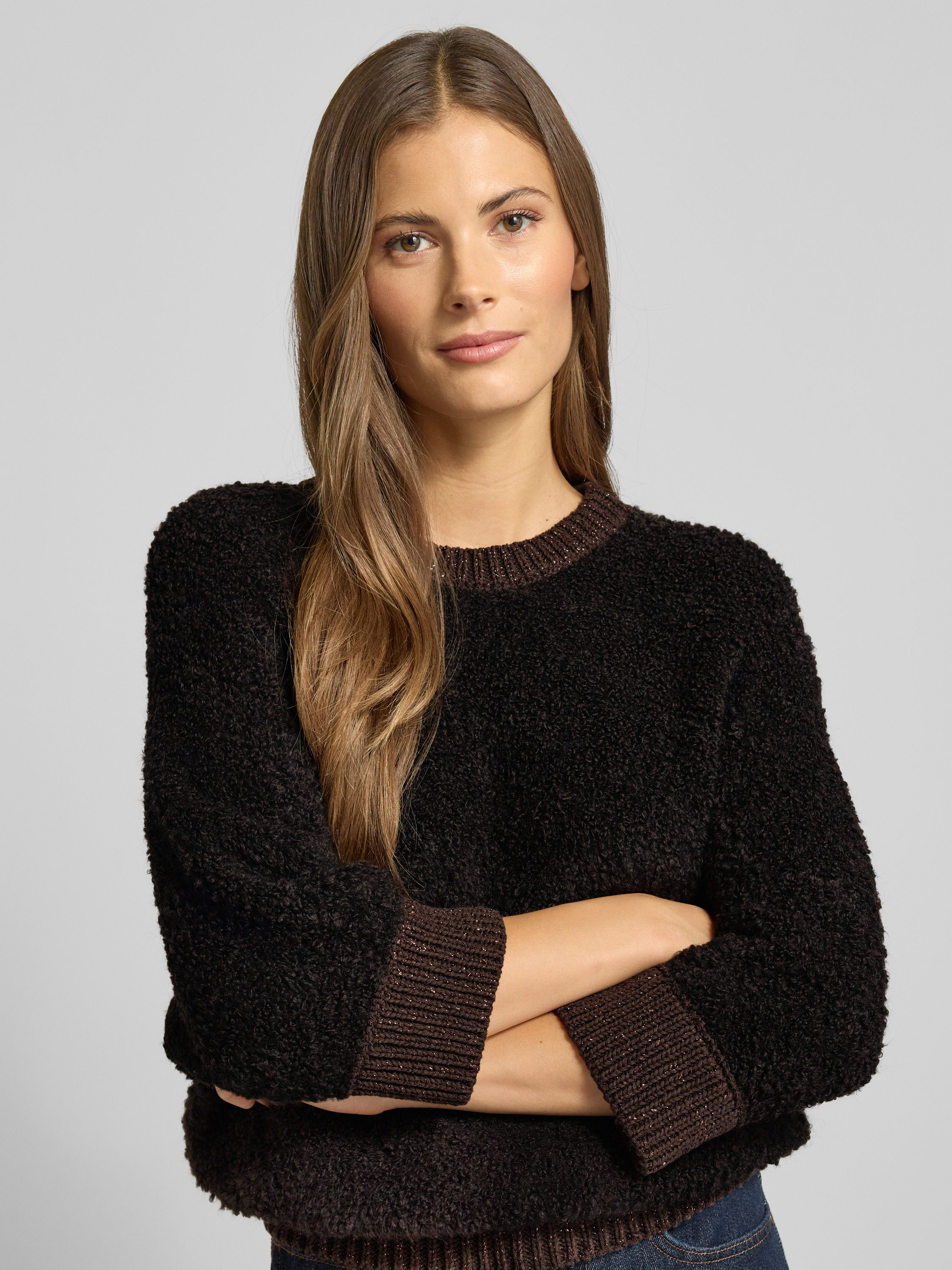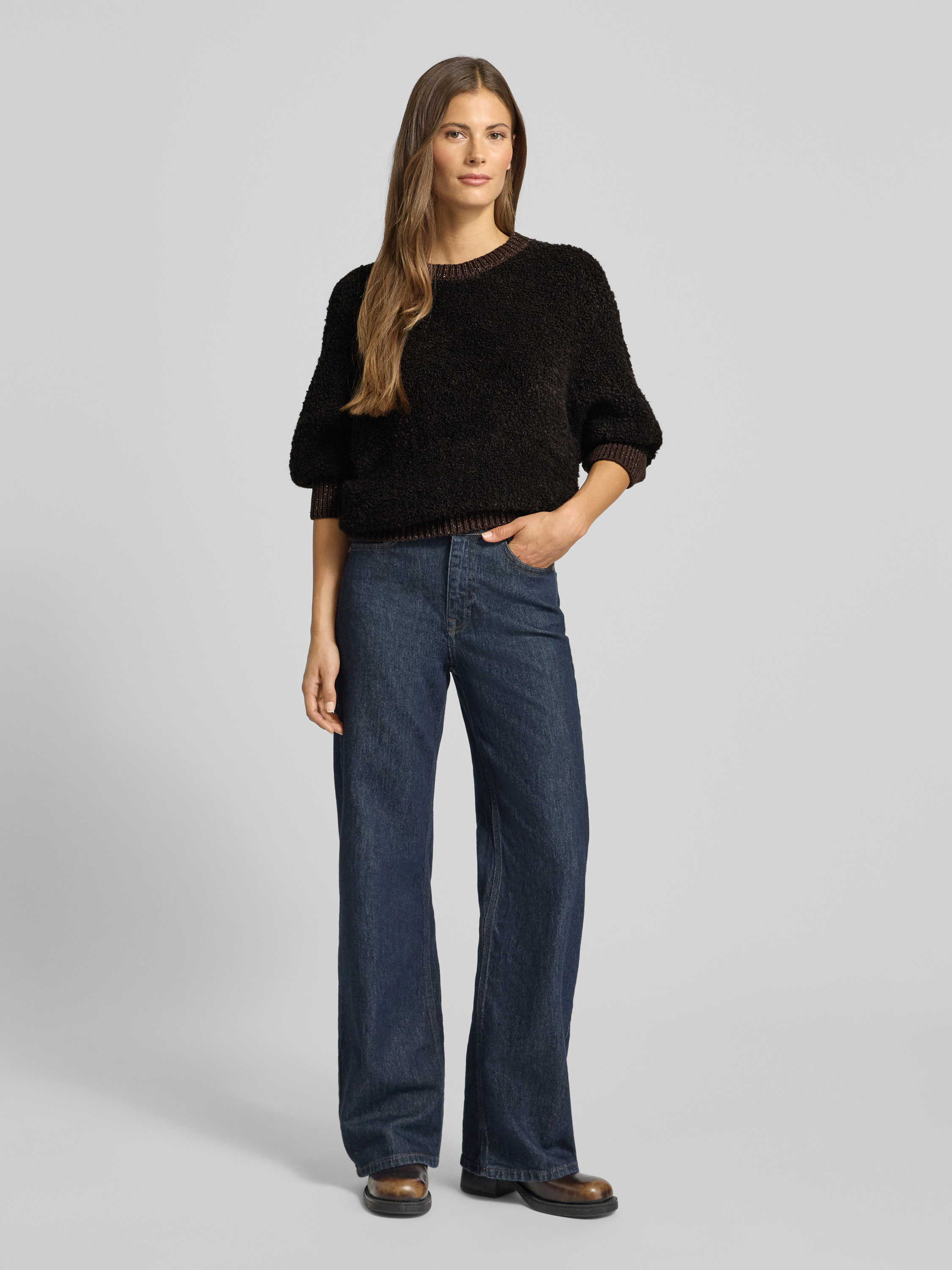 Rich & RoyalGebreide pullover met ribboorden in donkerbruin