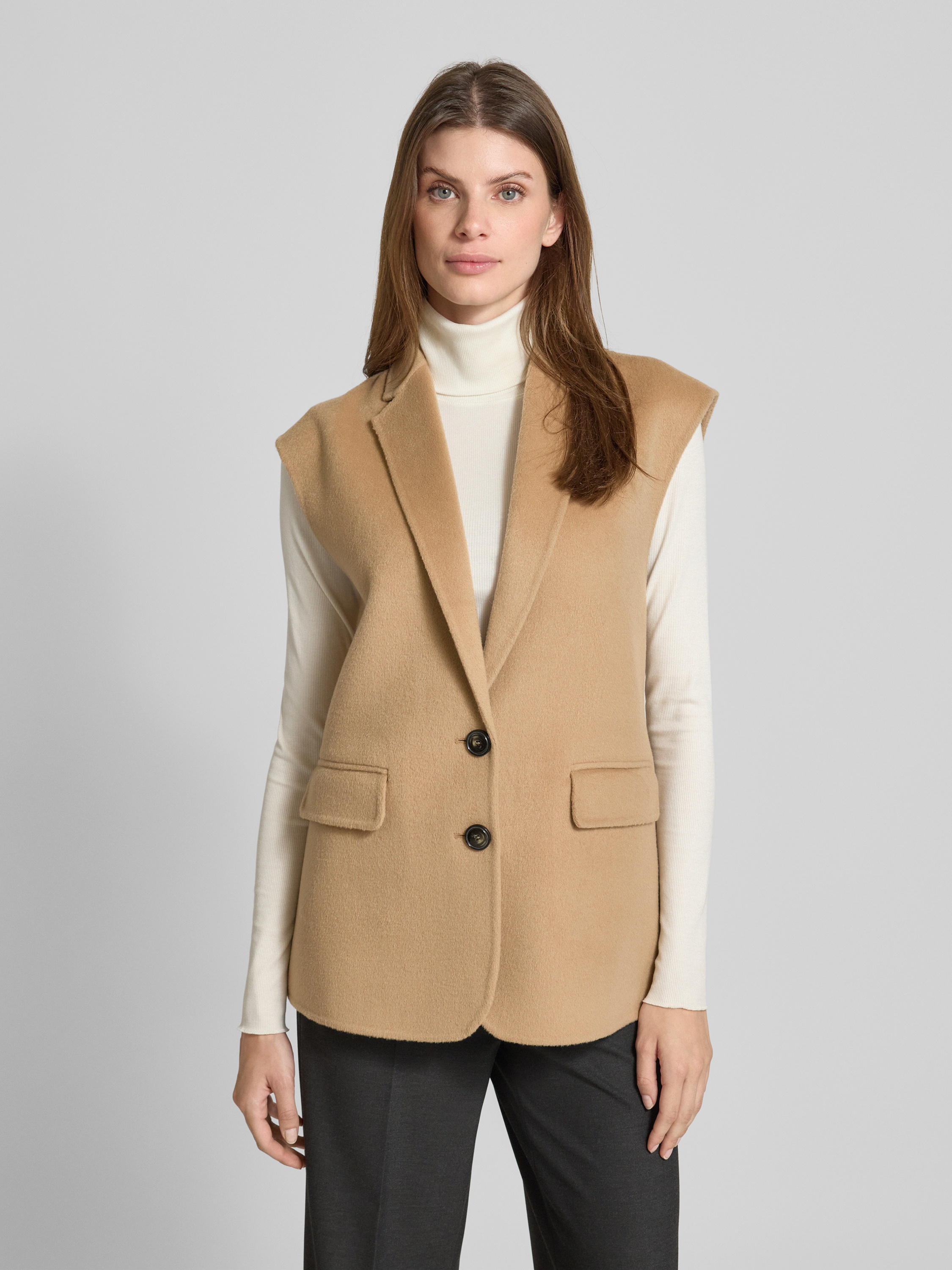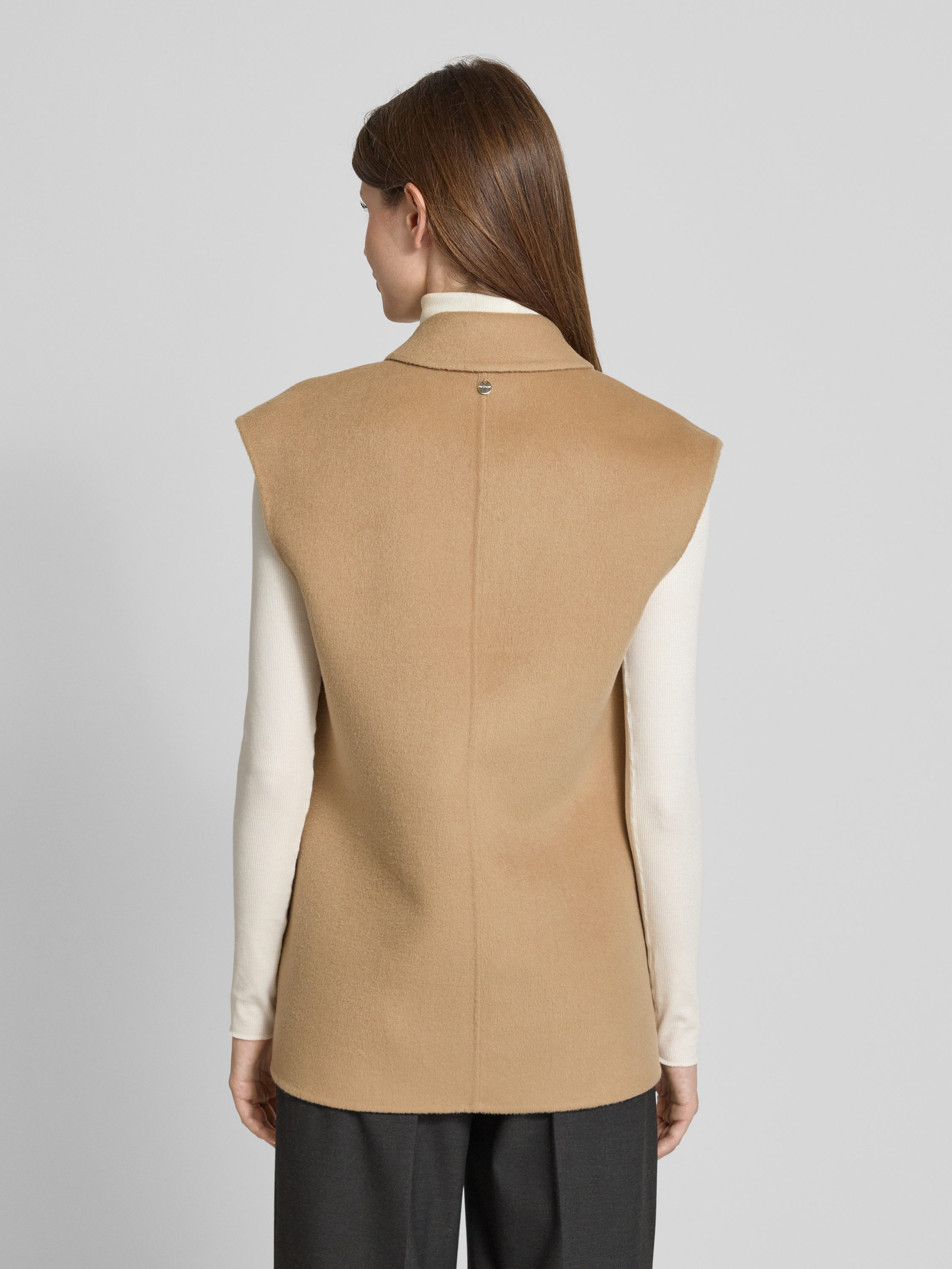 Gilet van wolmix met reverskraag in camel