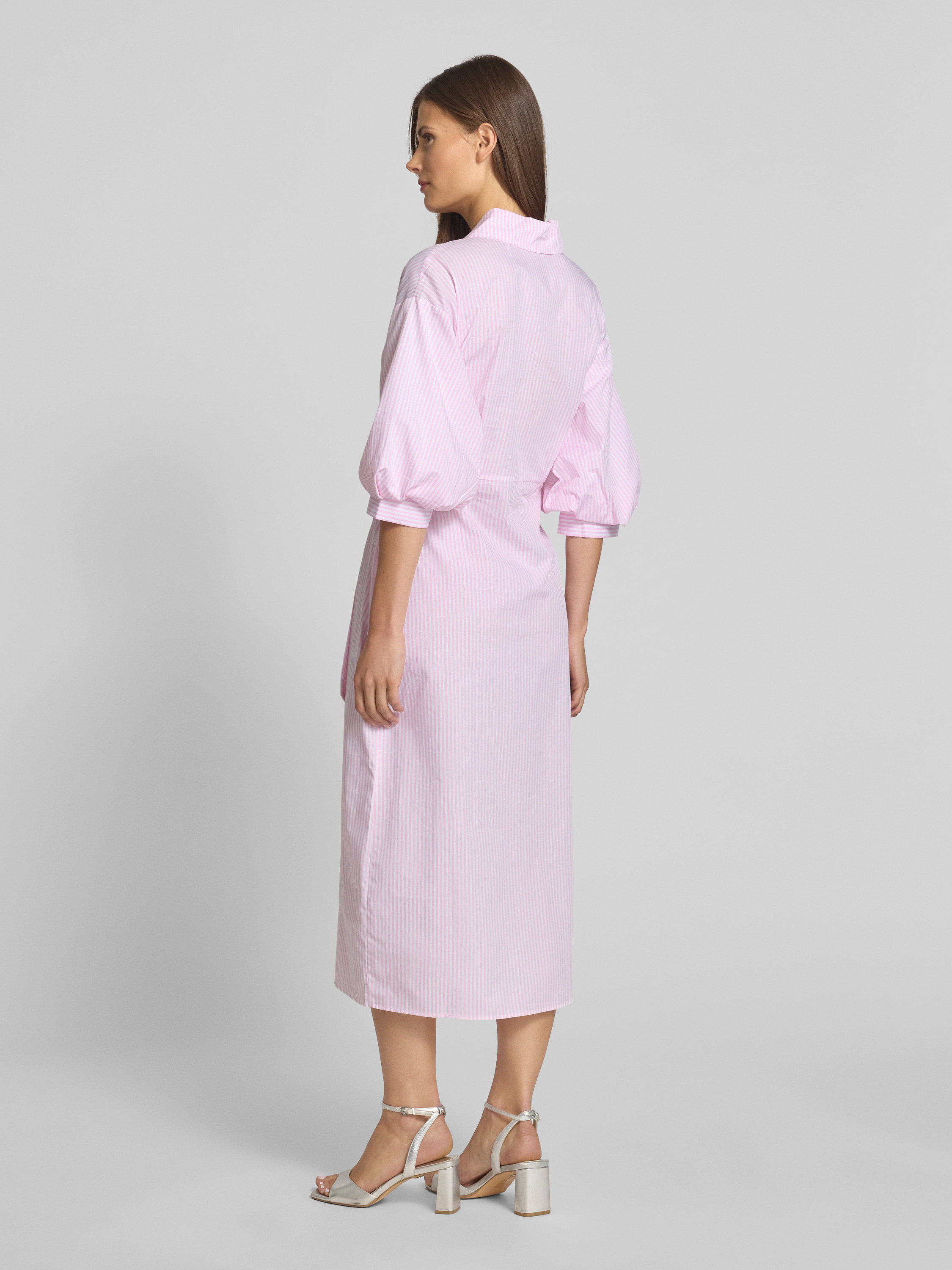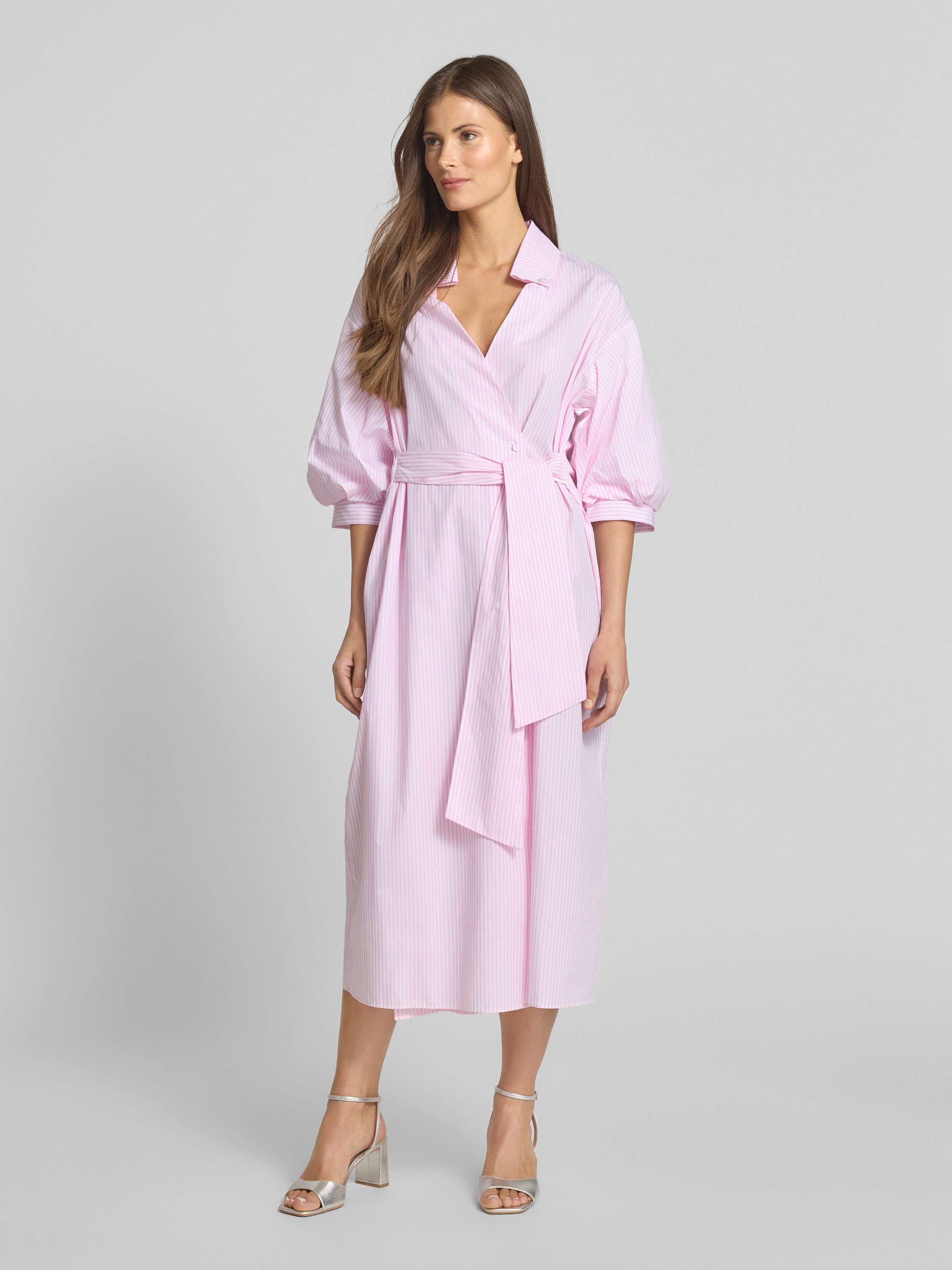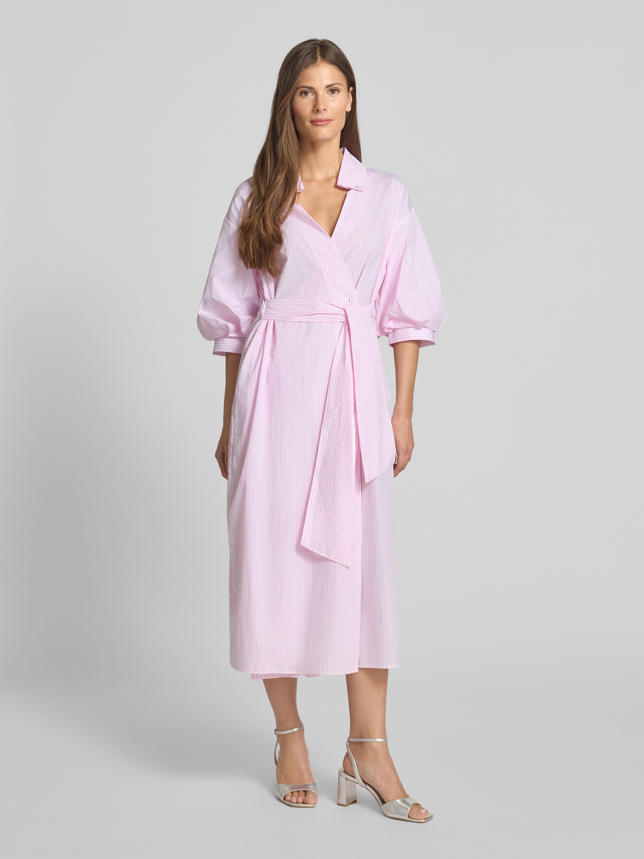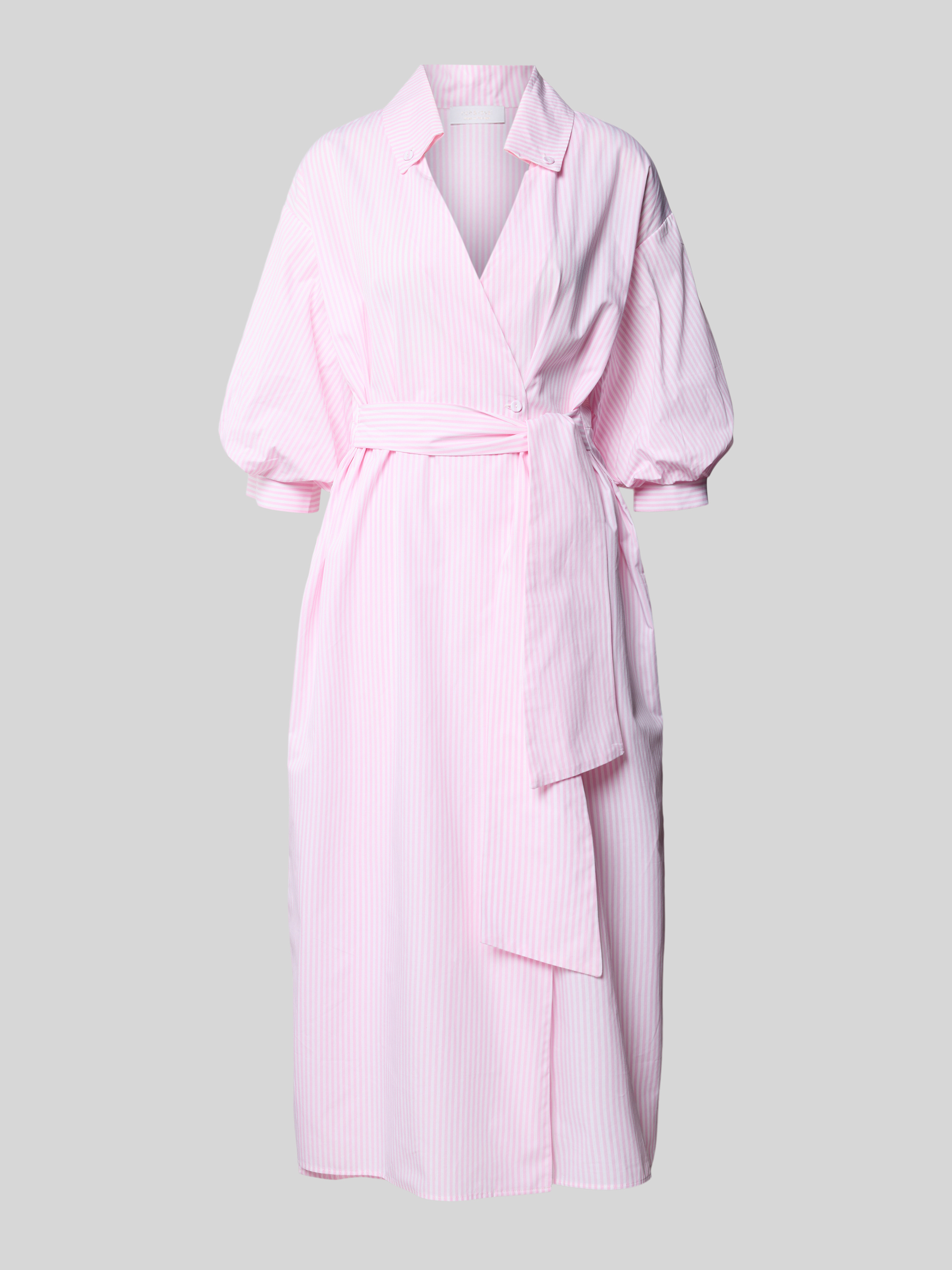 Overhemdjurk met platte kraag en strikceintuur in felroze