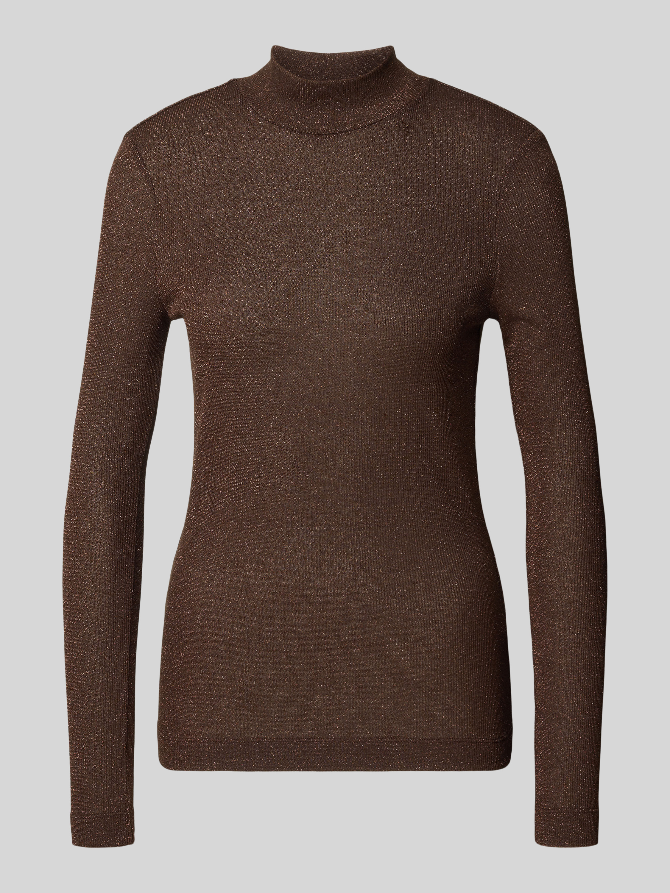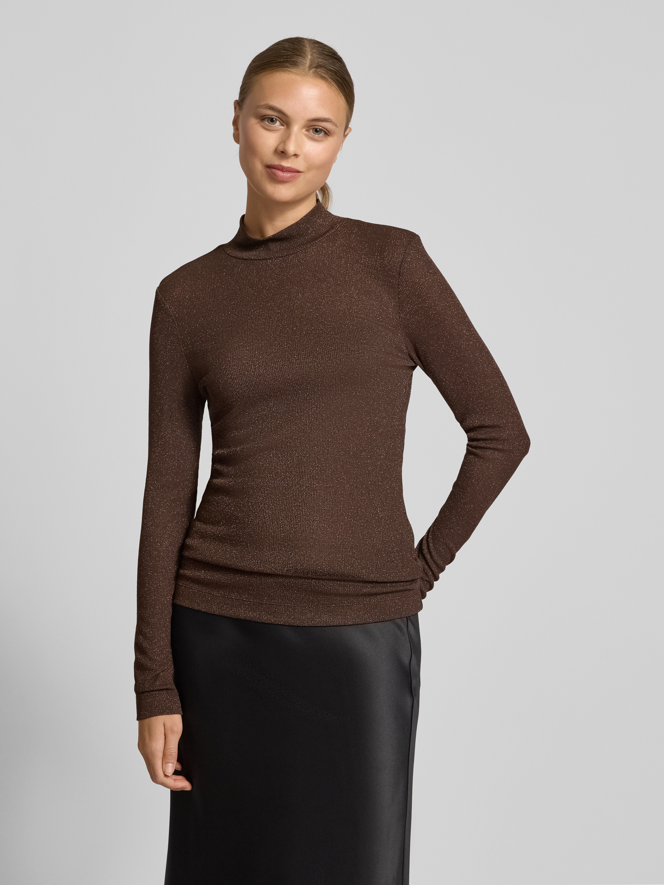 Rich & RoyalShirt met lange mouwen van viscosemix met opstaande kraag in donkerbruin