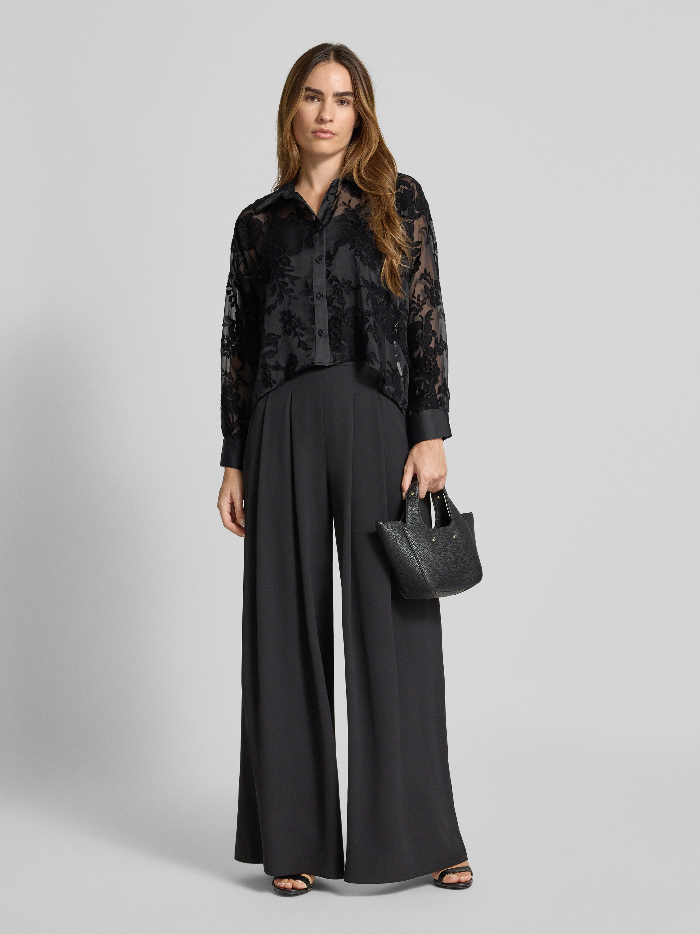 Overhemdblouse in semi-transparante look in zwart