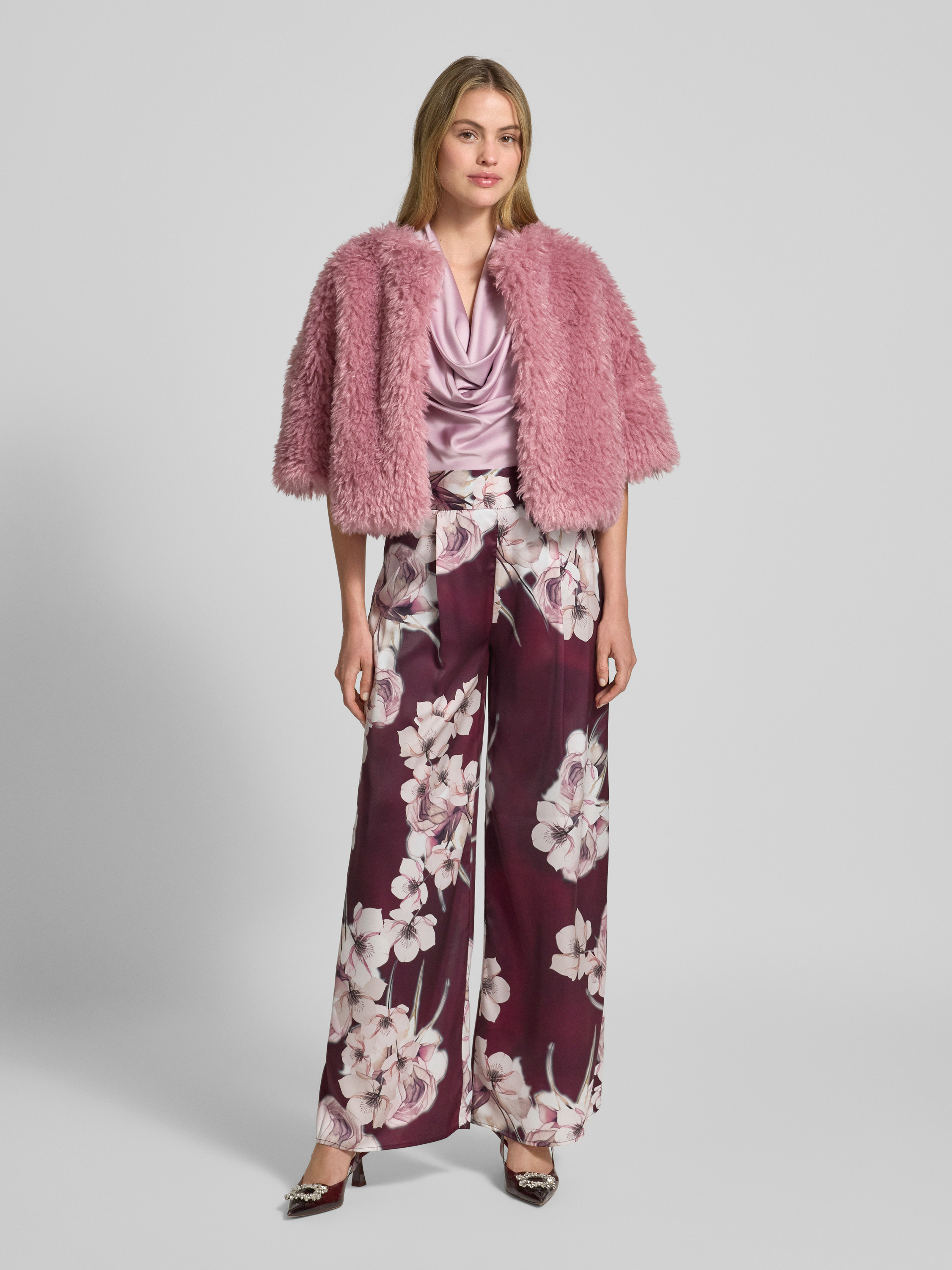 Regular fit blouse met watervalhals in oudroze