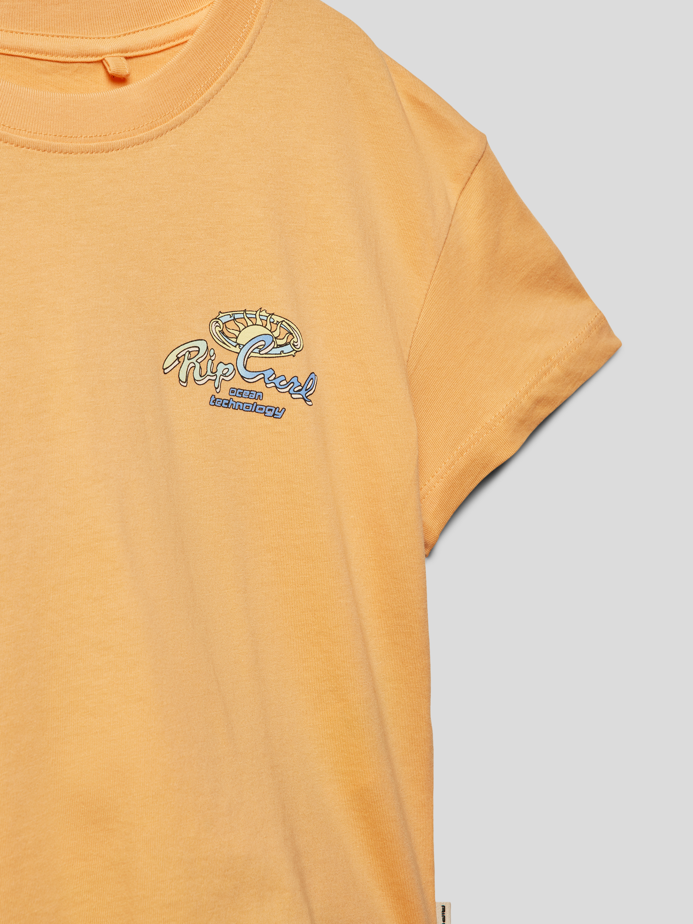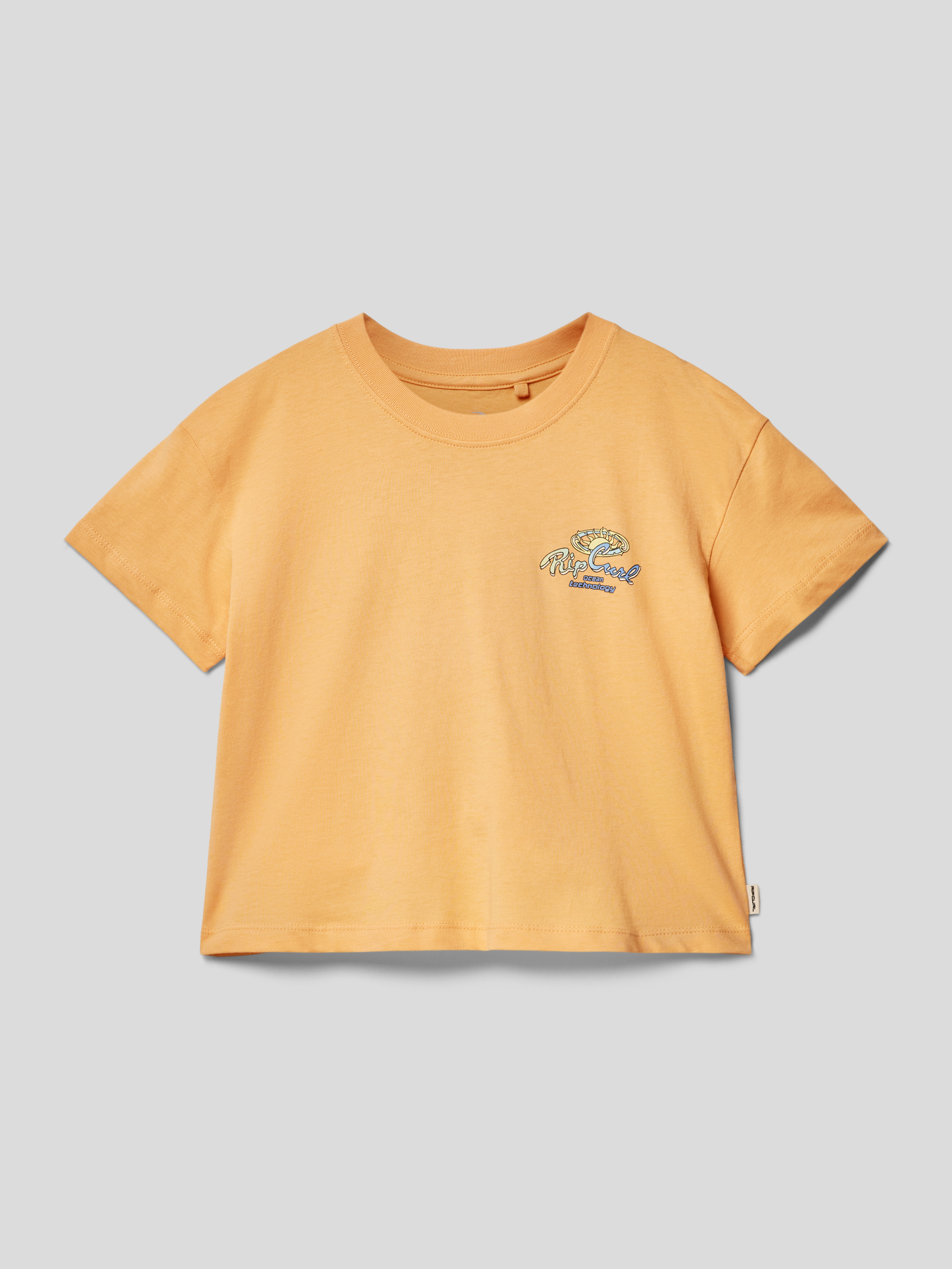 Kort T-shirt met labelprint aan de achterkant in abrikoos