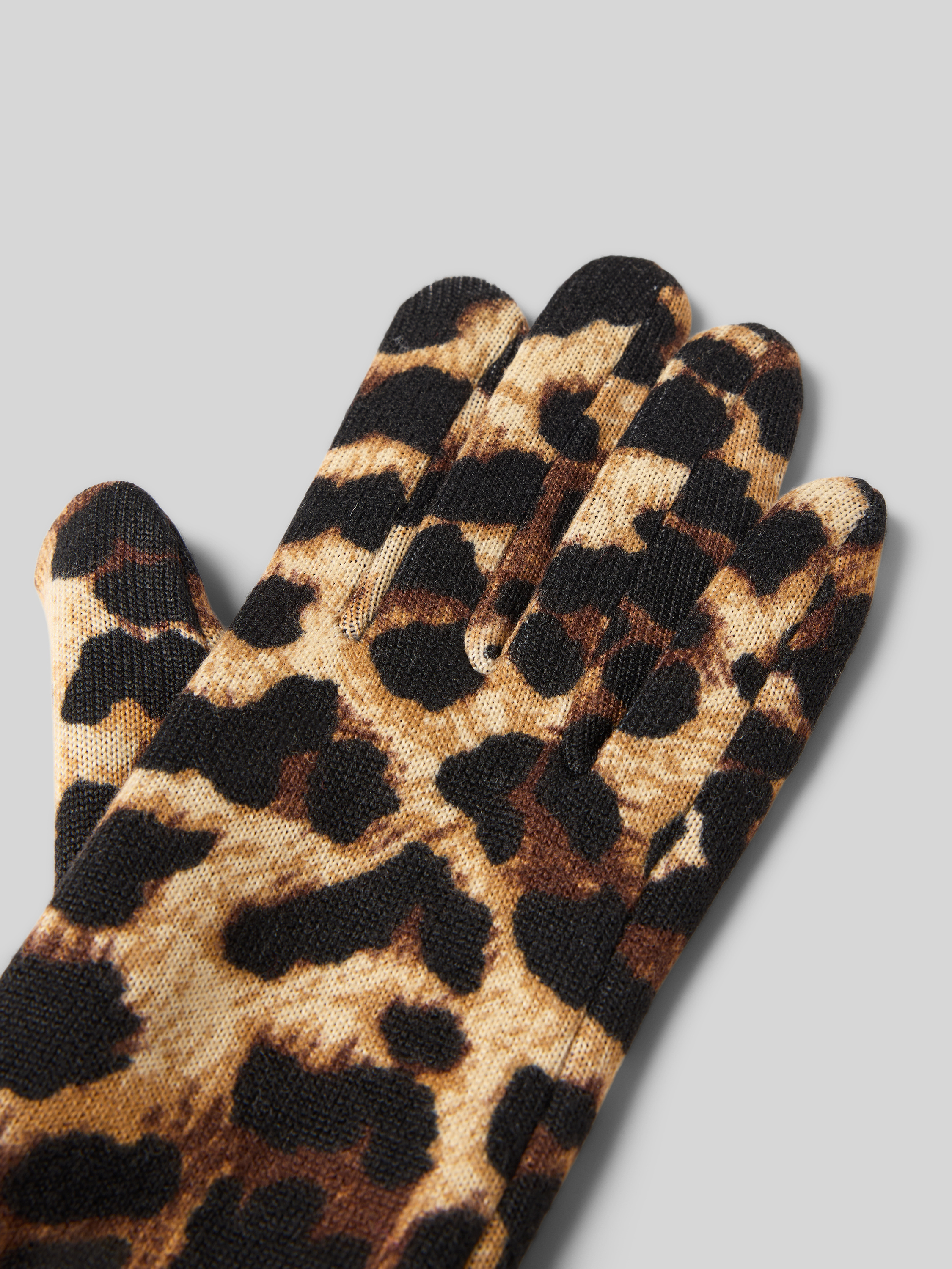 RoecklHandschoenen met all-over dierenprint in middenbruin