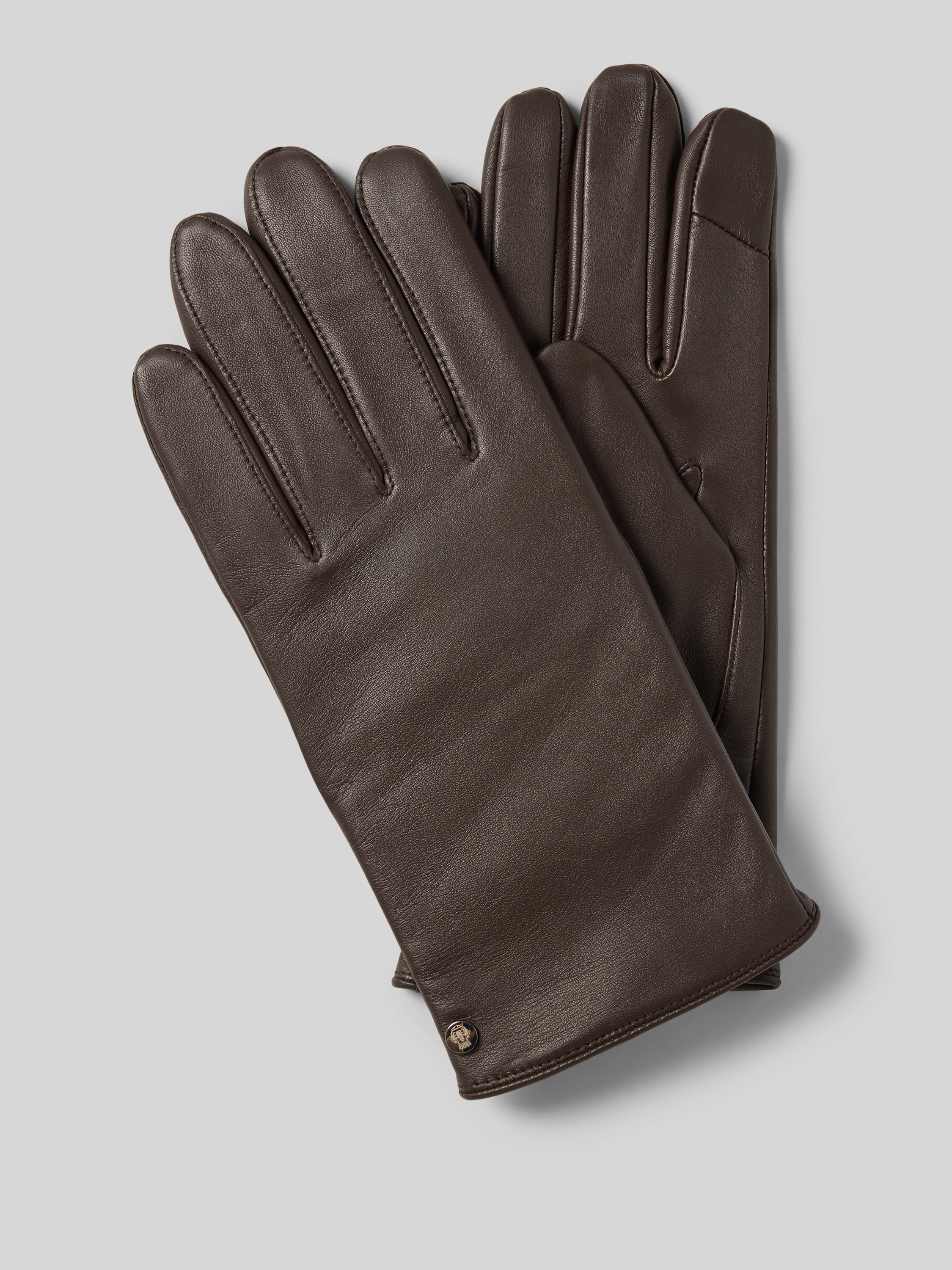 RoecklVingerhandschoenen met labelapplicatie, model 'Boston' in donkerbruin