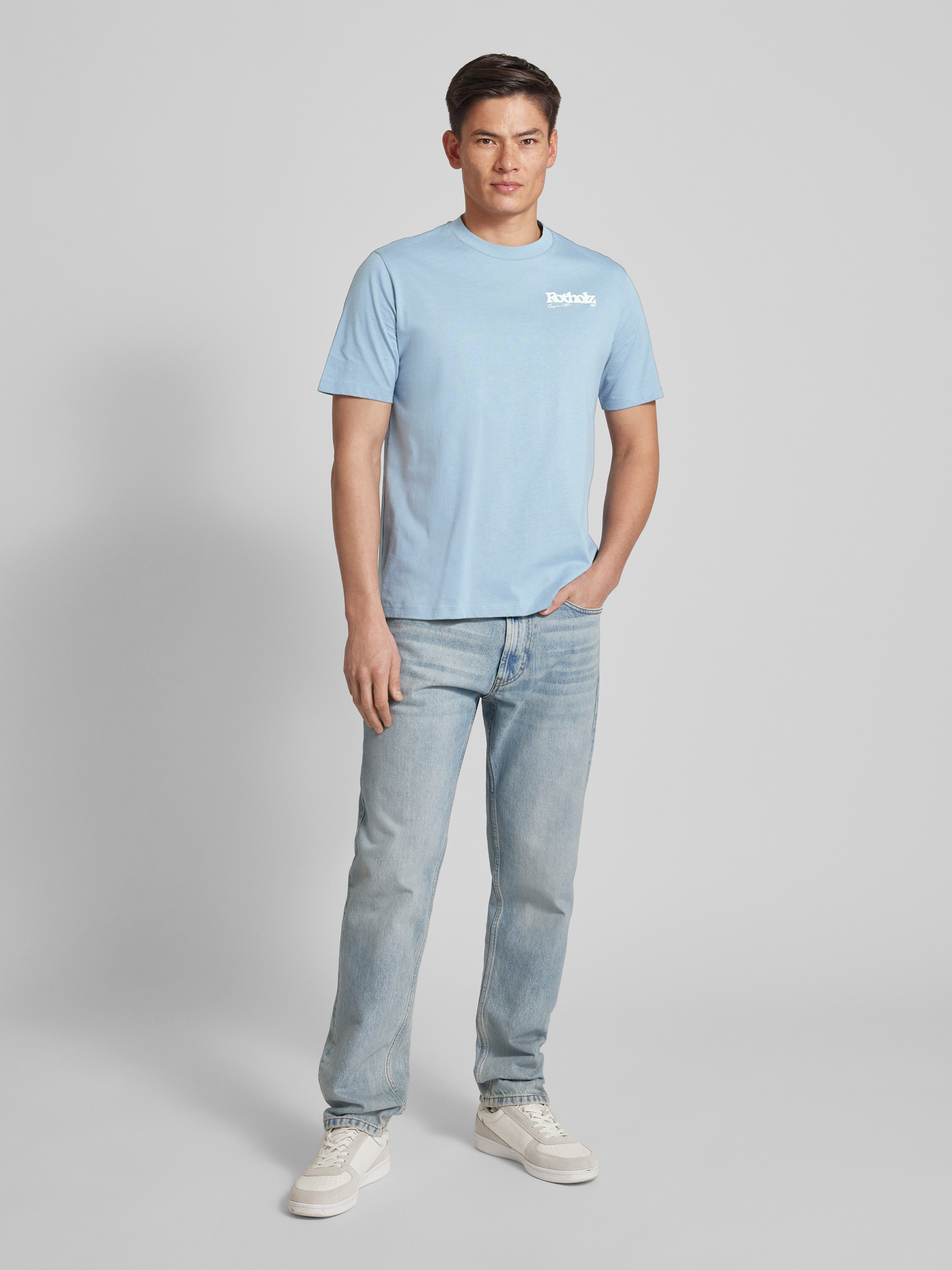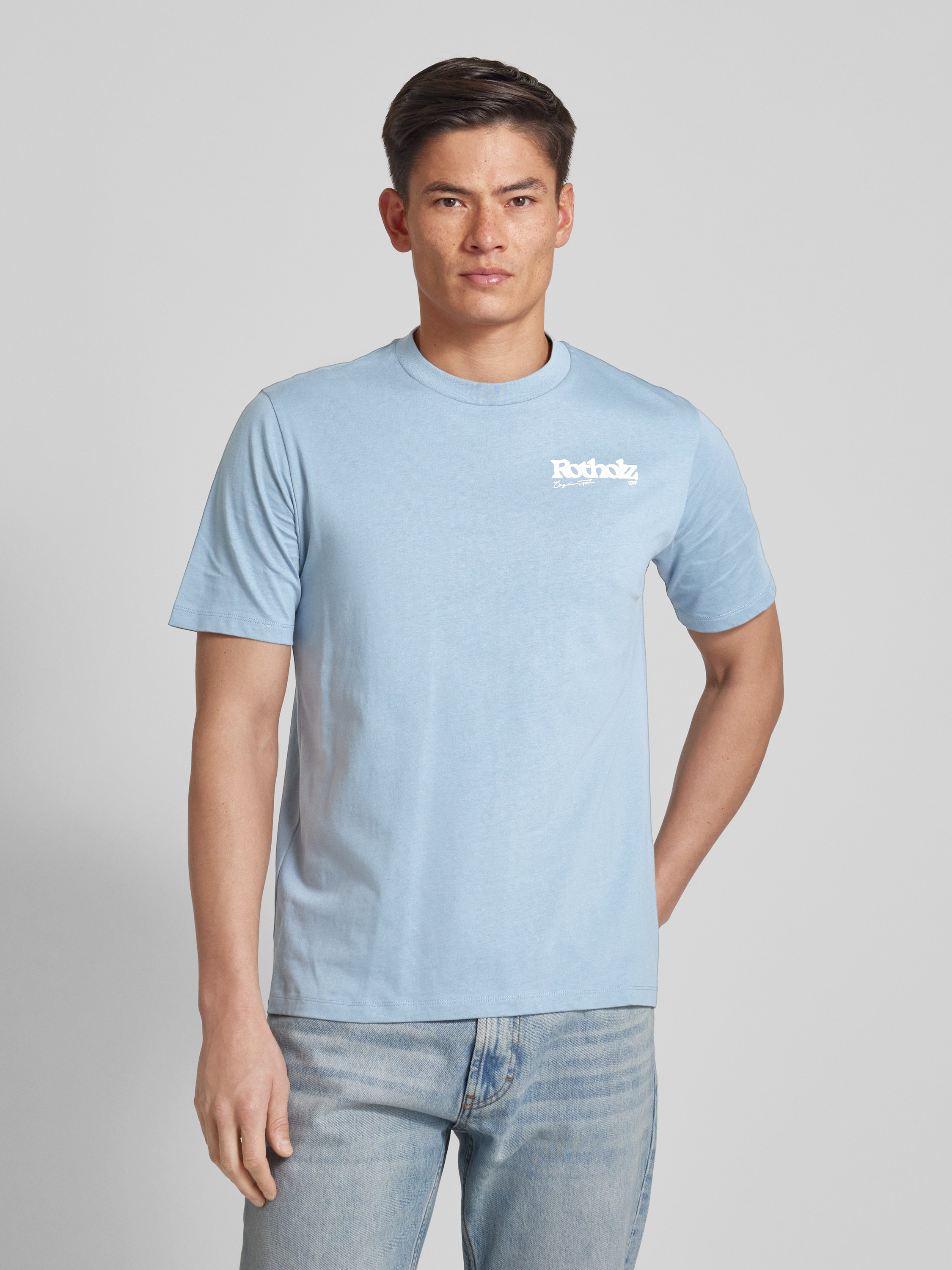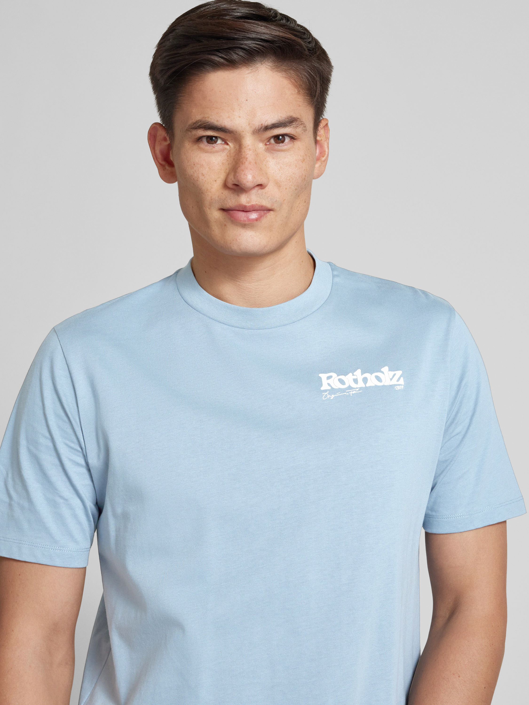 ROTHOLZT-shirt met labelprint, model 'Retro Logo' in lichtblauw