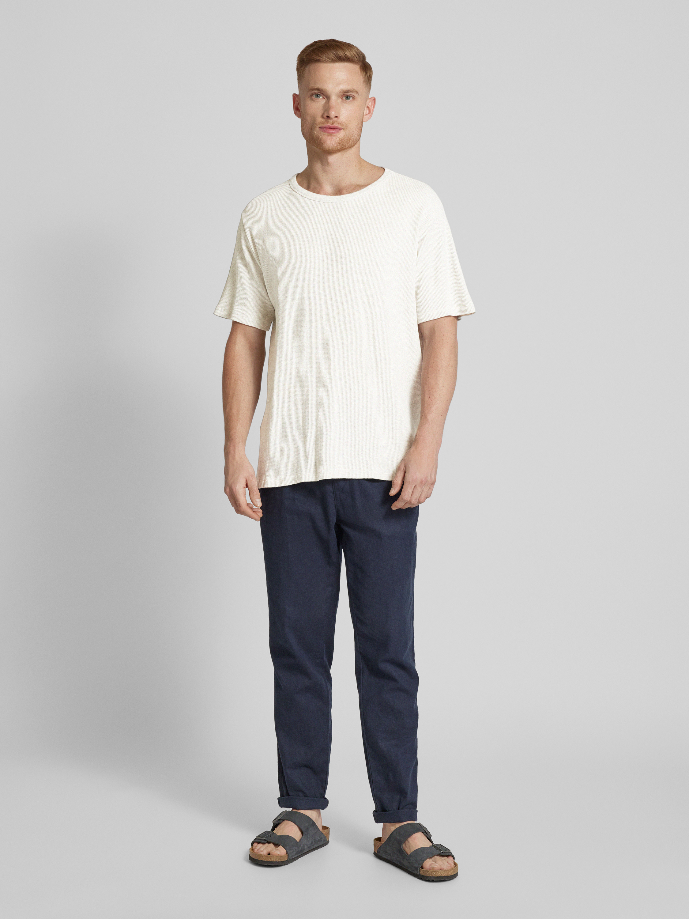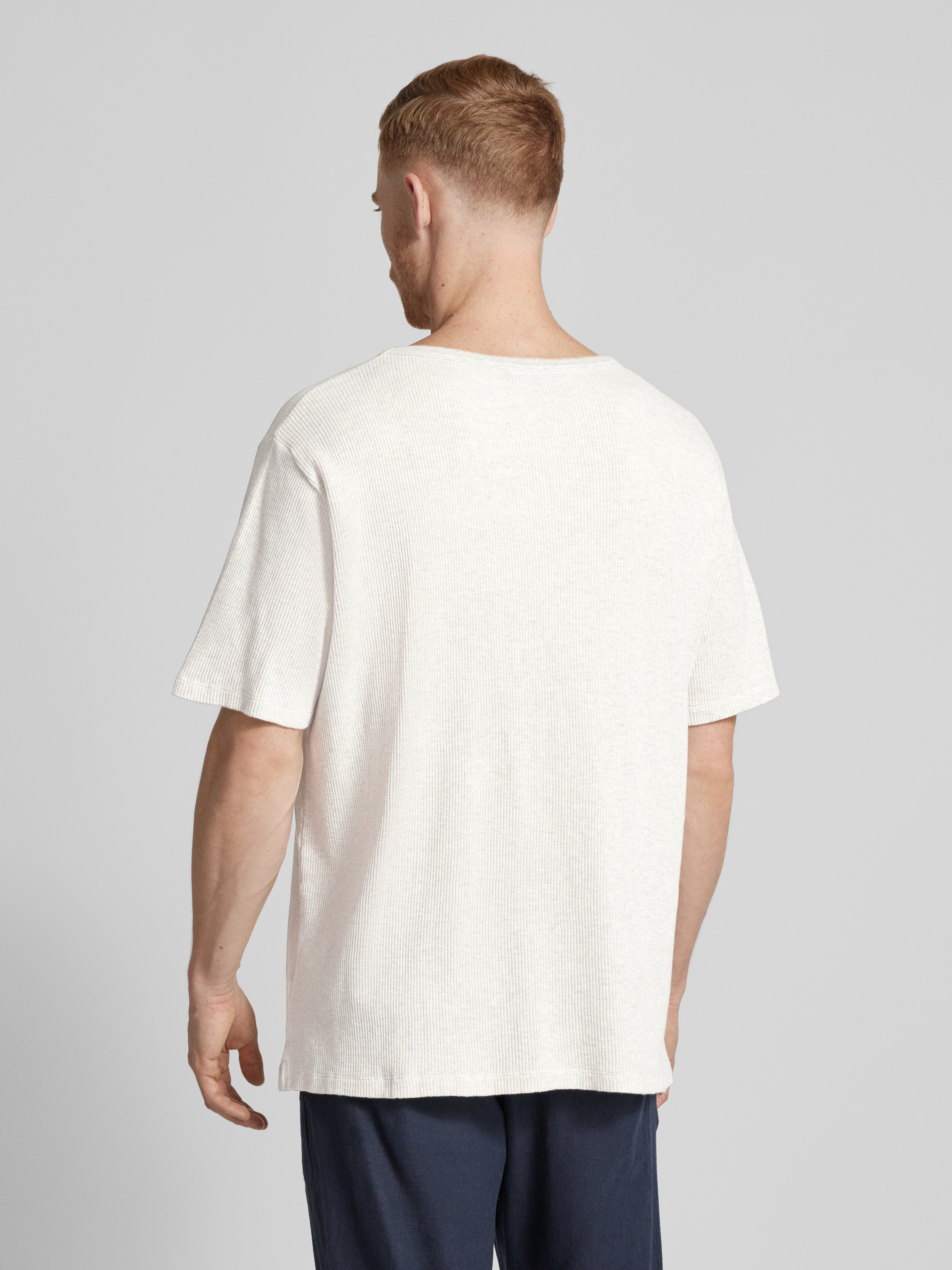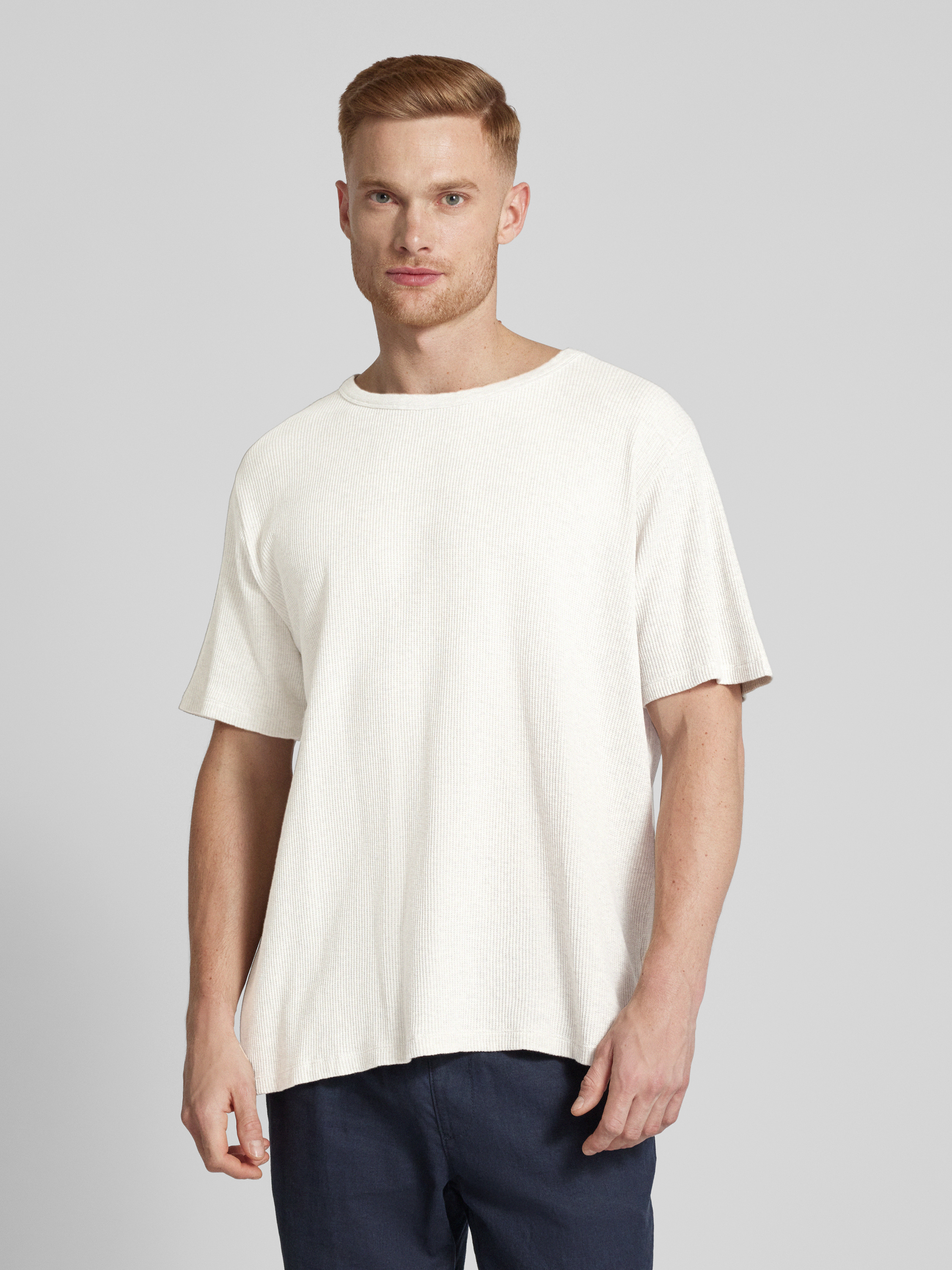 ROTHOLZT-shirt met structuurmotief, model 'Waffle' in lichtgrijs gemêleerd