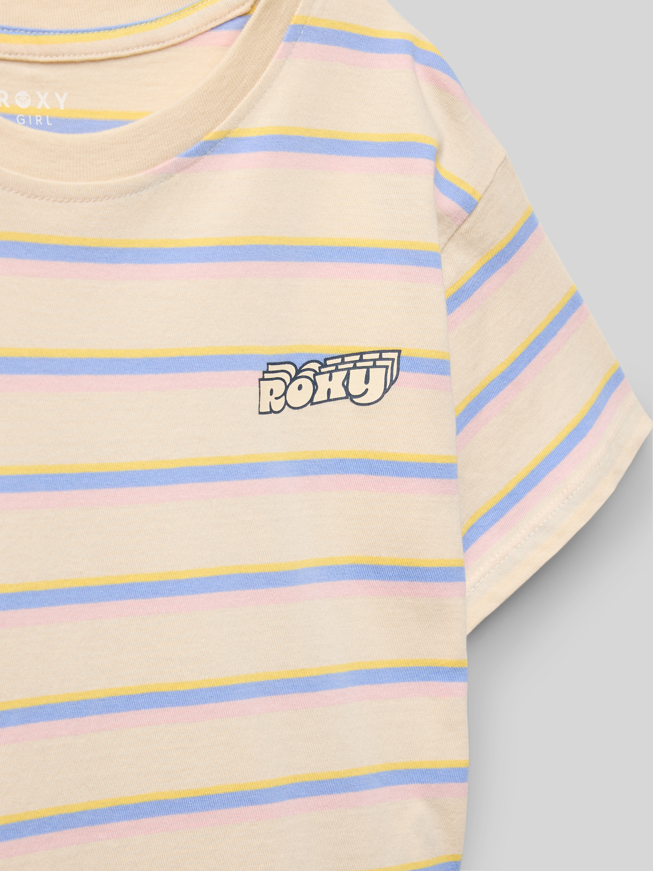 T-shirt met labelprint, model 'NEVER SAW BLUE LIKE THAT' in zand