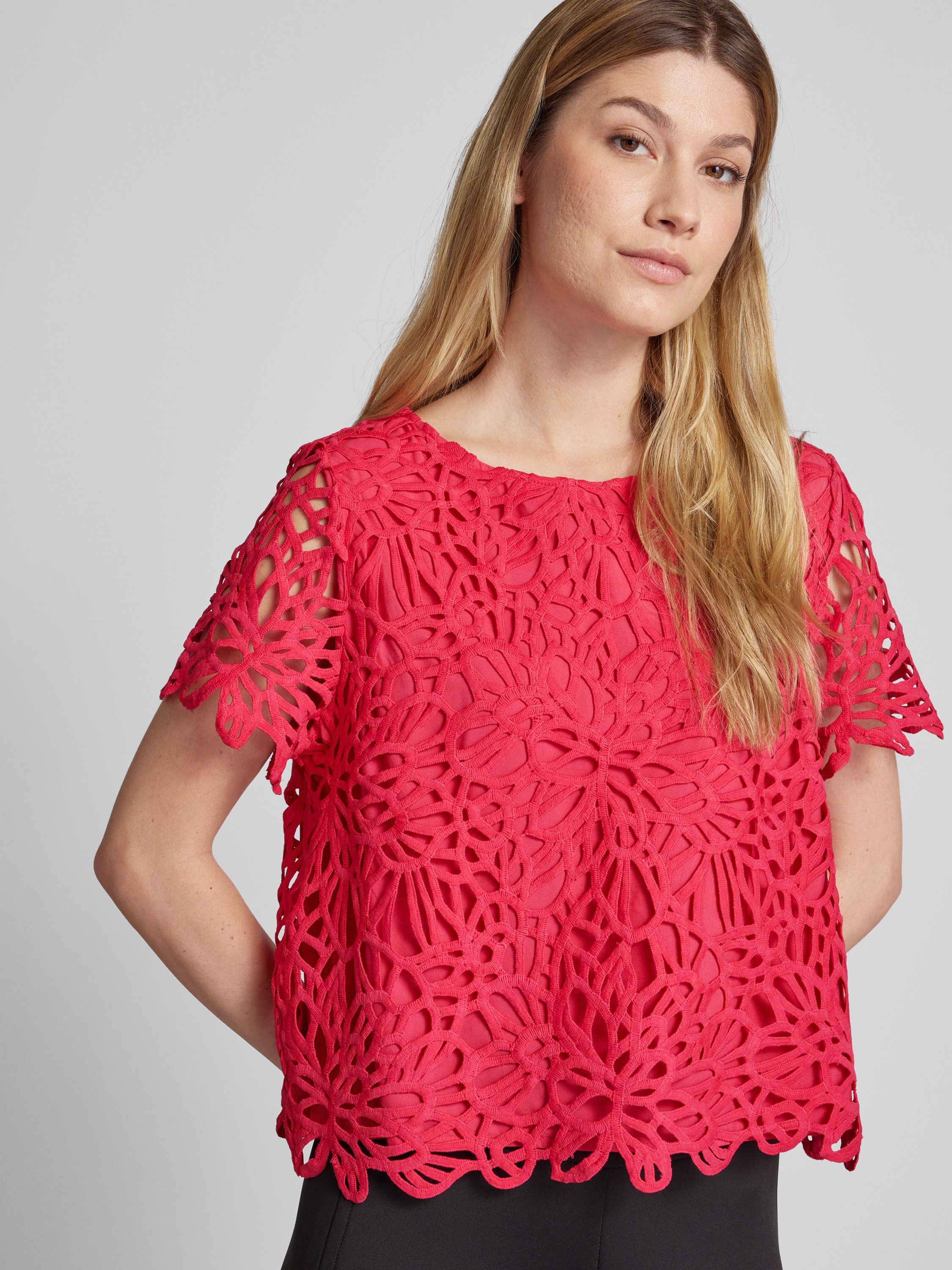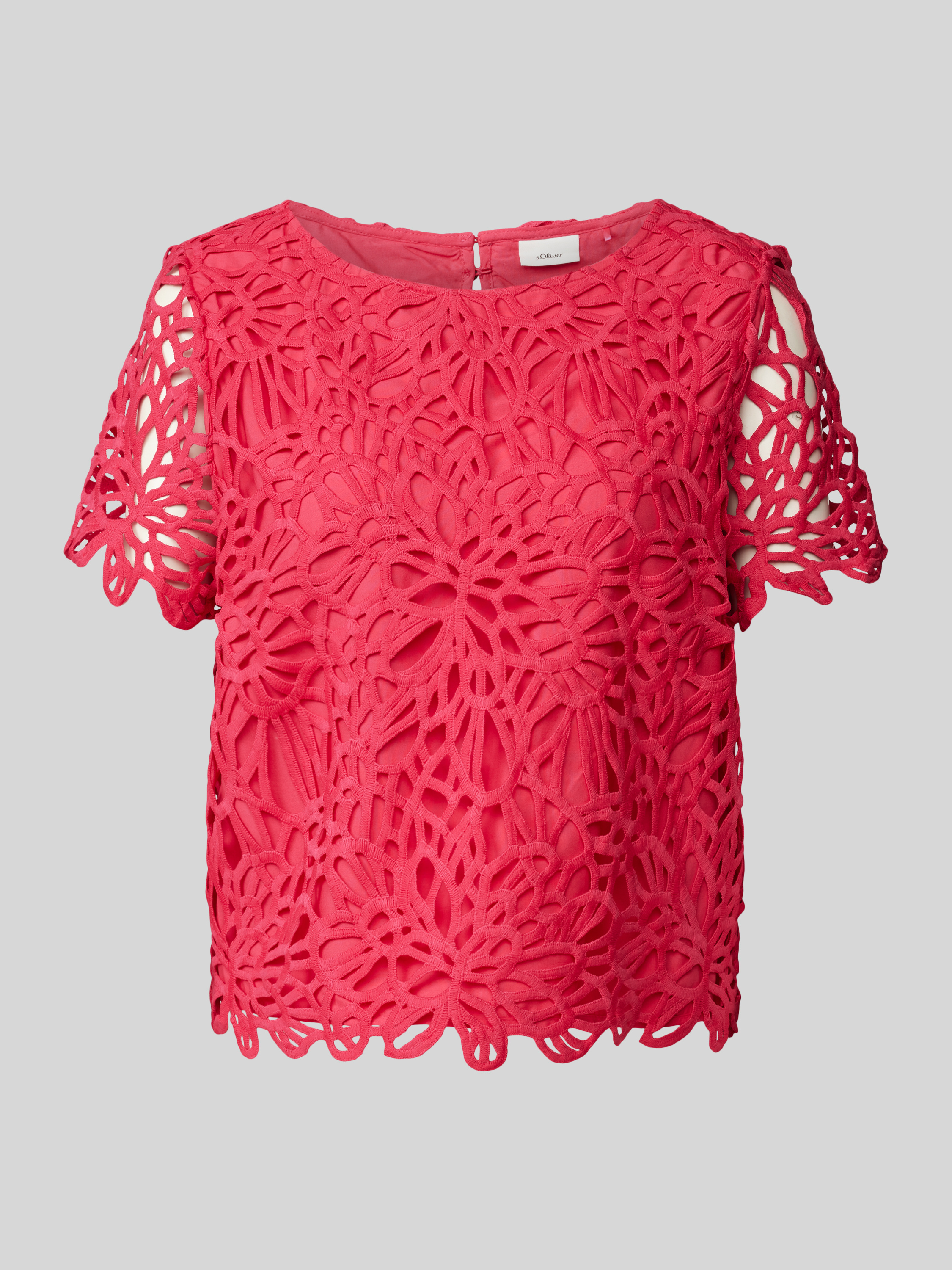 s.Oliver BLACK LABELBlouseshirt van viscose met broderie anglaise in felroze