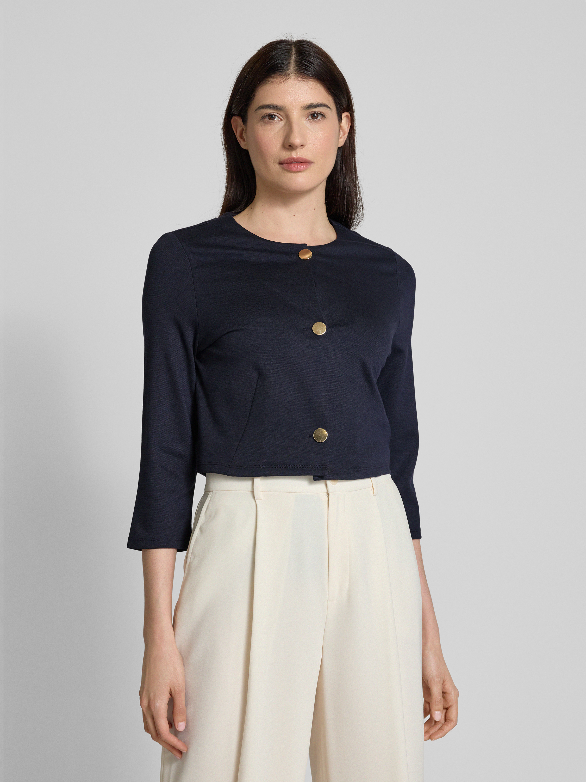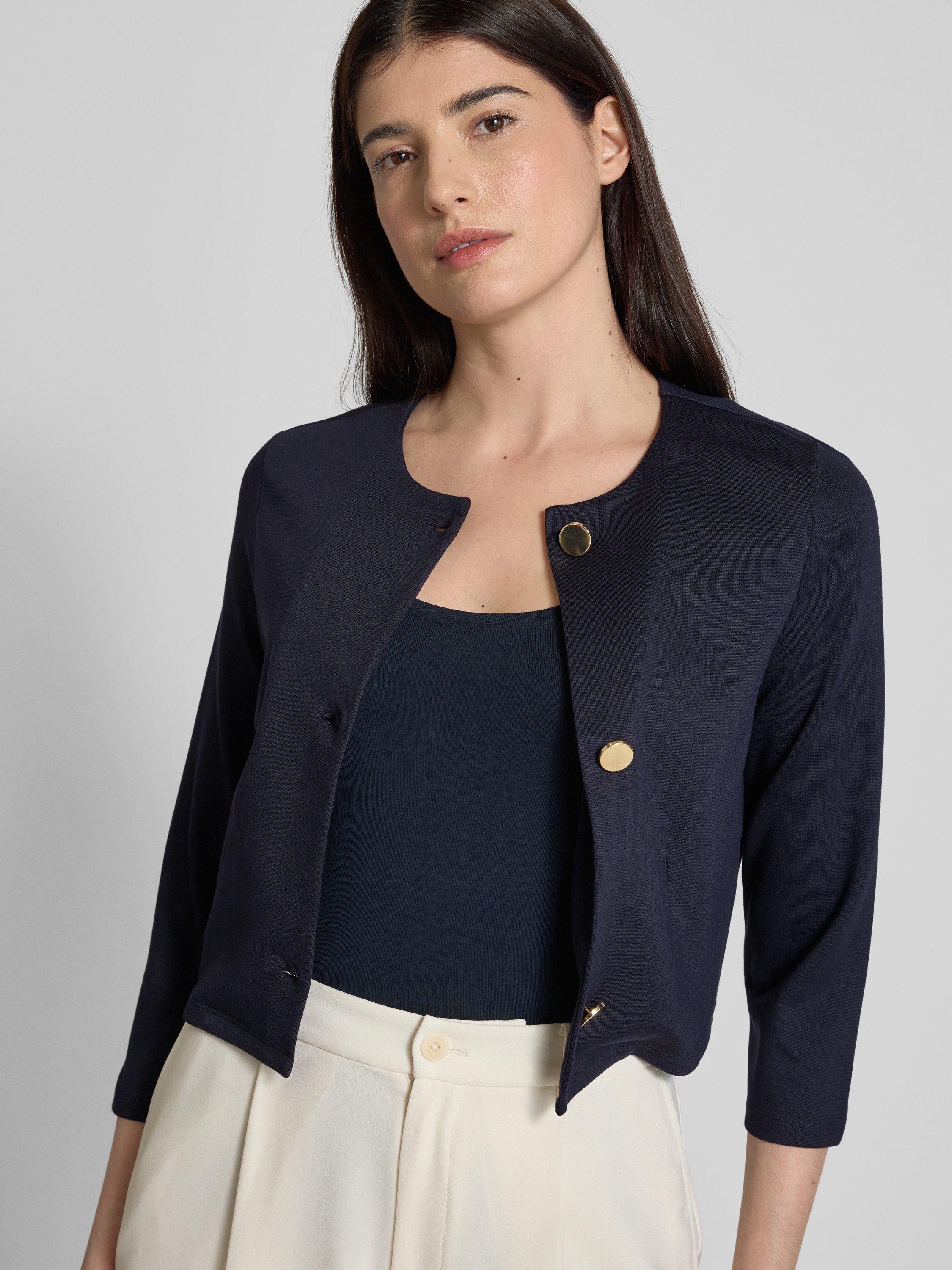 Boxy fit korte blazer in een viscoseriemix in marineblauw