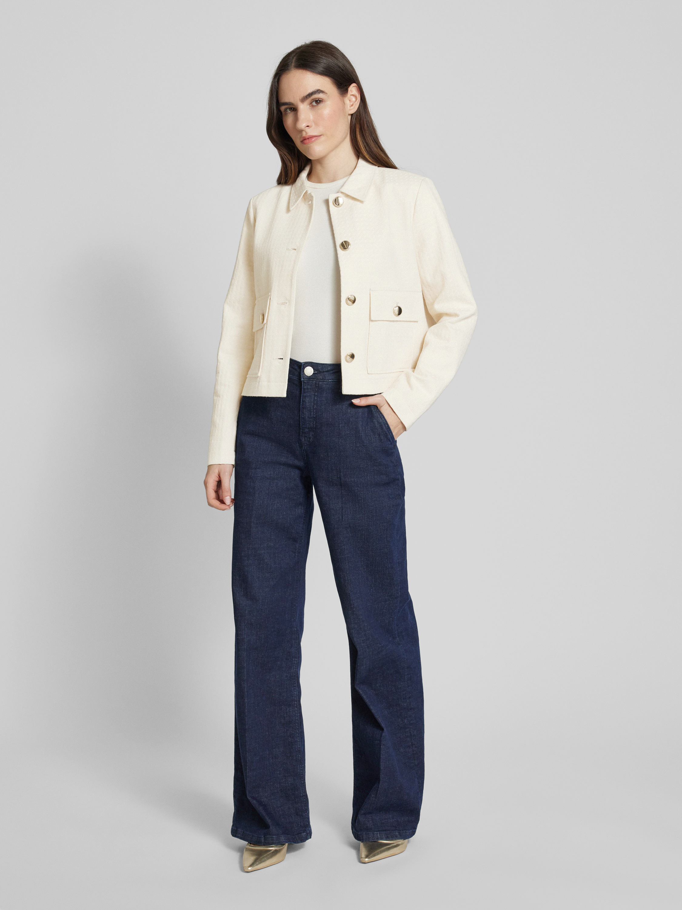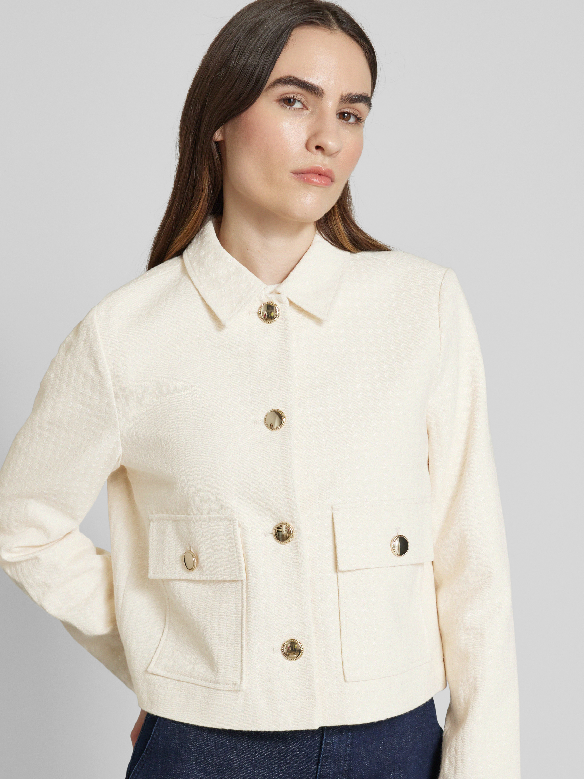s.Oliver BLACK LABELBoxy fit korte blazer van katoenmix met structuurmotief in offwhite