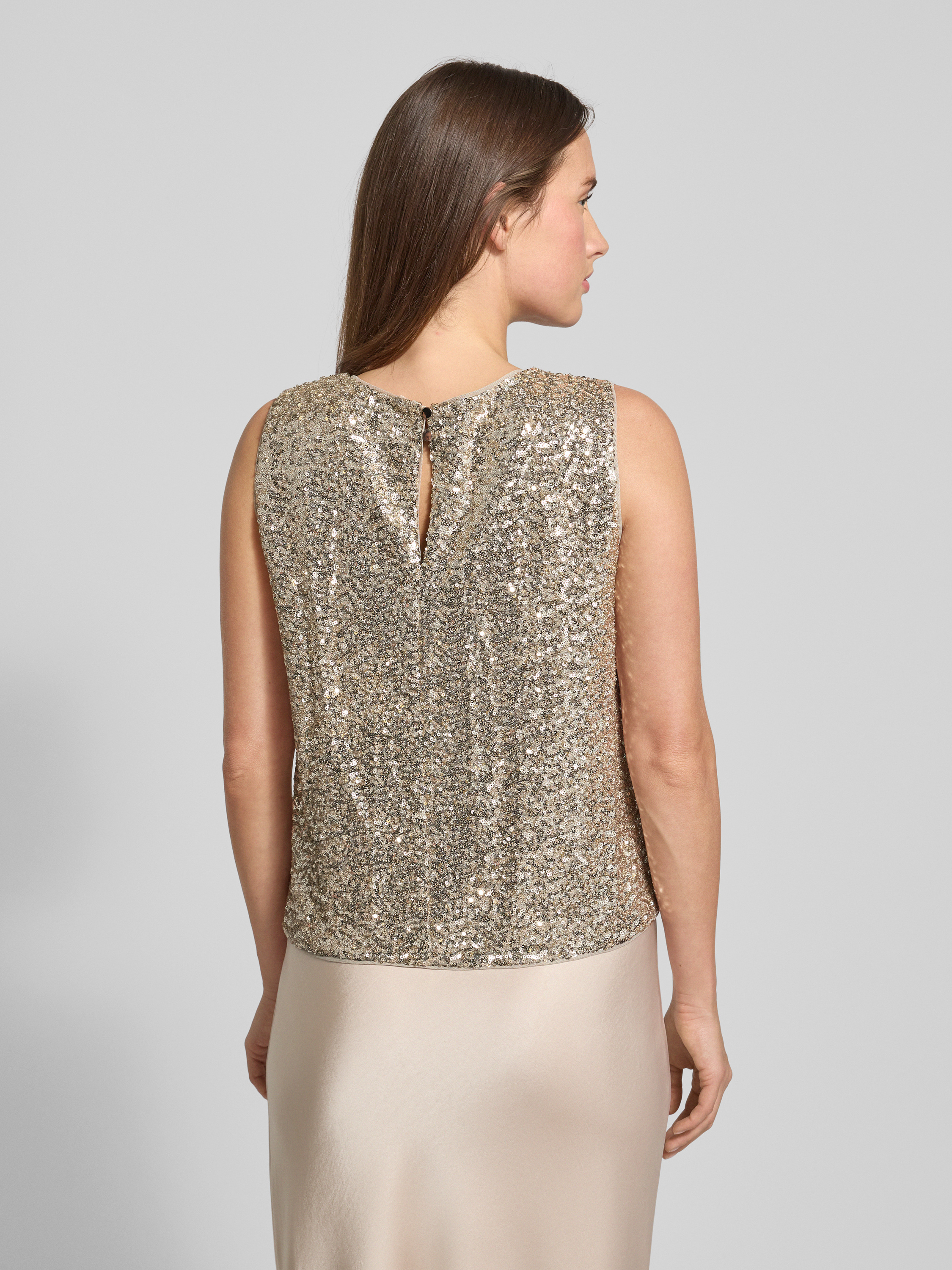 Comfort fit T-shirt van viscosemix zonder mouwen in goud gemêleerd