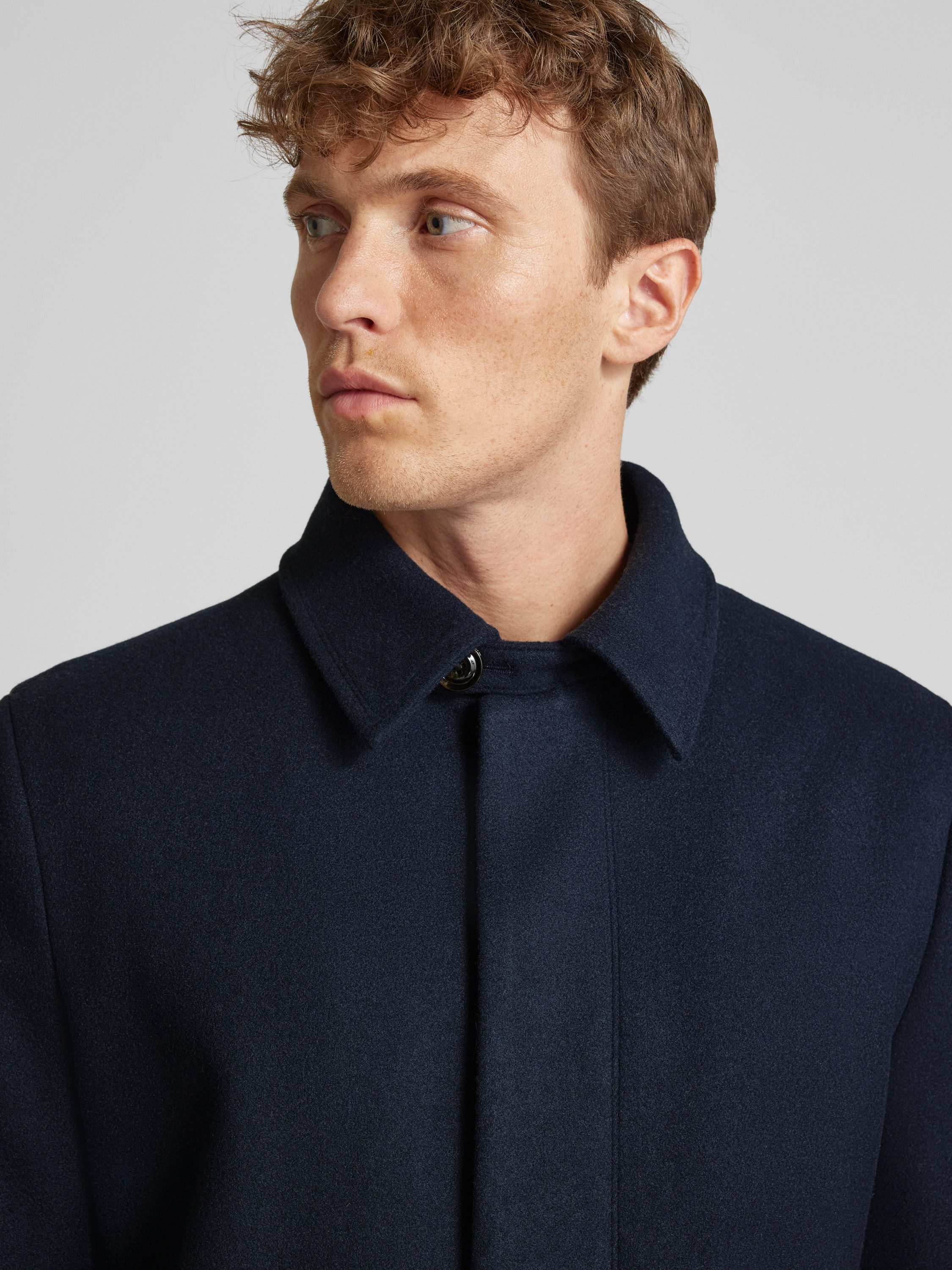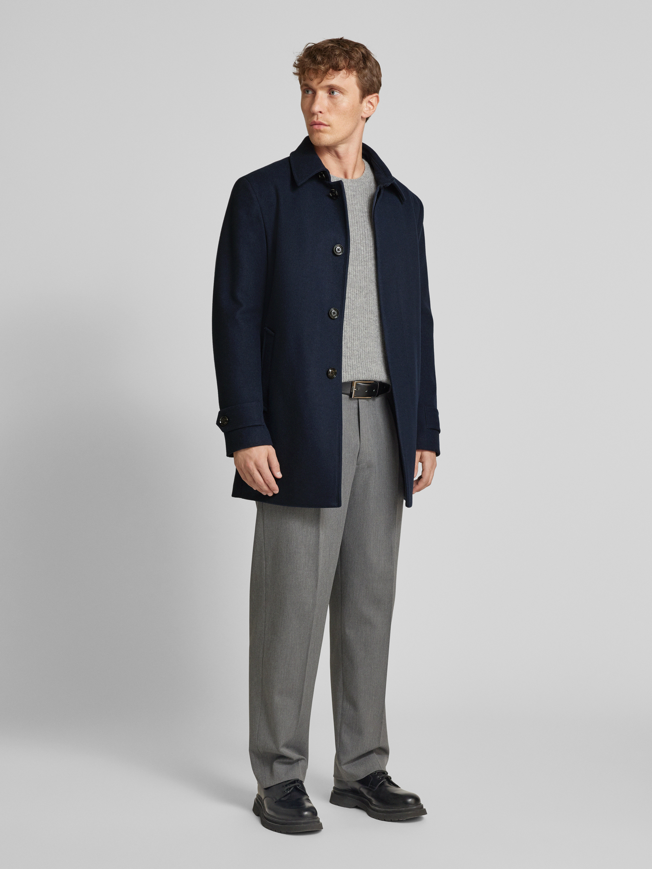 s.Oliver BLACK LABELRegular fit lange jas in wollen look met blinde knoopsluiting in marineblauw