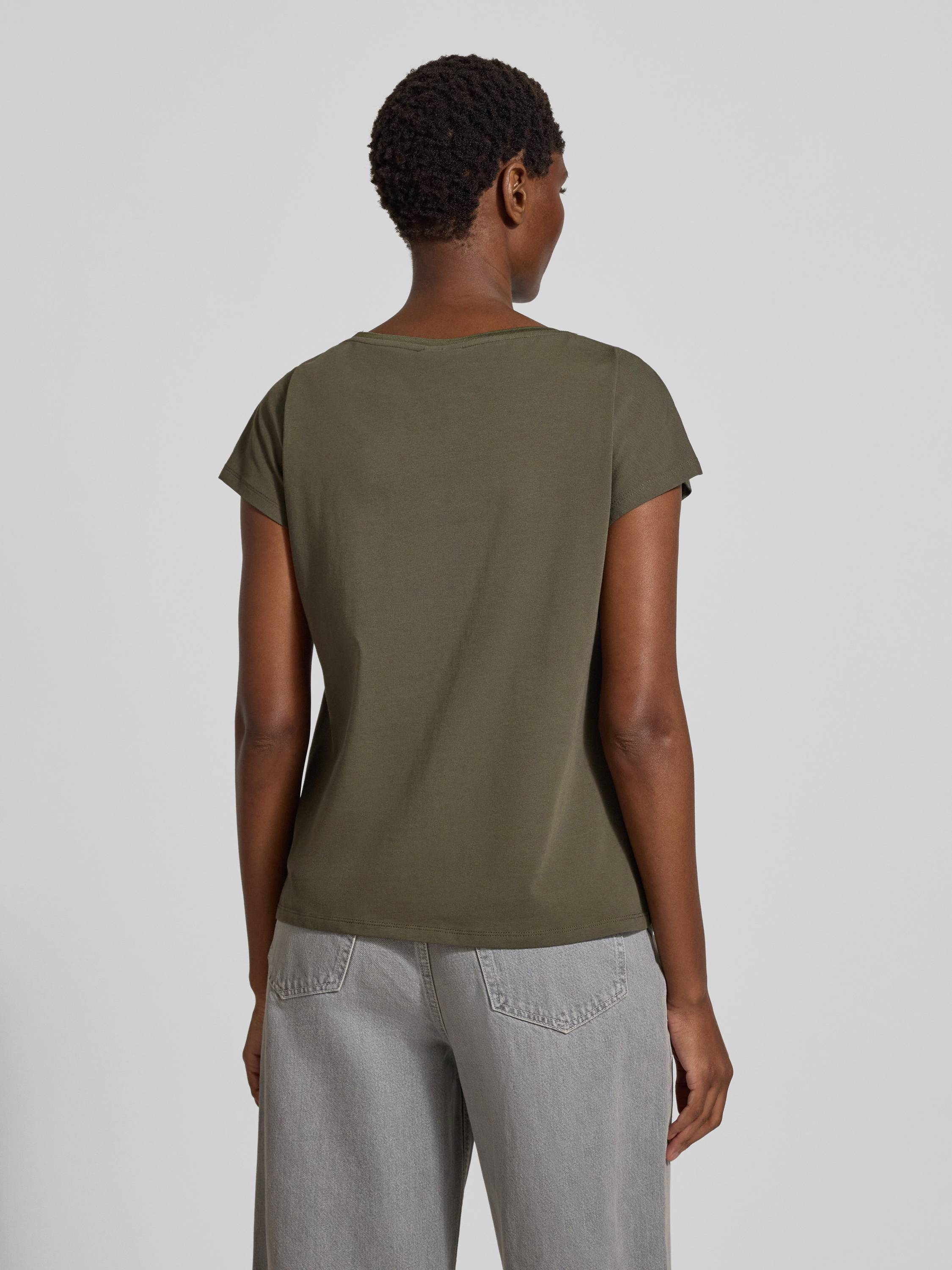 Regular fit T-shirt van katoenmix in kaki