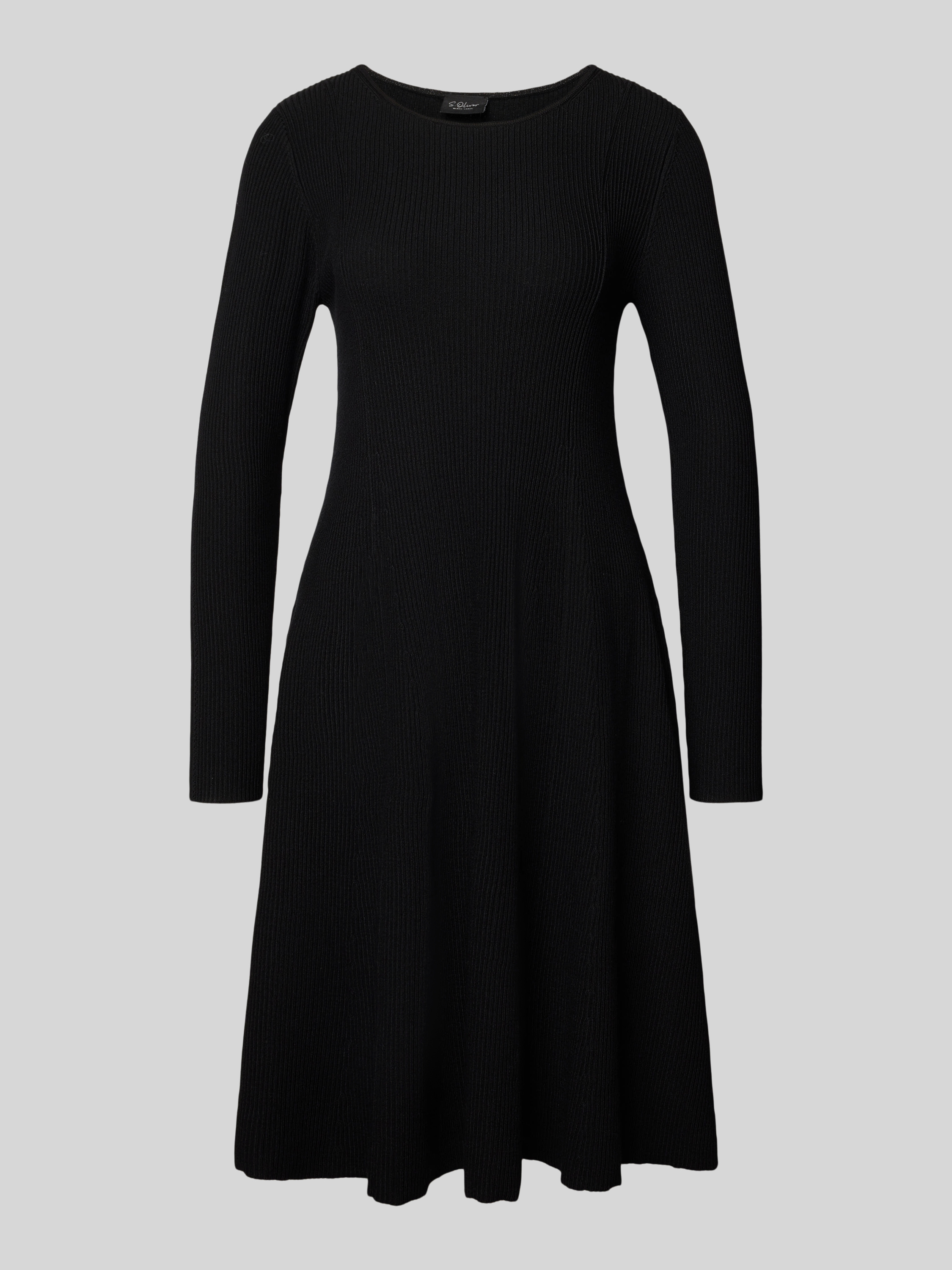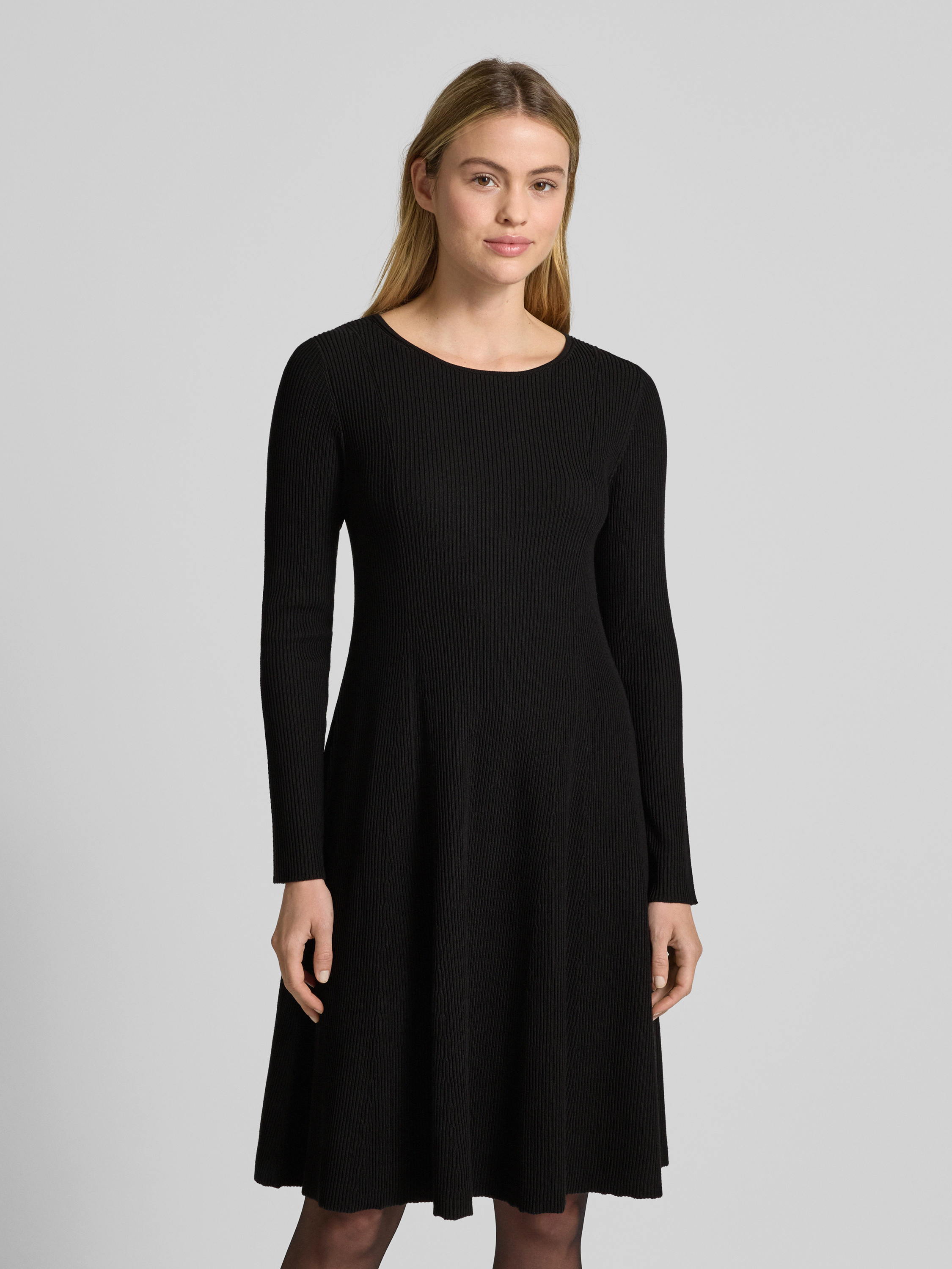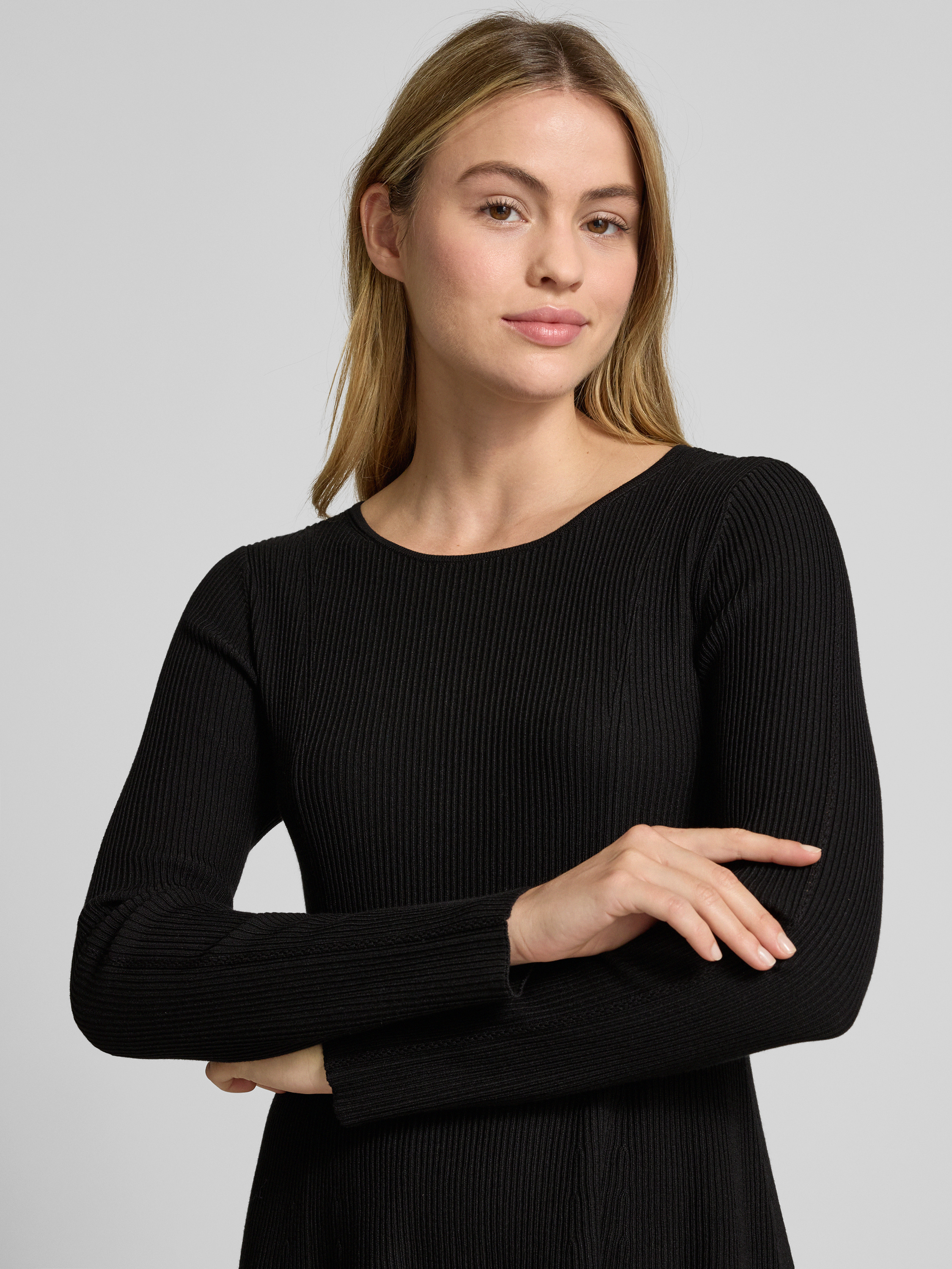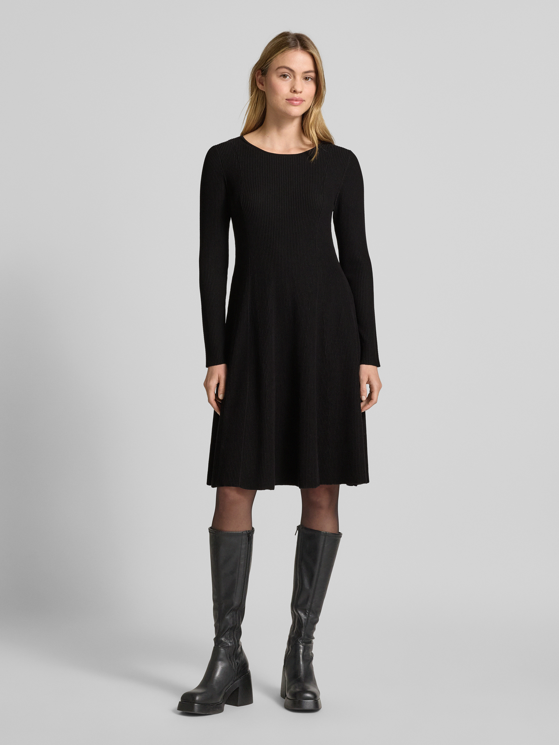 Shaped fit gebreide jurk van geribde viscosemix in zwart