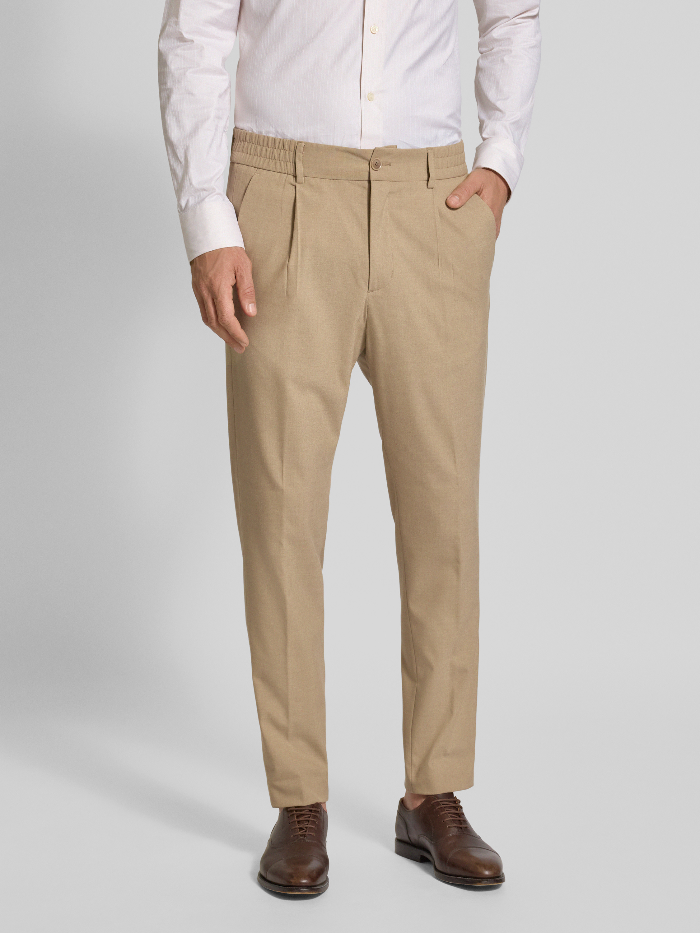 Slim fit pantalon met elastische band in camel