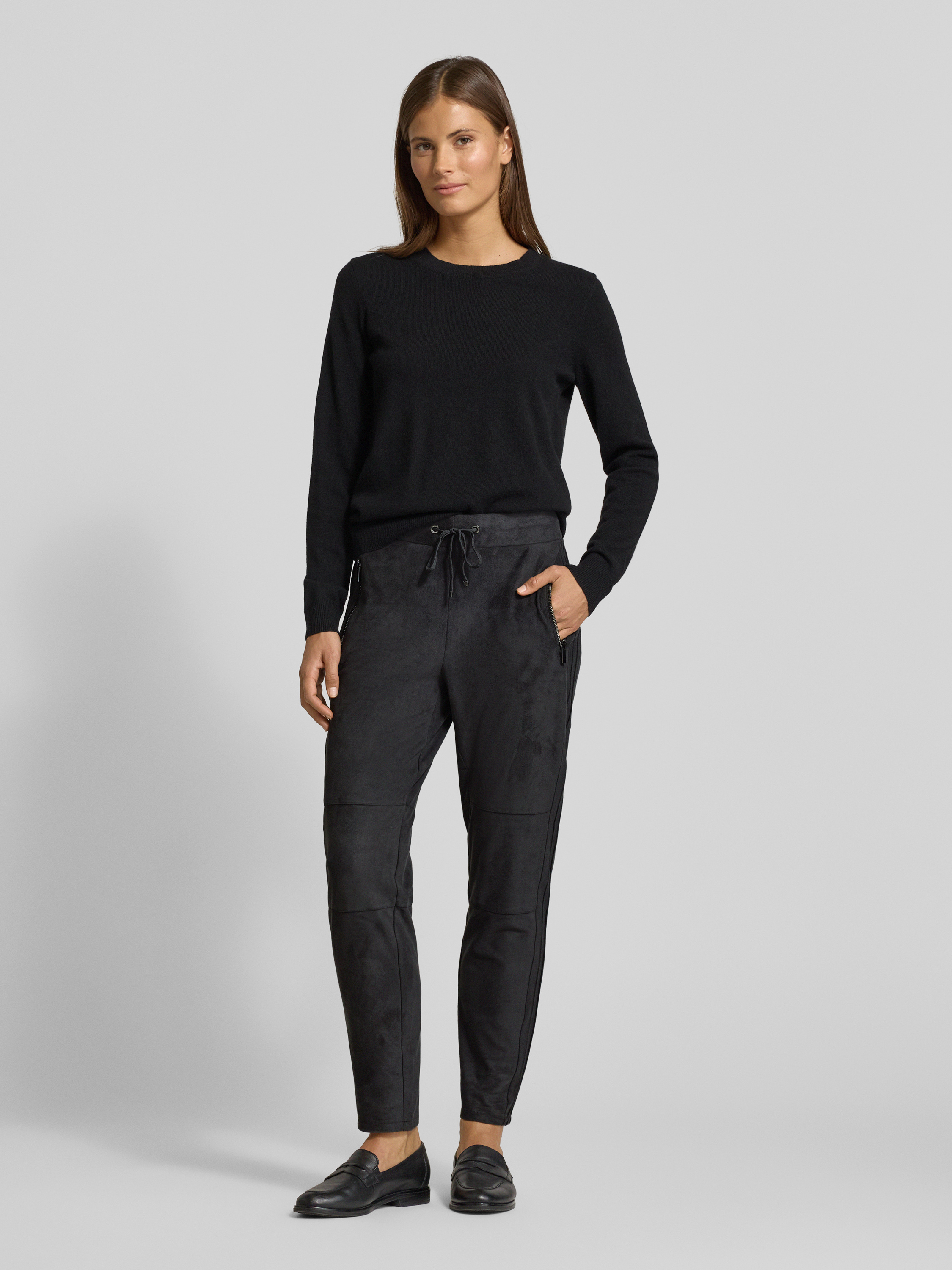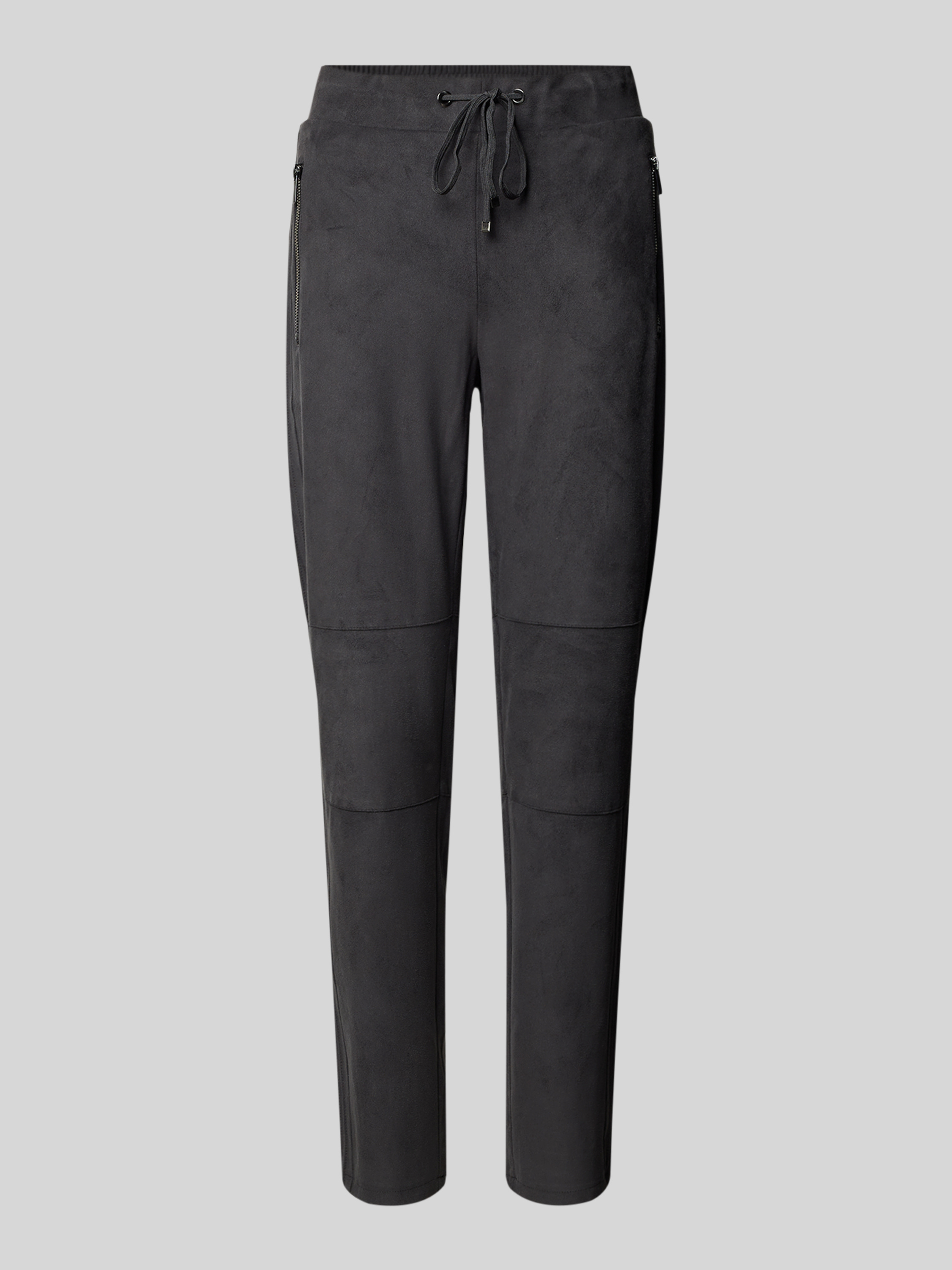 Tapered broek in leerlook met tunnelkoord in antraciet