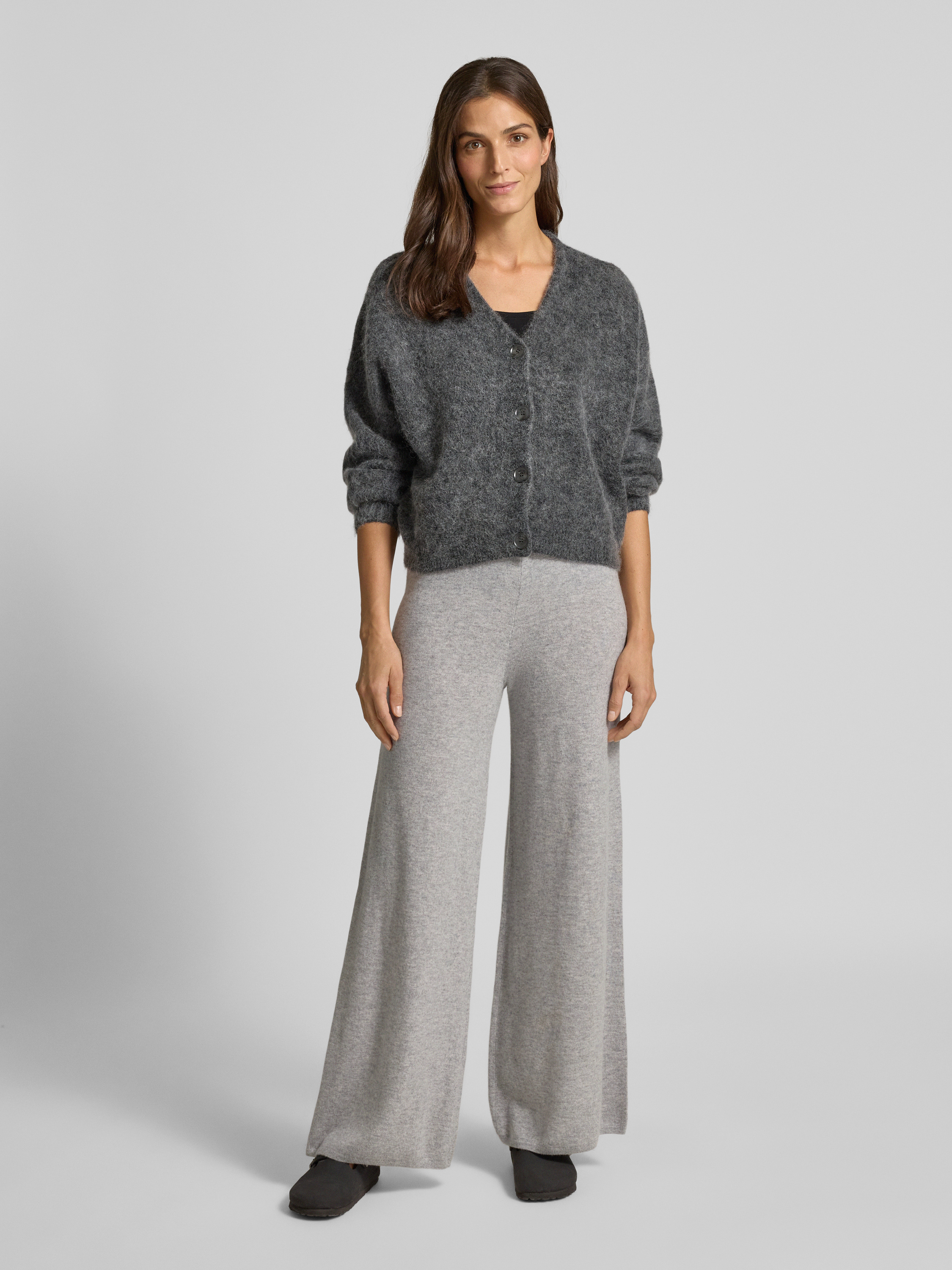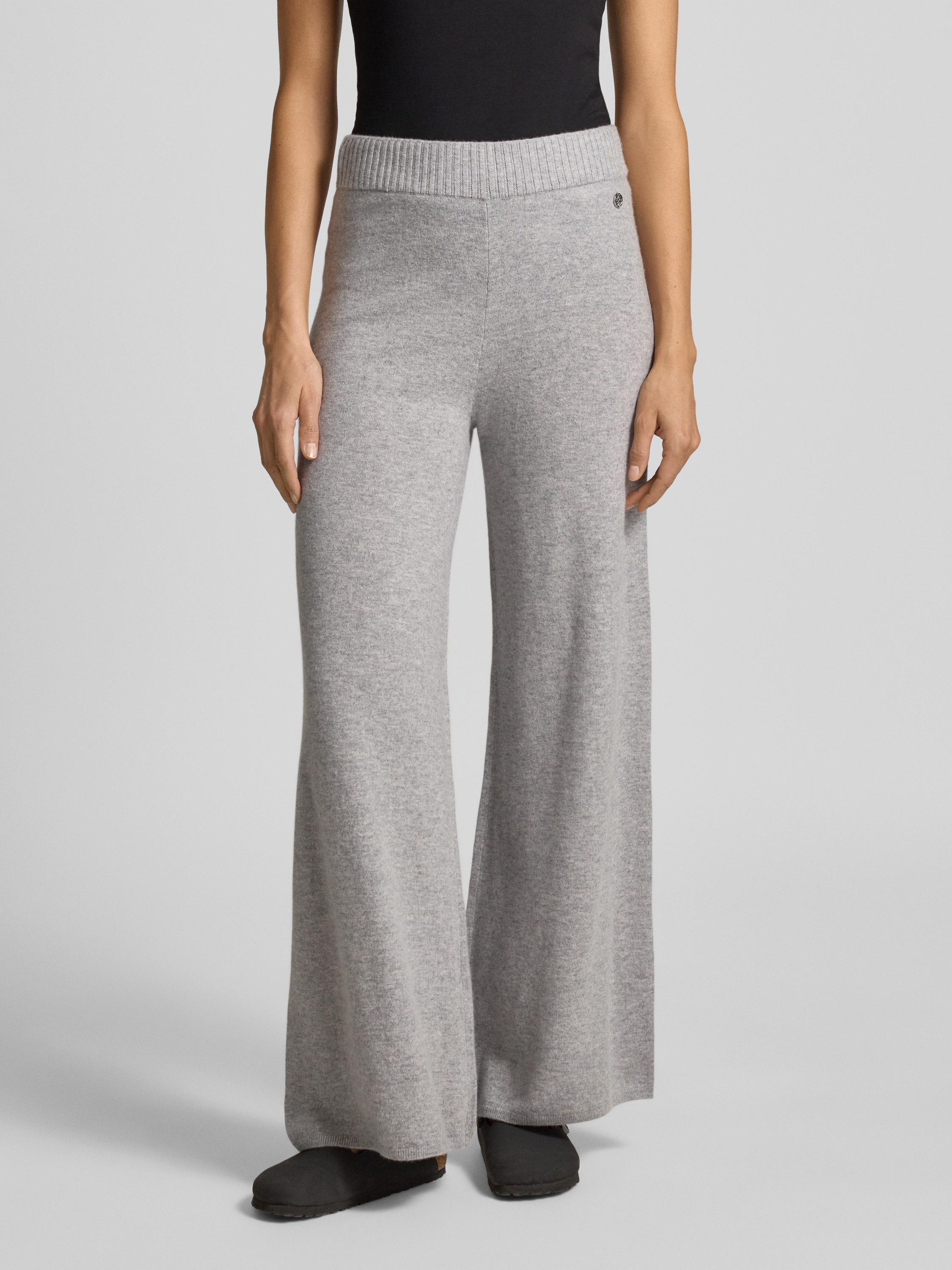 Wide leg gebreide broek van een mix van wol en kasjmier in lichtgrijs