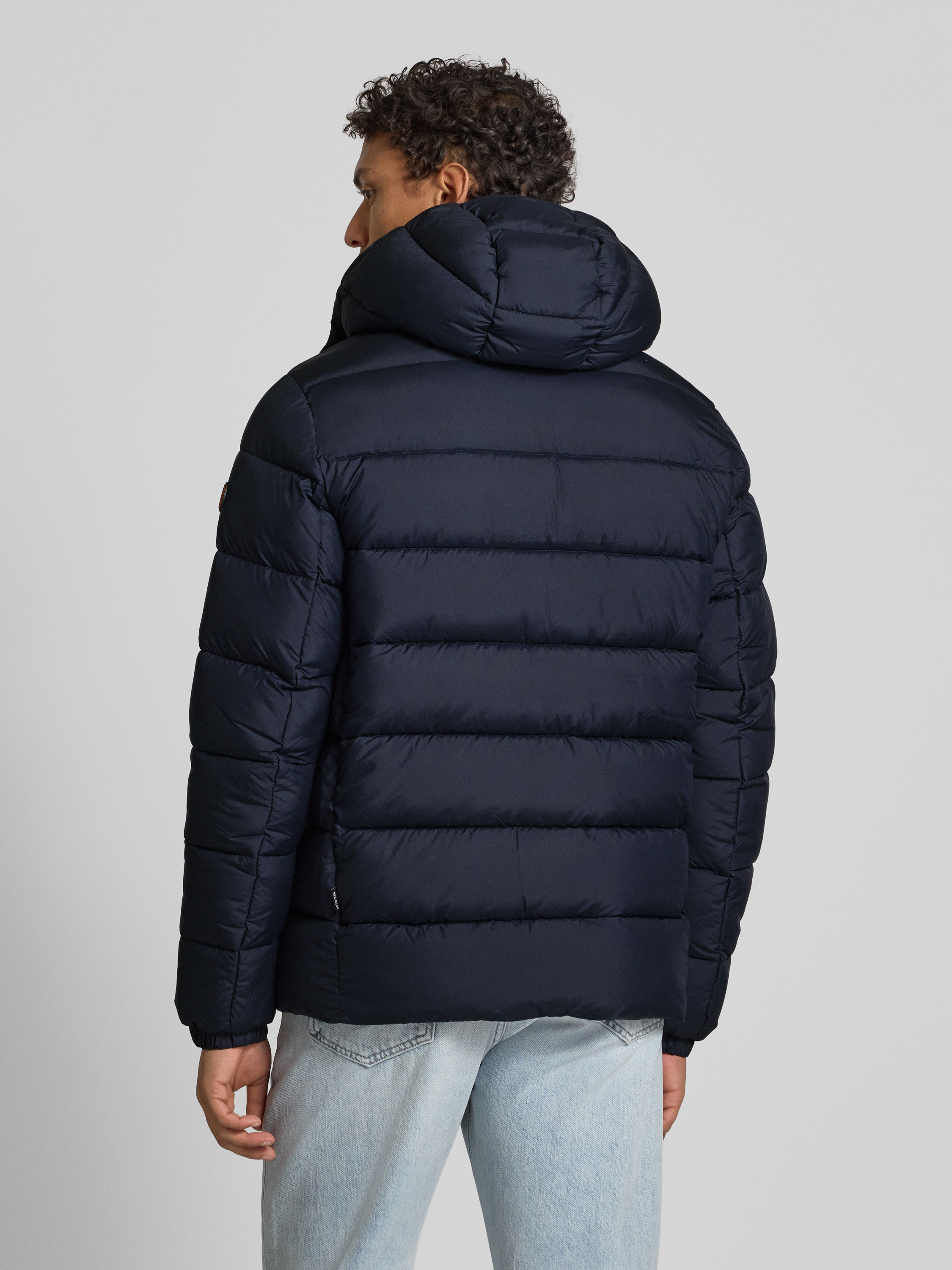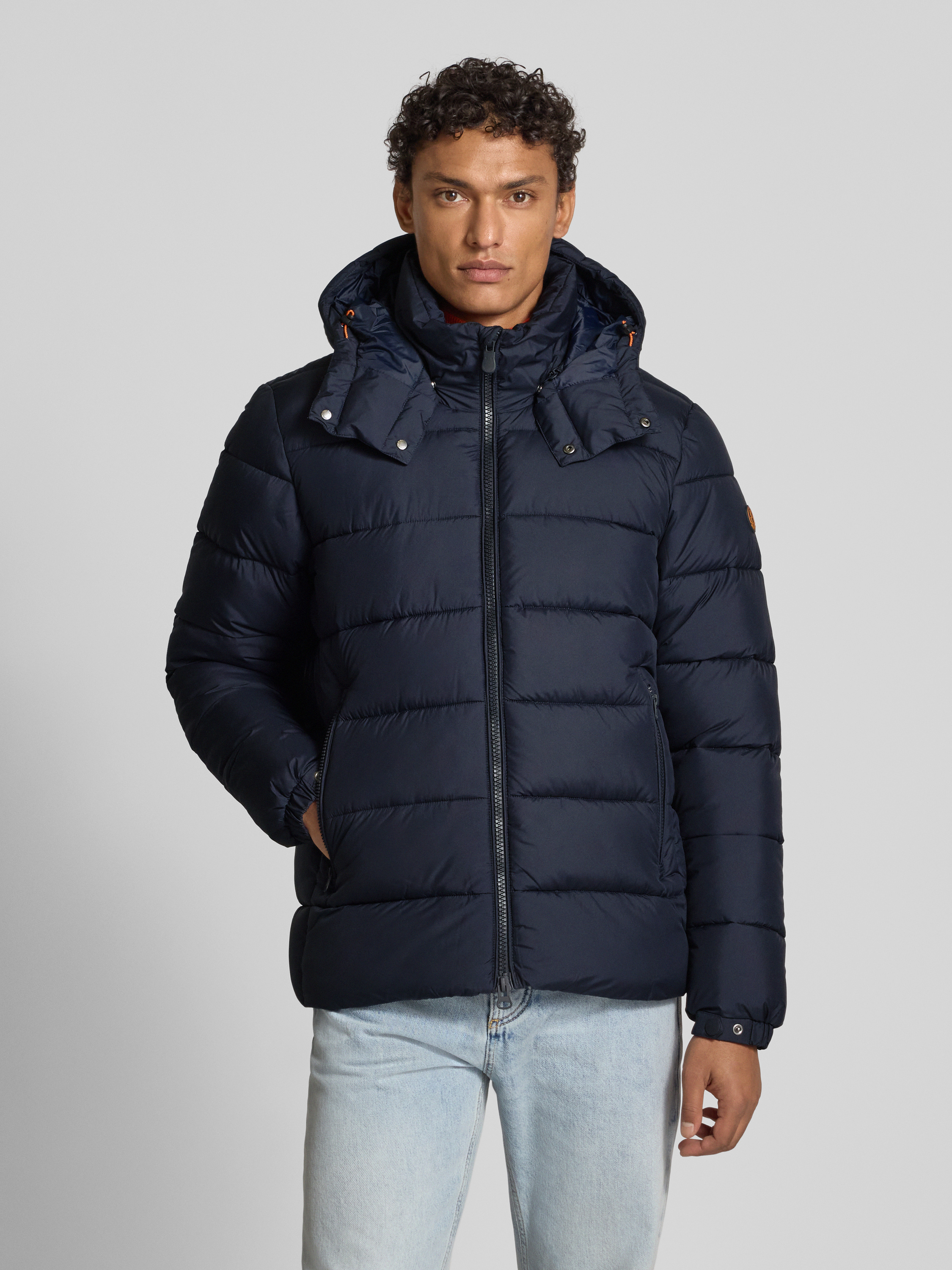 SAVE THE DUCKGewatteerd jack met afneembare capuchon, model 'BORIS' in marineblauw