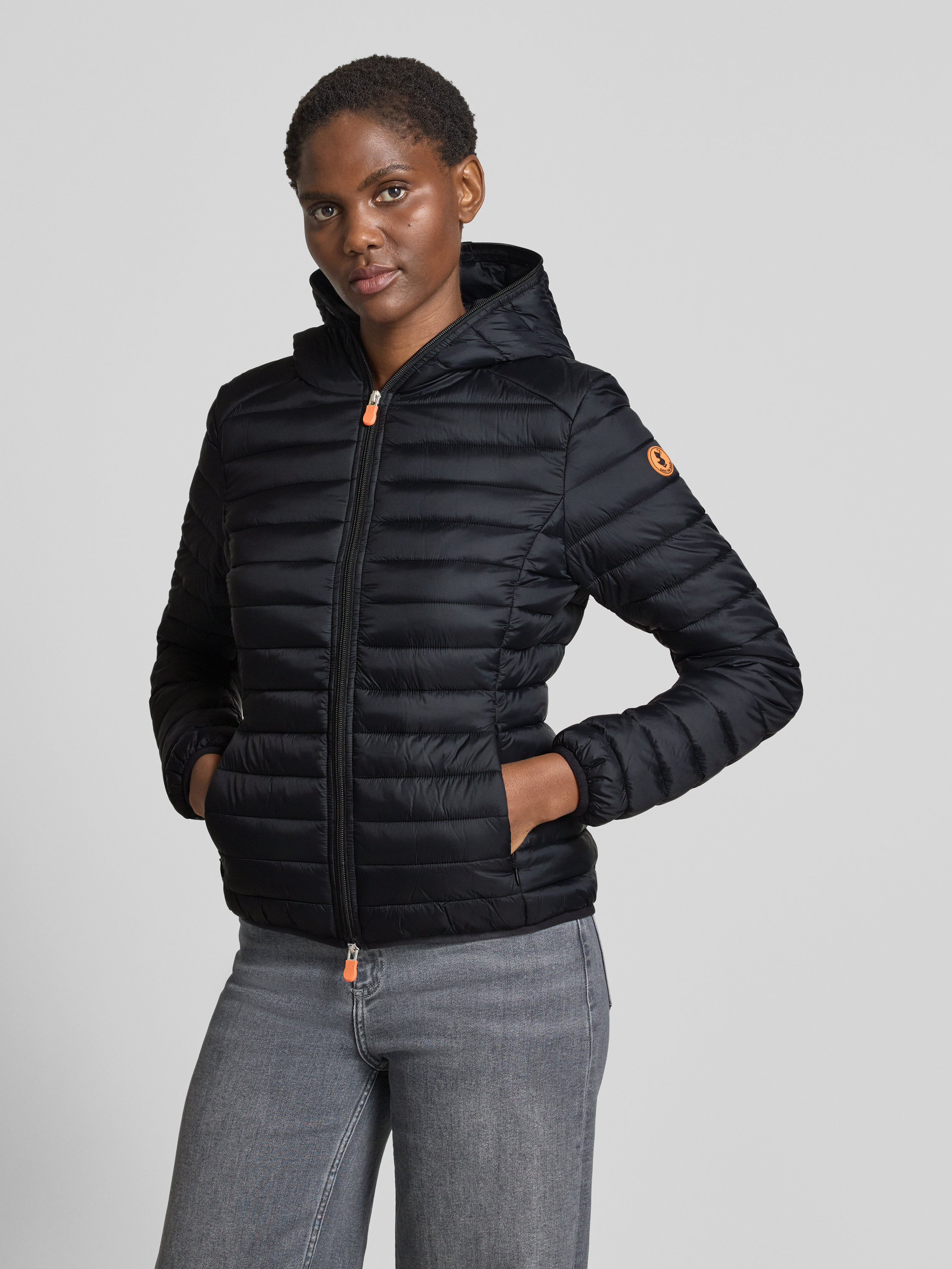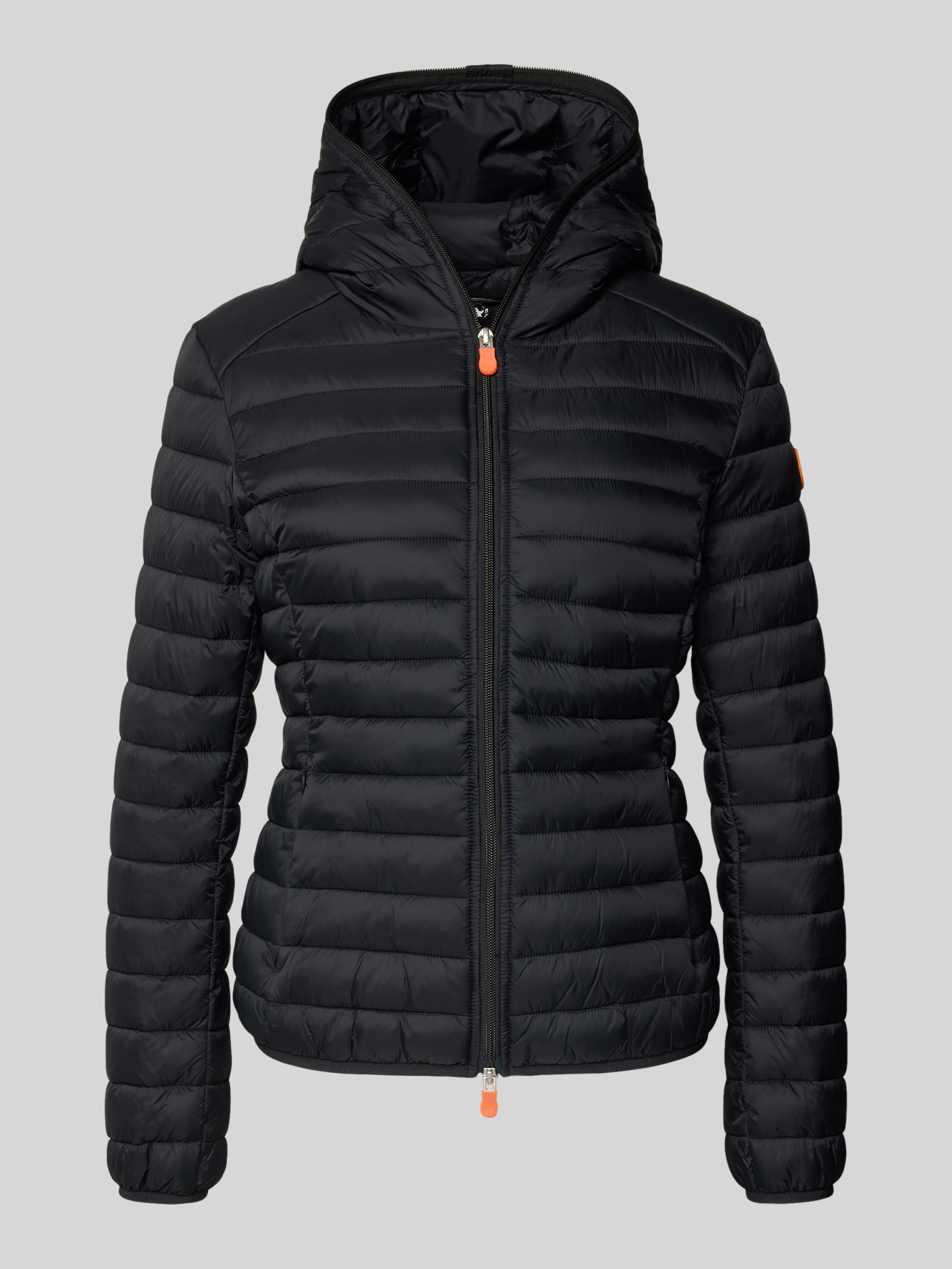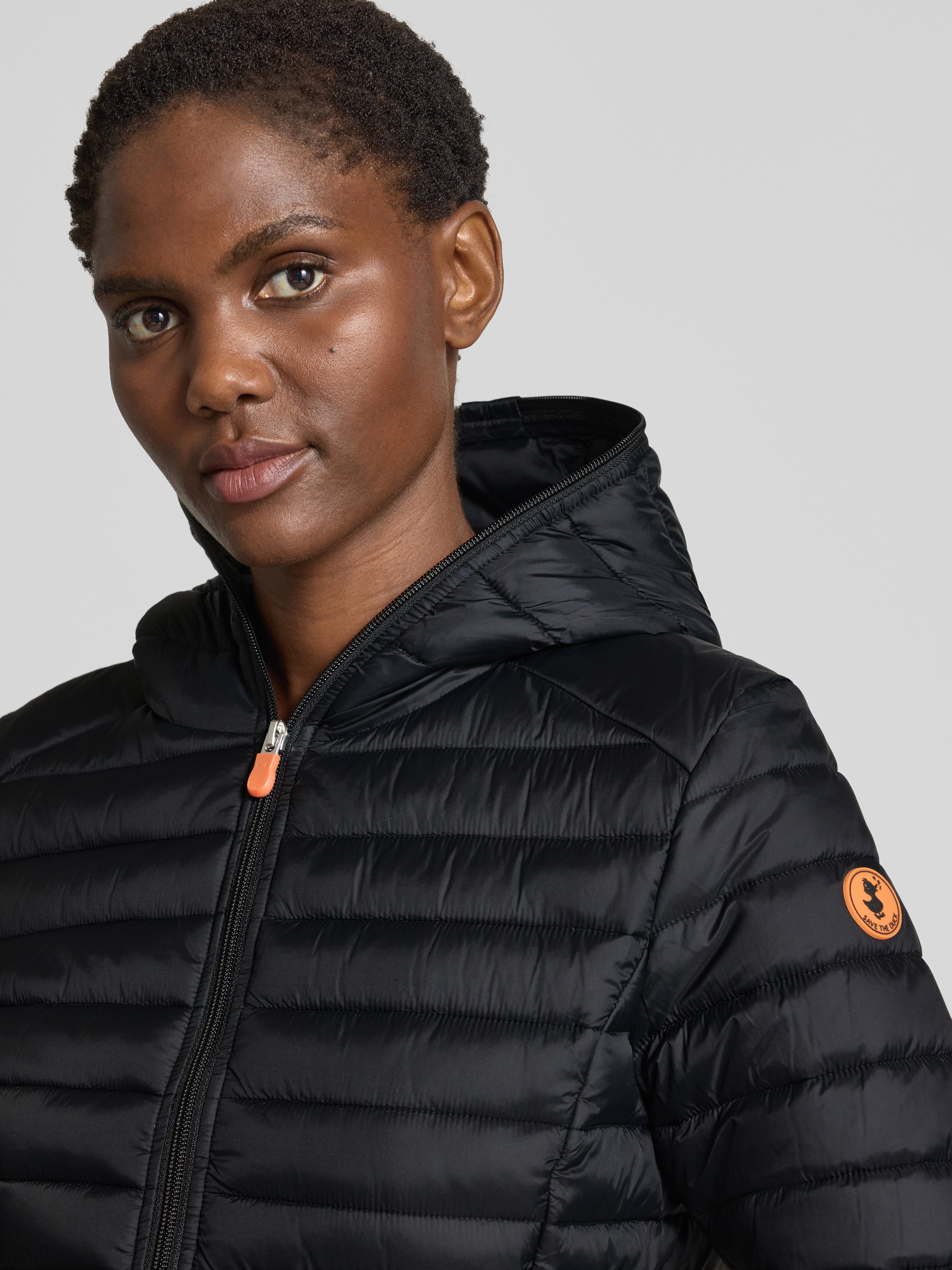 Gewatteerd jack met capuchon, model 'DAISY' in zwart