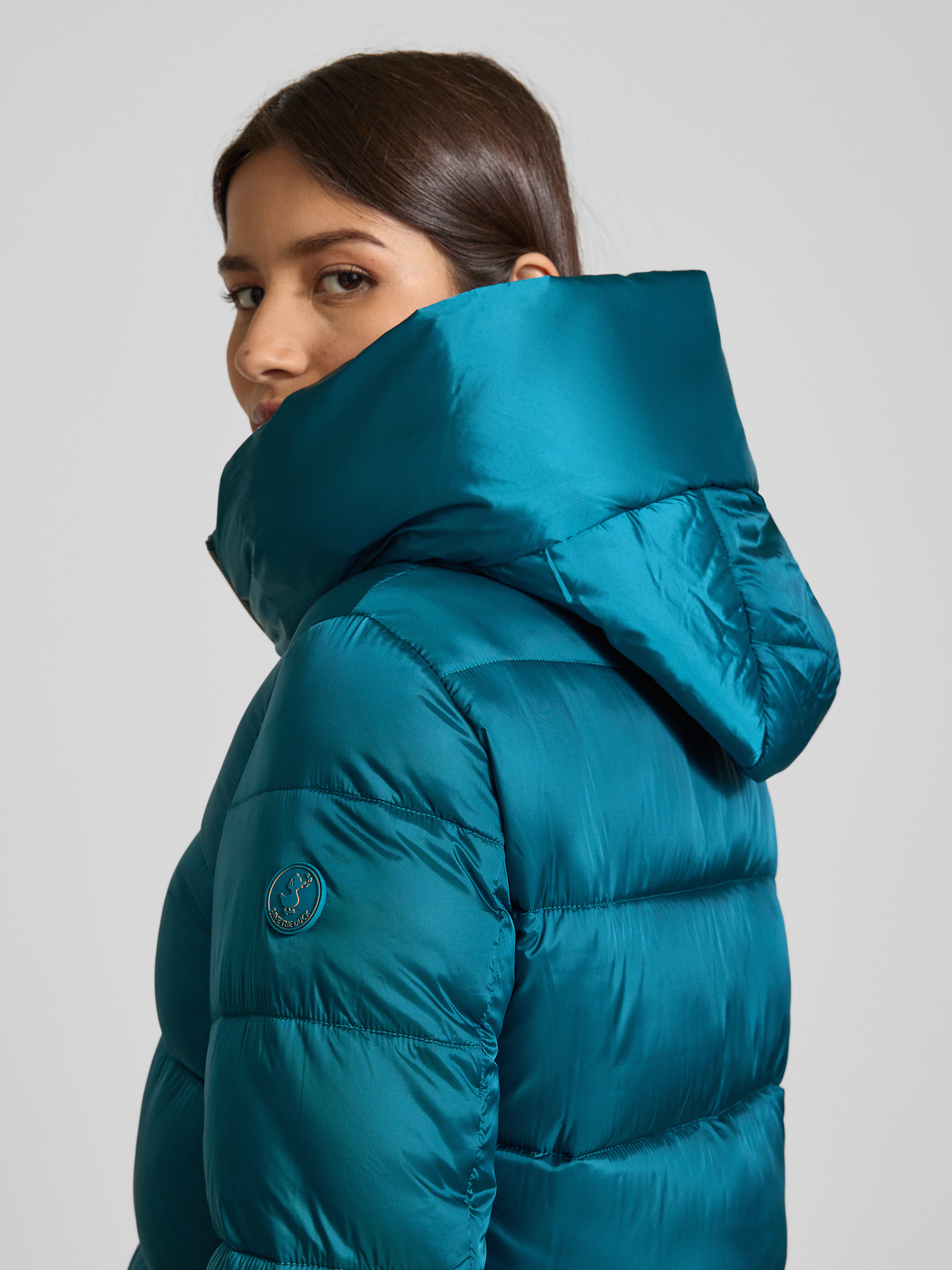 SAVE THE DUCKGewatteerde lange jas met opstaande kraag, model 'LYSA' in petrol