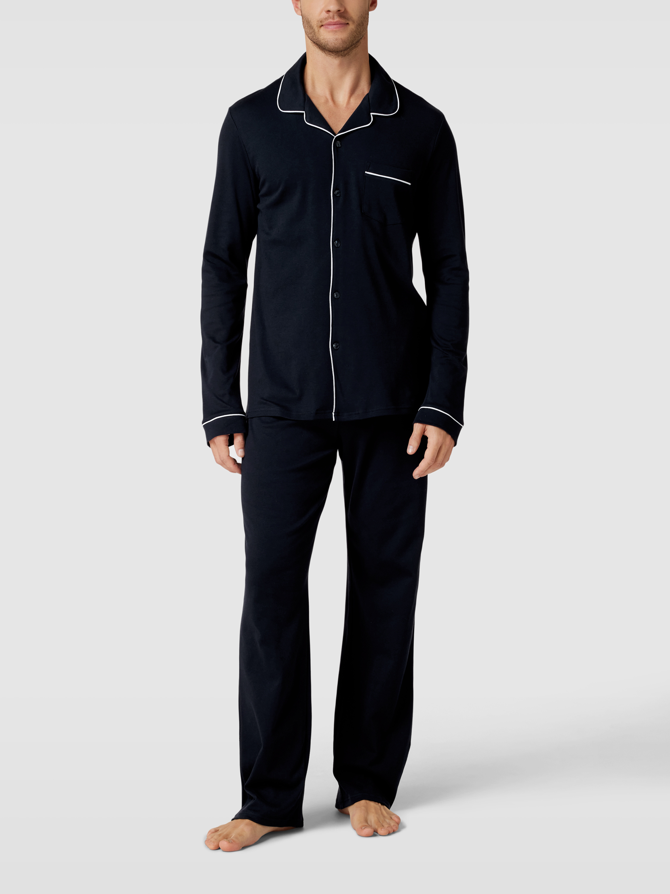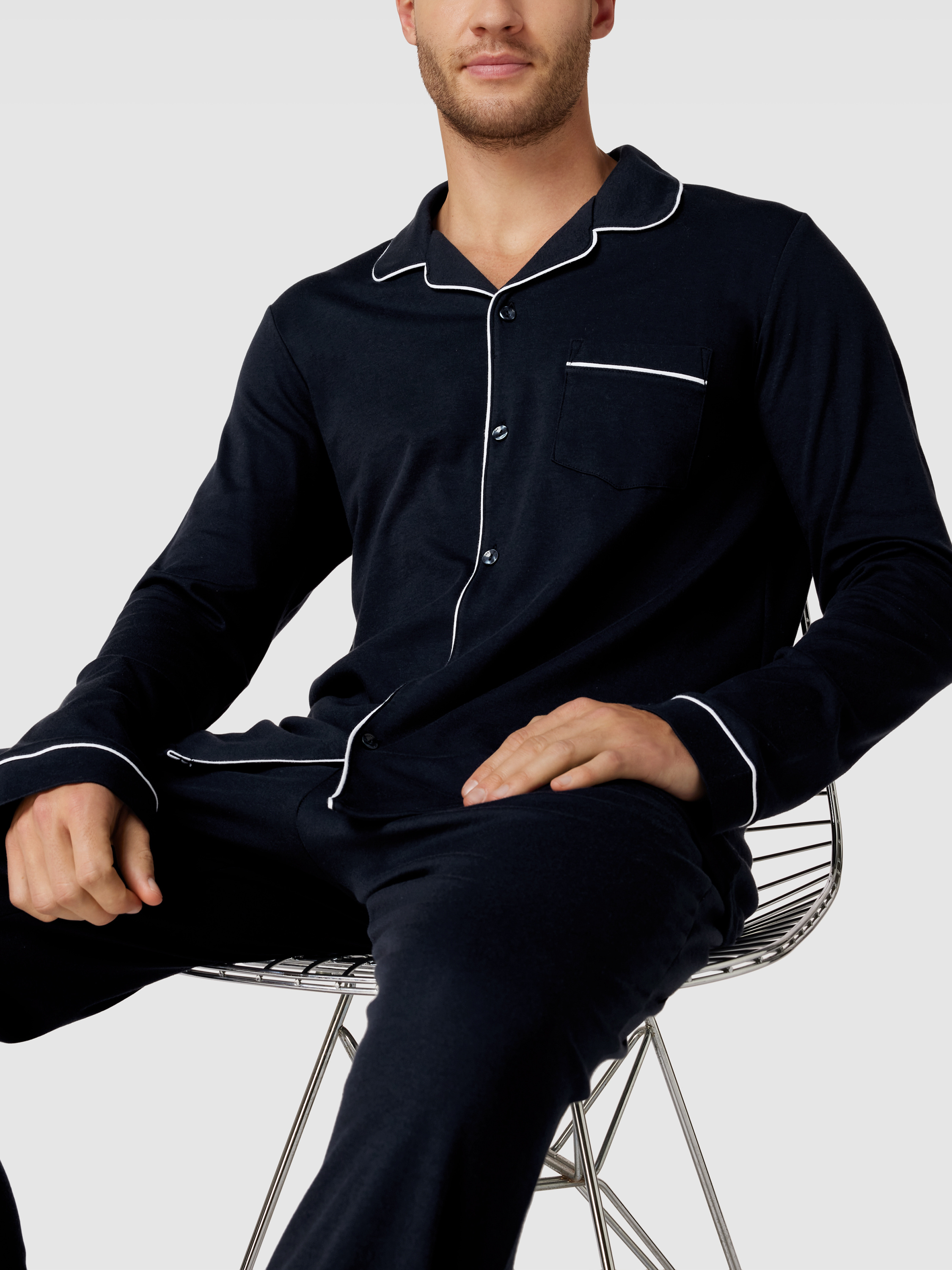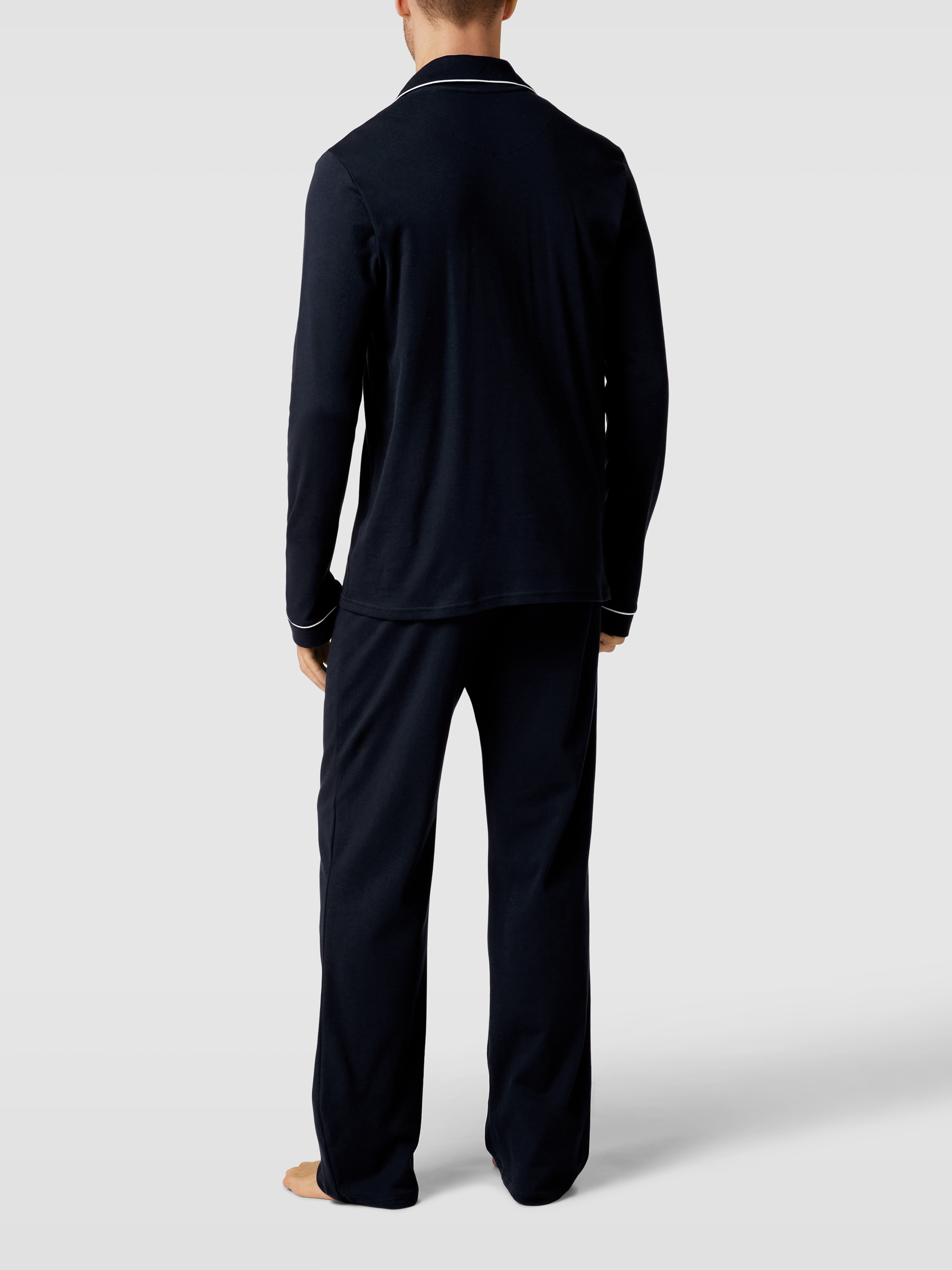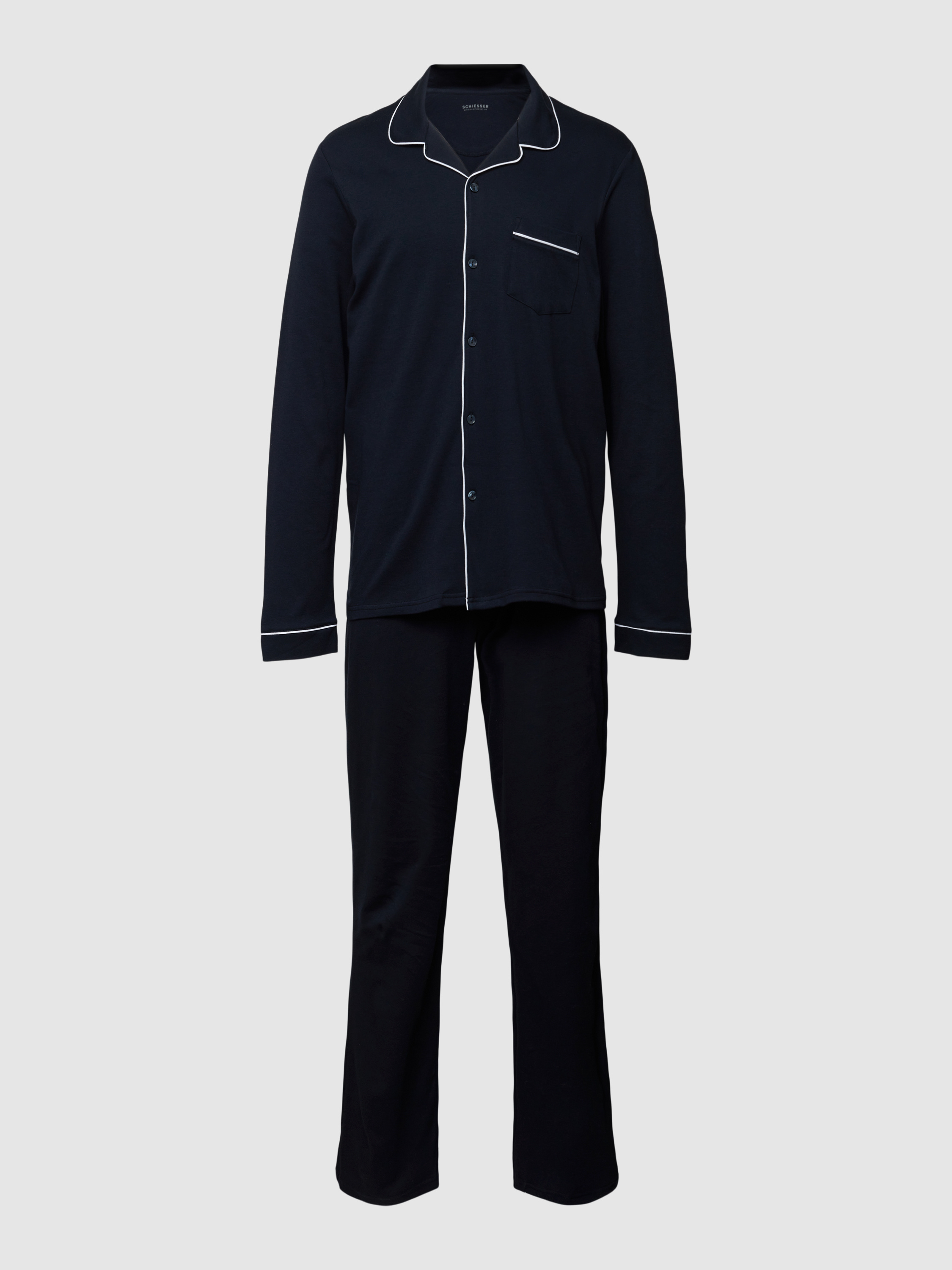SchiesserPyjama van katoen, model 'FINE INTERLOCK Pyjama lang' in donkerblauw