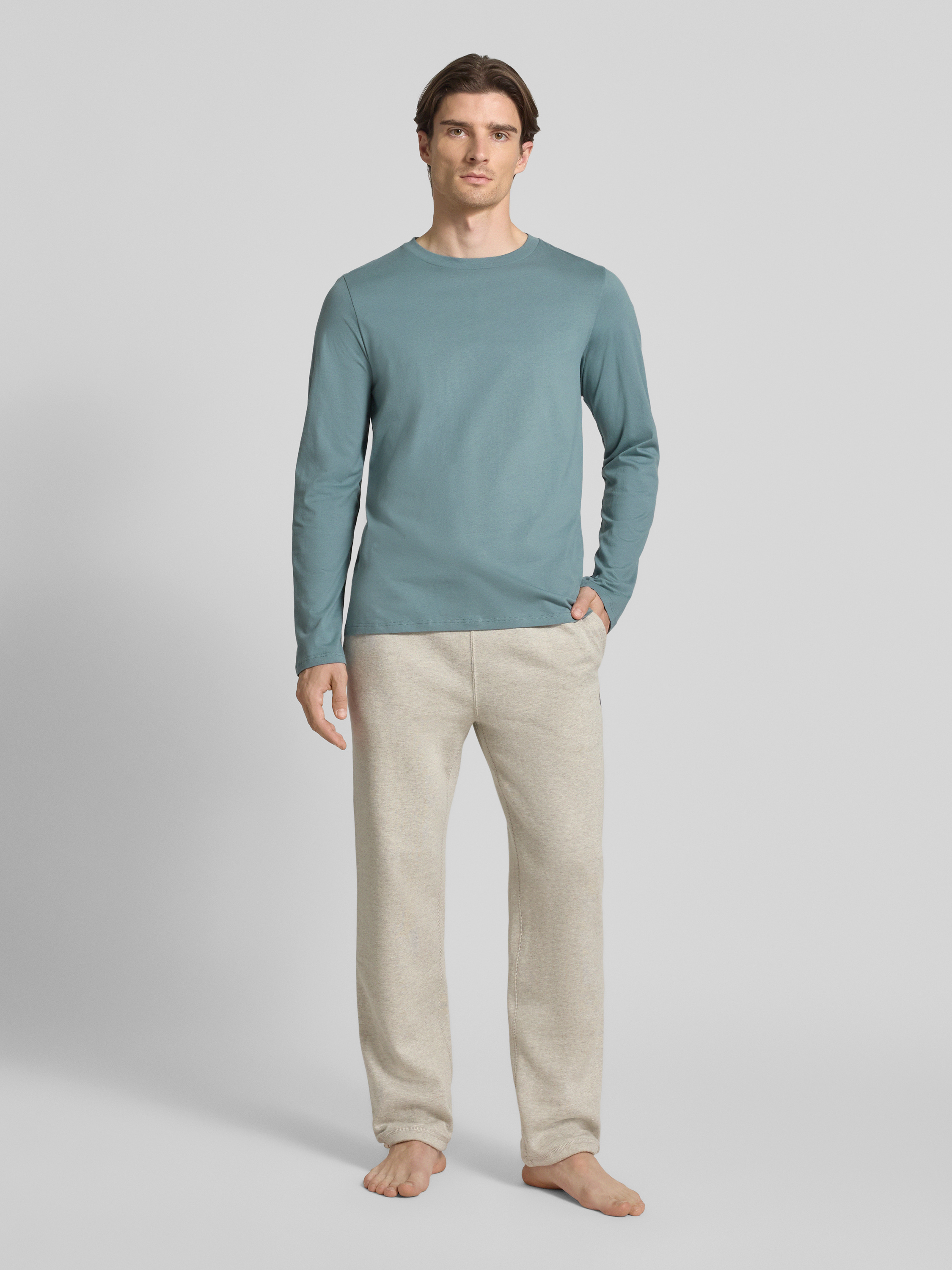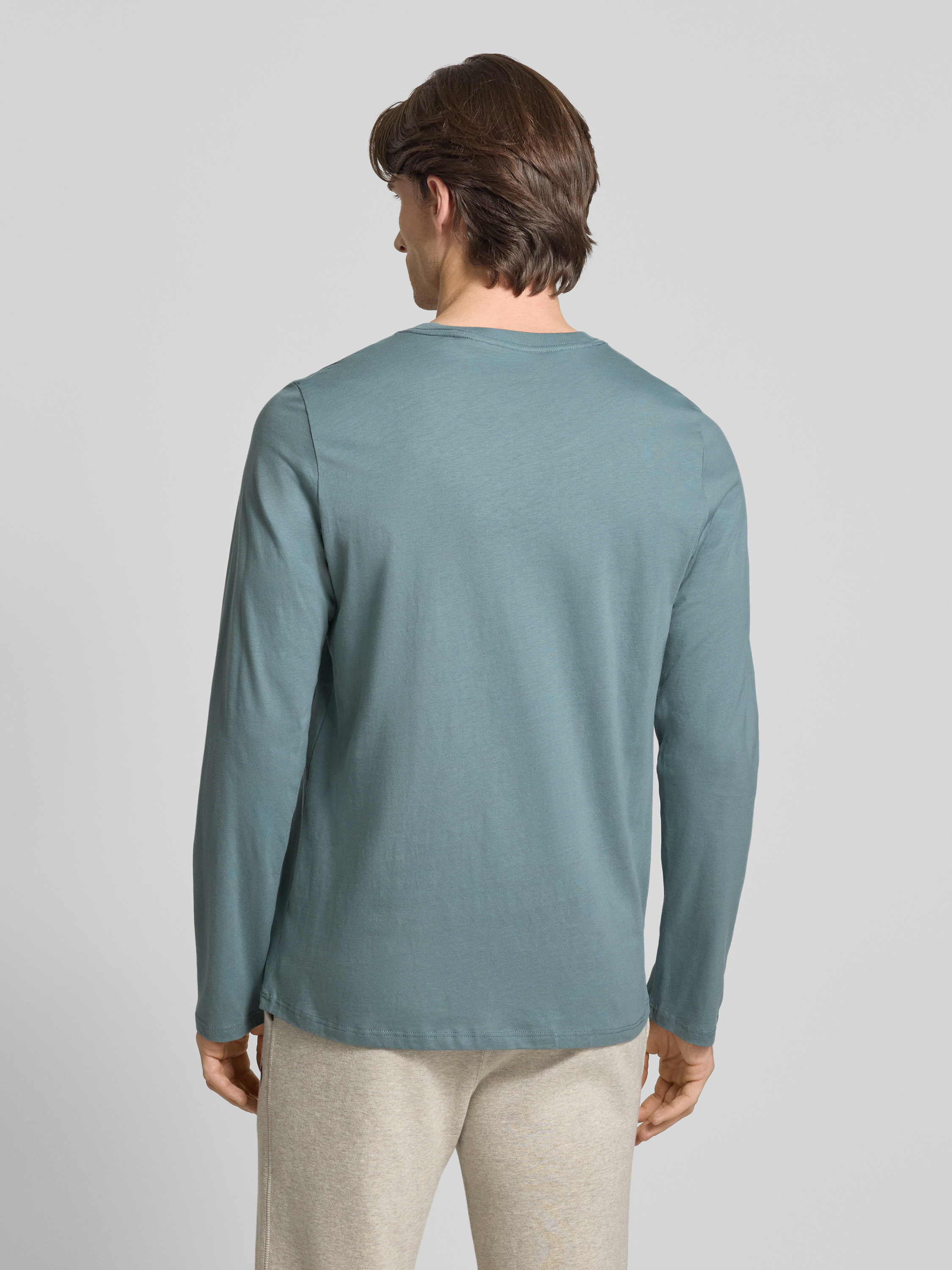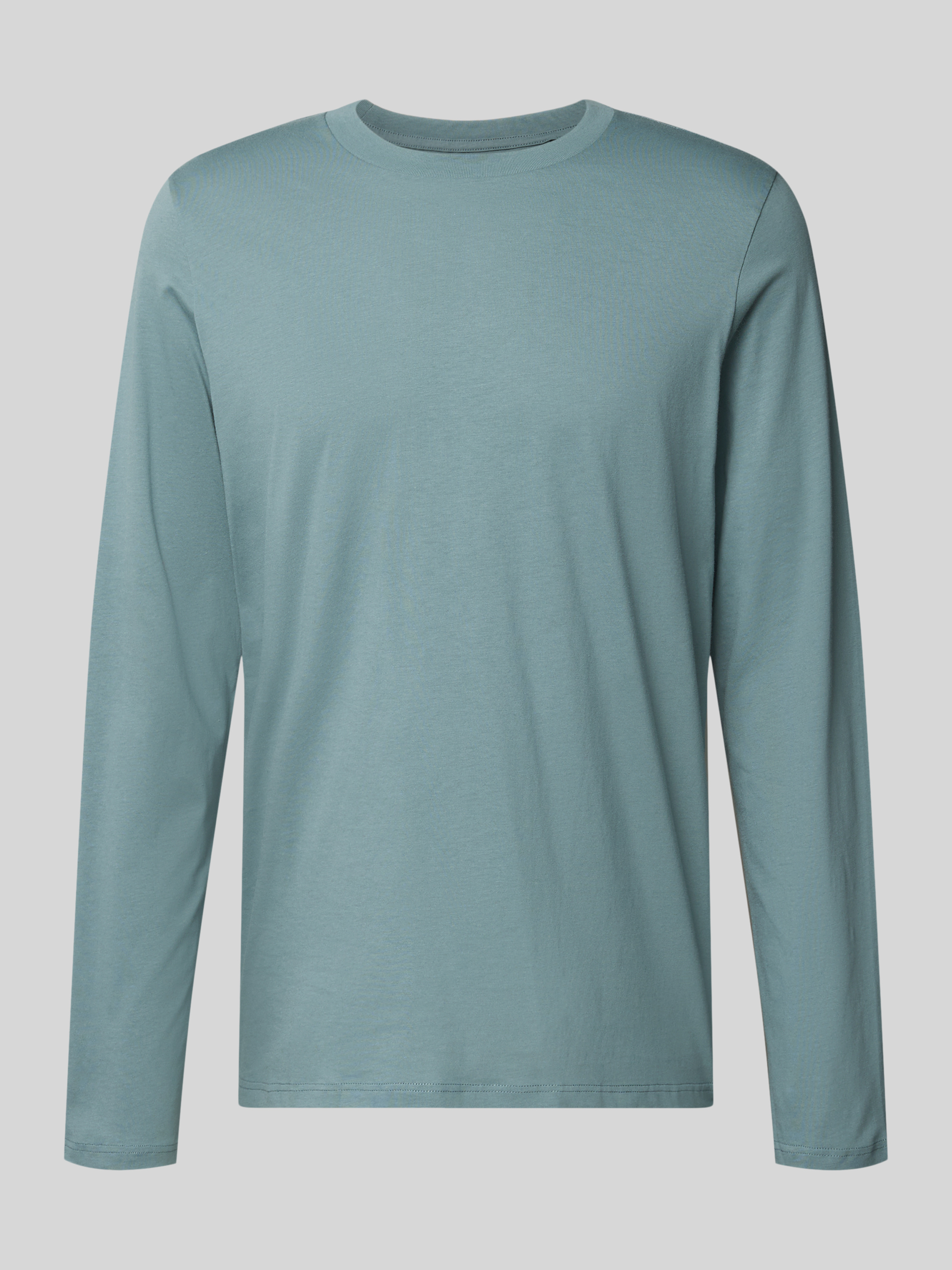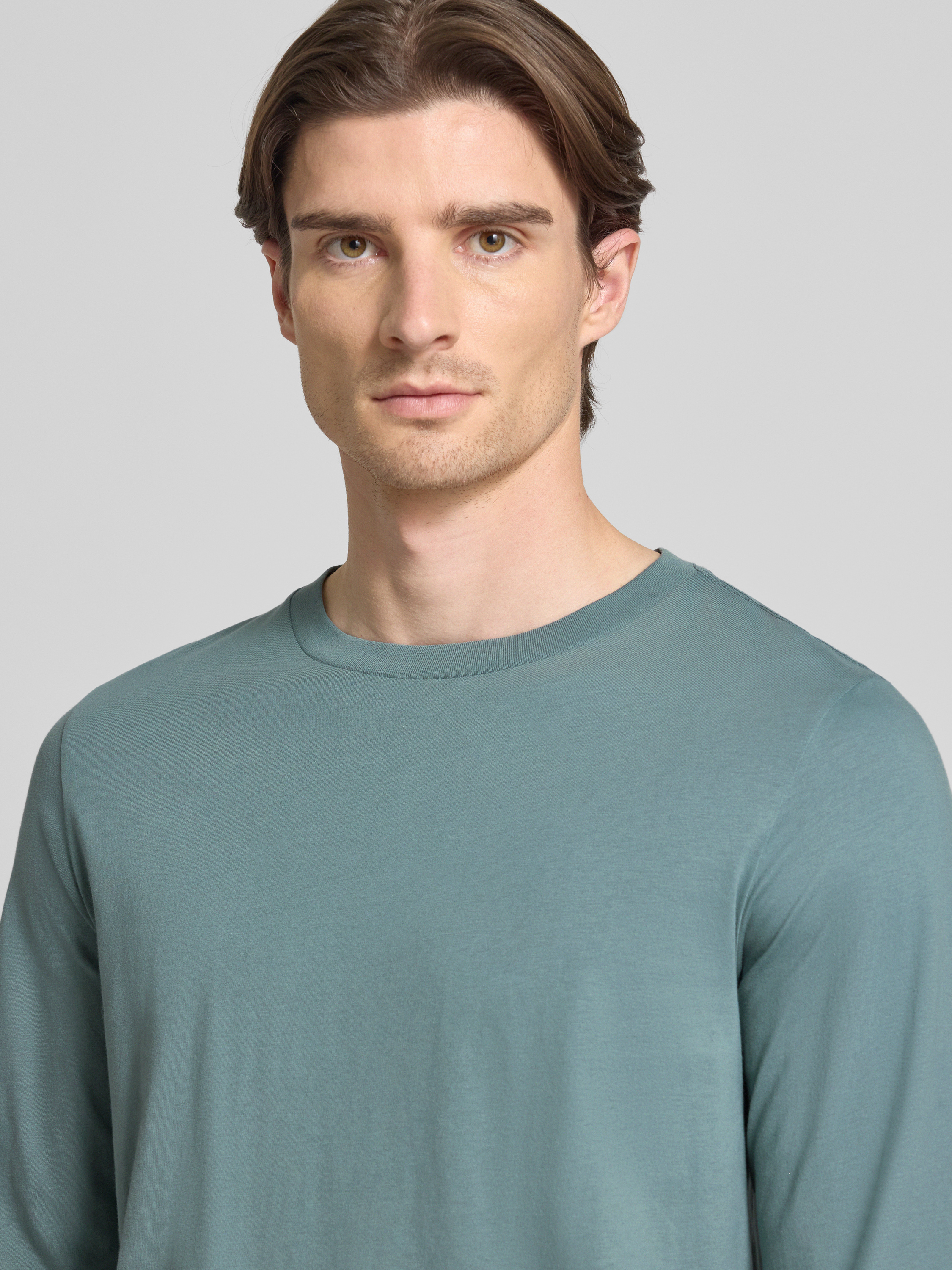 Shirt met lange mouwen en geribde ronde hals in aquablauw