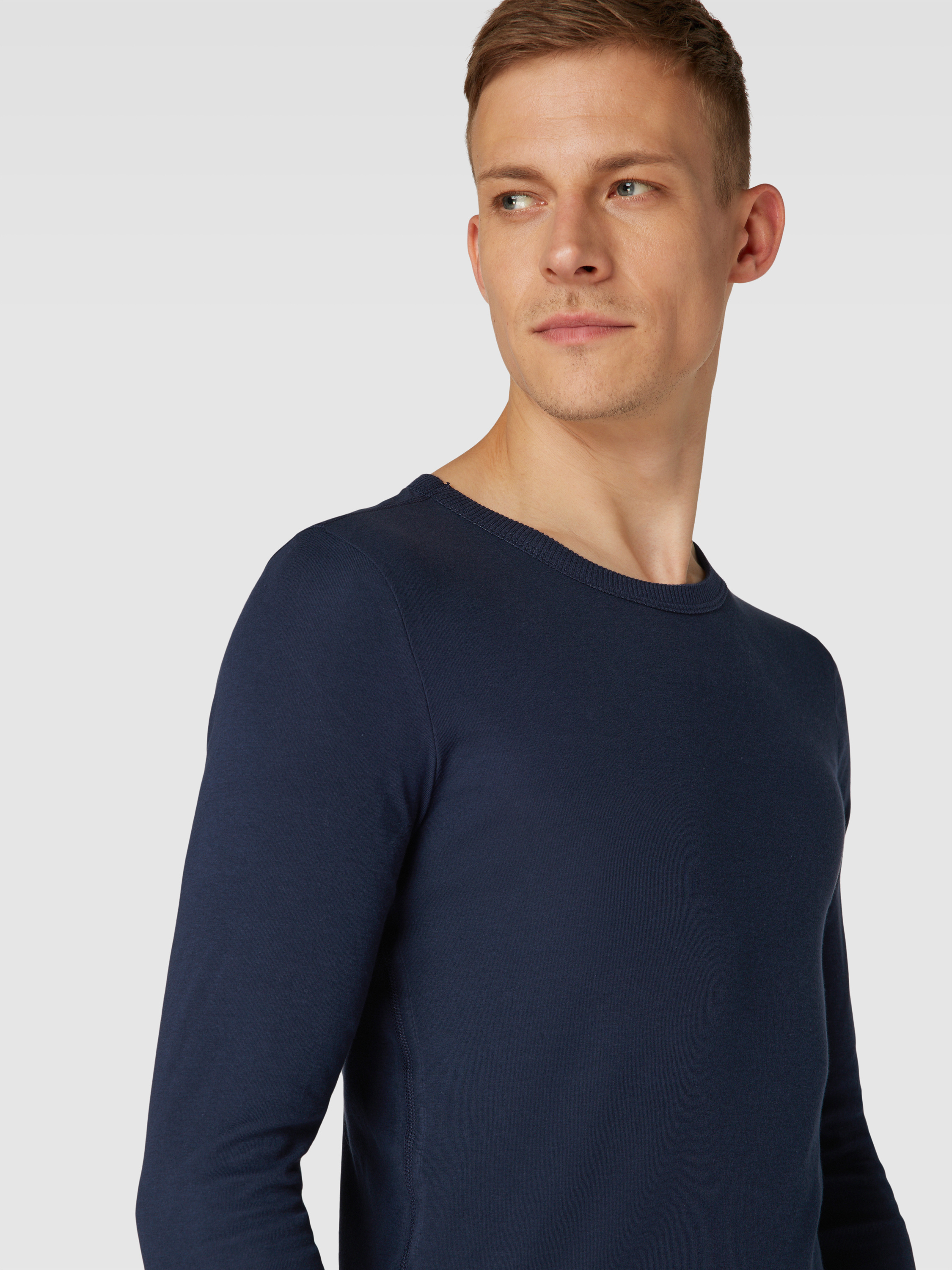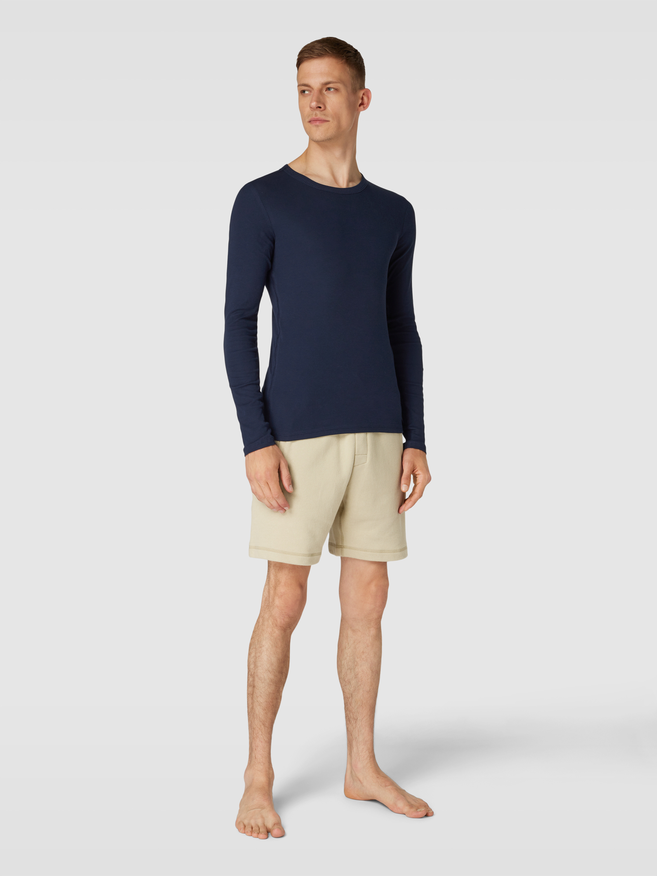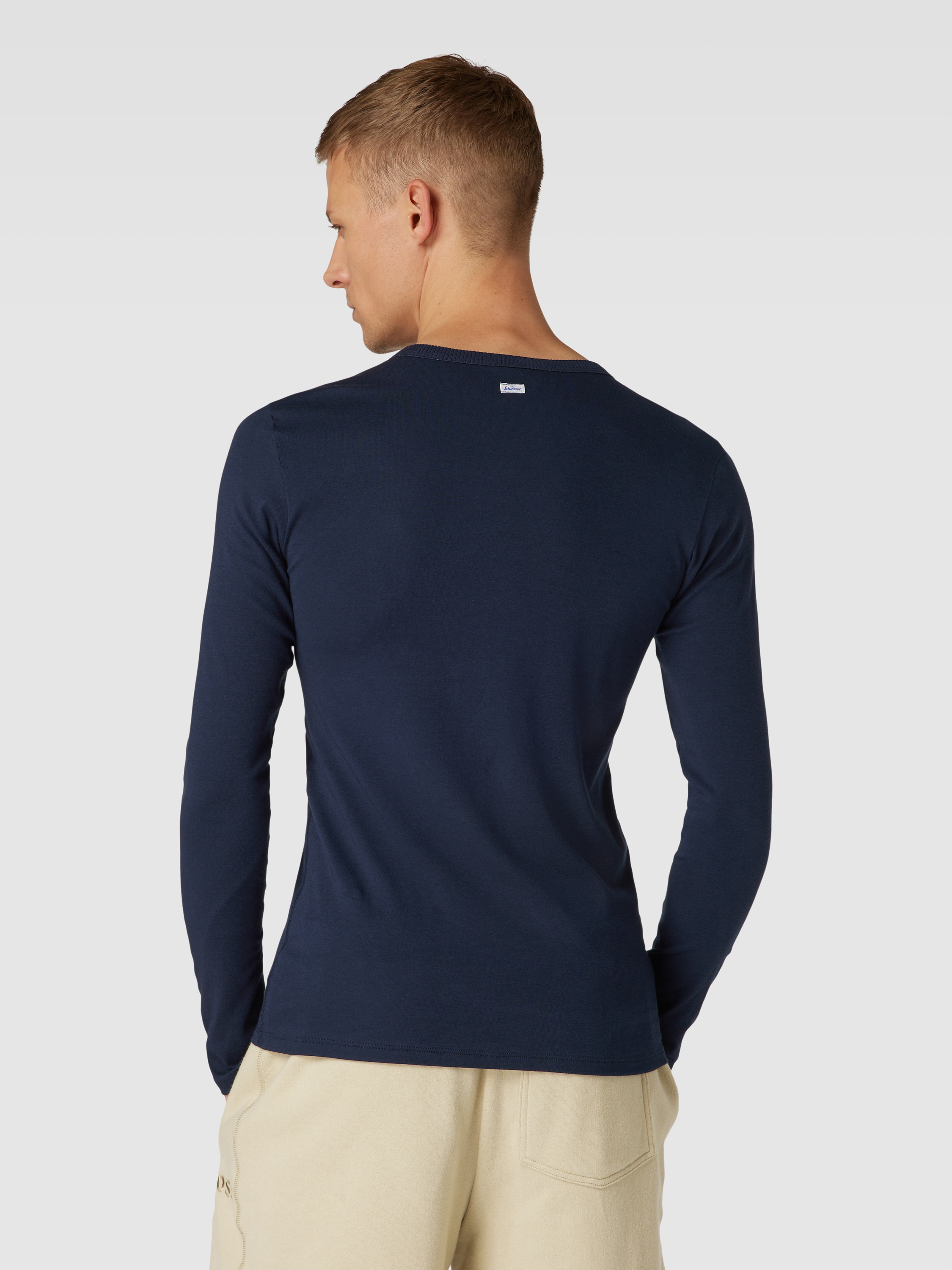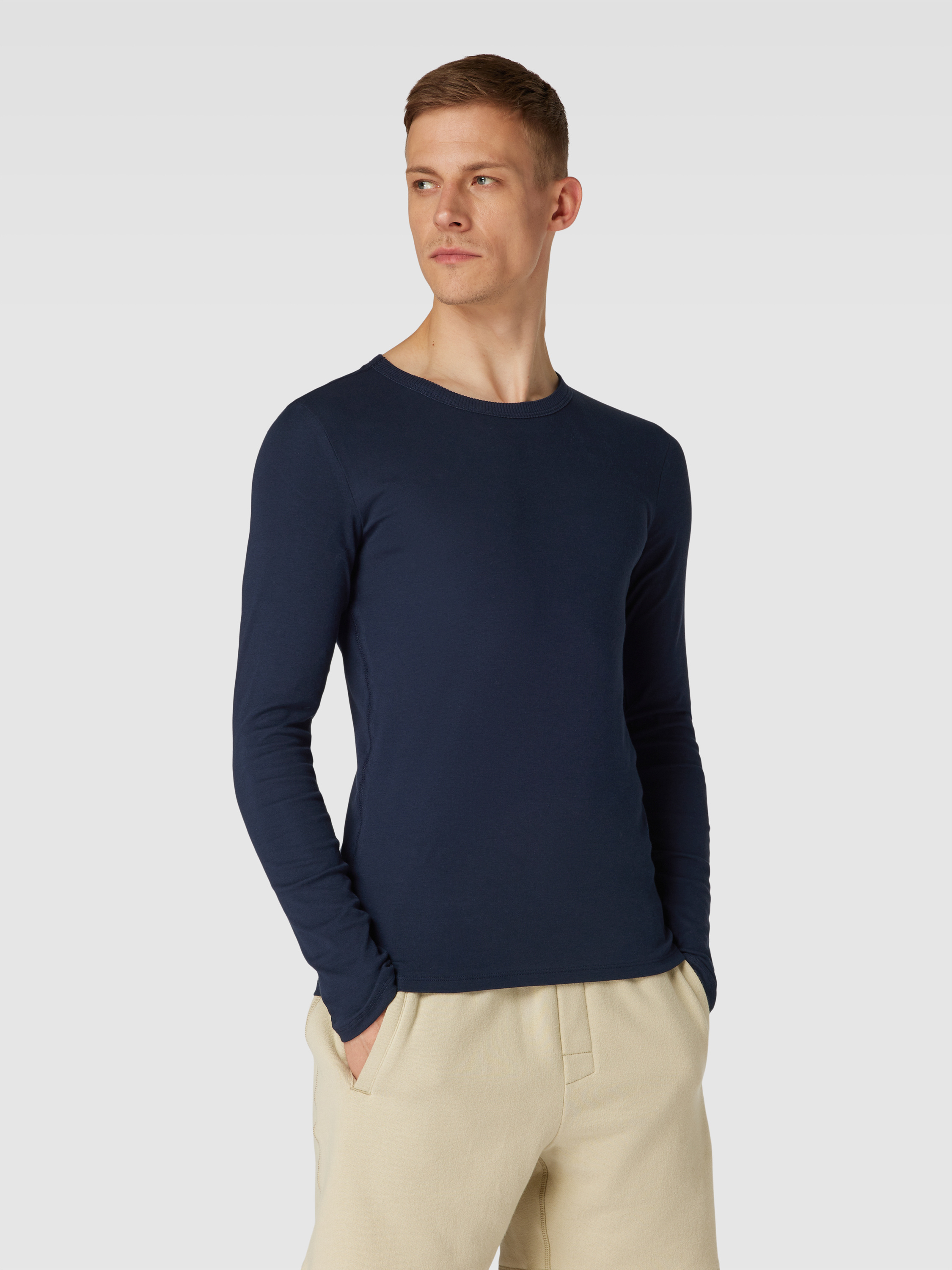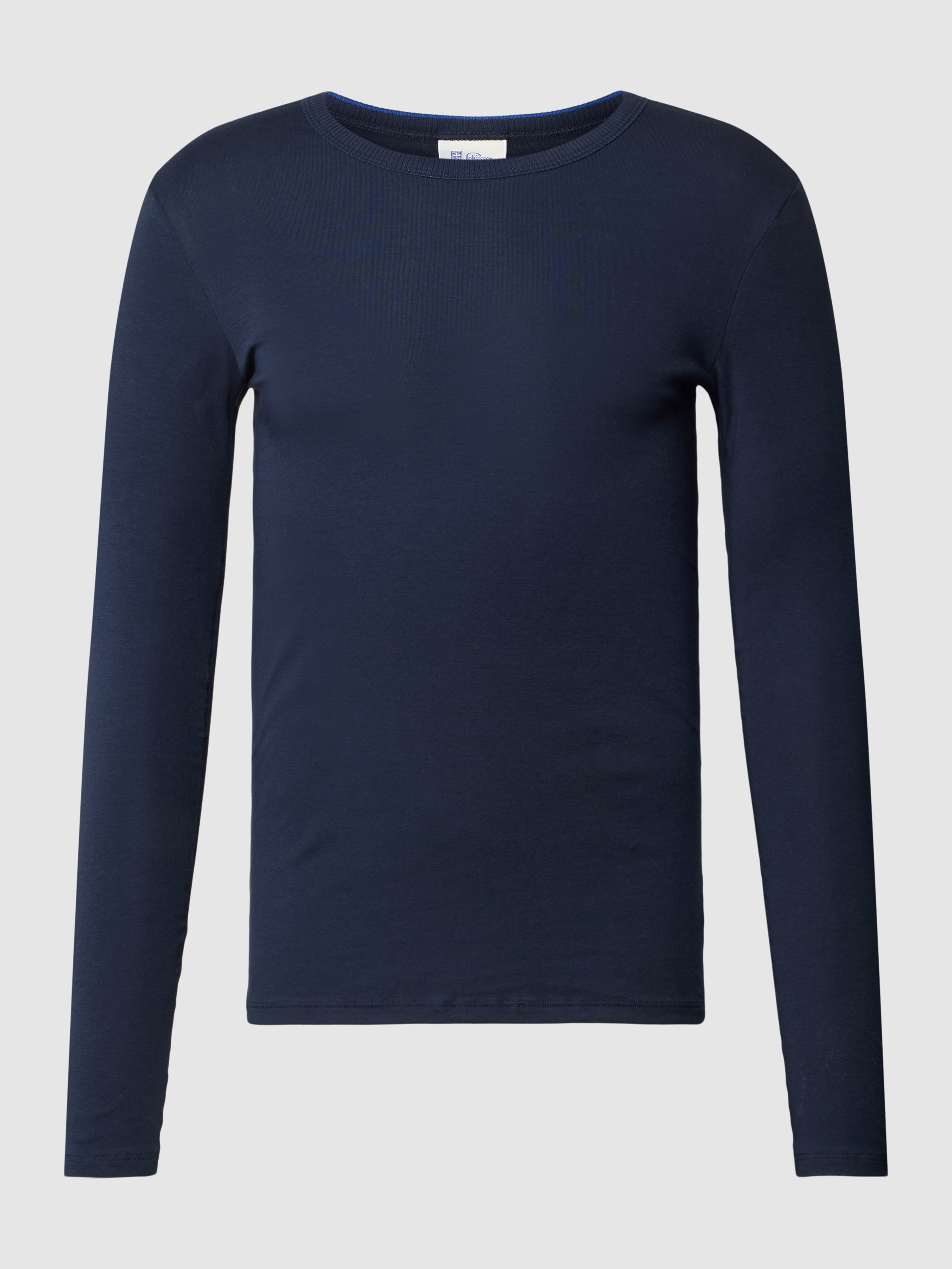 Shirt met lange mouwen en geribde ronde hals, model 'Ludwig' in donkerblauw