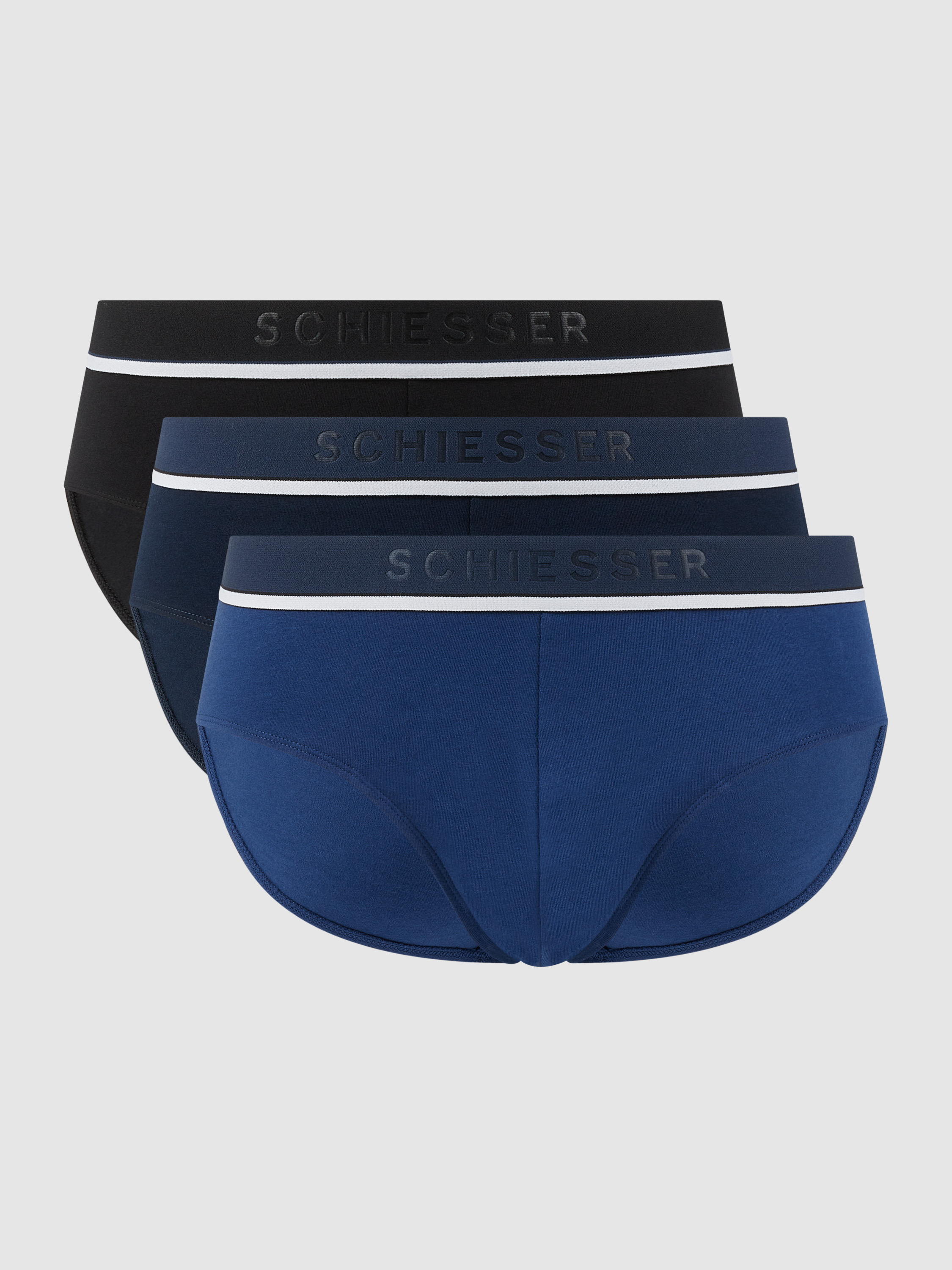 SchiesserSlip met labeldetails, model 'Rio' in een set van 3 stuks in blauw
